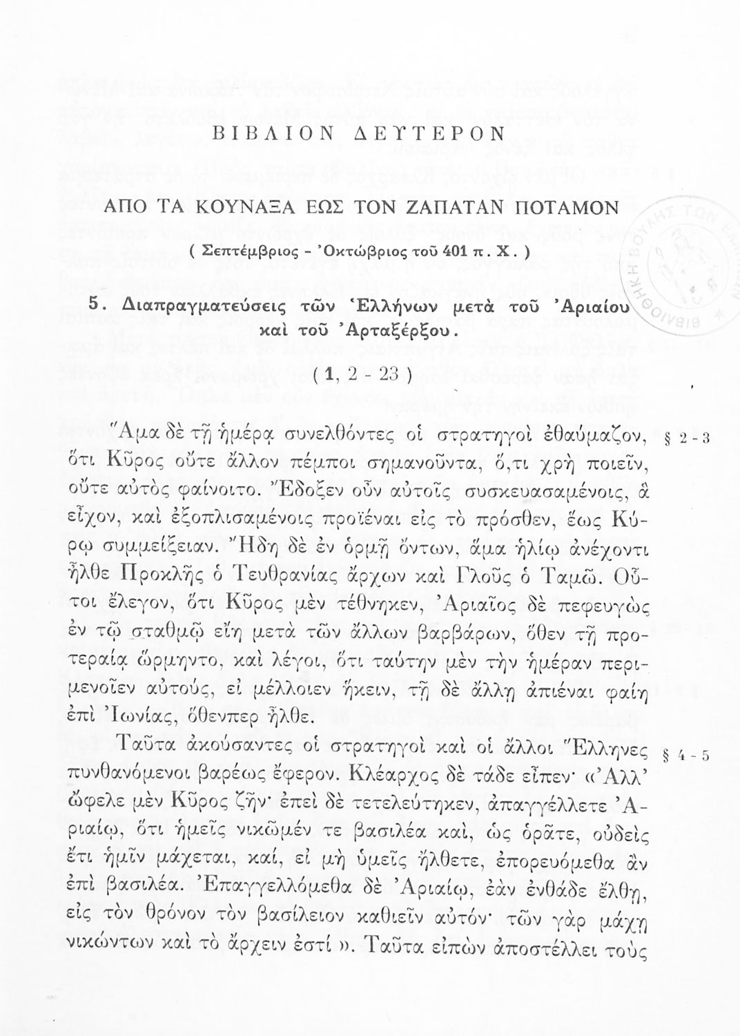 Σχολικό Εγχειρίδιο Αρχαίων Ελληνικών της Β' Γυμνασίου. Το βιβλίο αναφέρεται στο σύγγραμμα του Ξενοφώντα για την εκστρατεία του Κύρου κατά του Αρταξέρξη και κυρίως την κάθοδο ( επιστροφή) των Μυρίων. Στο ...