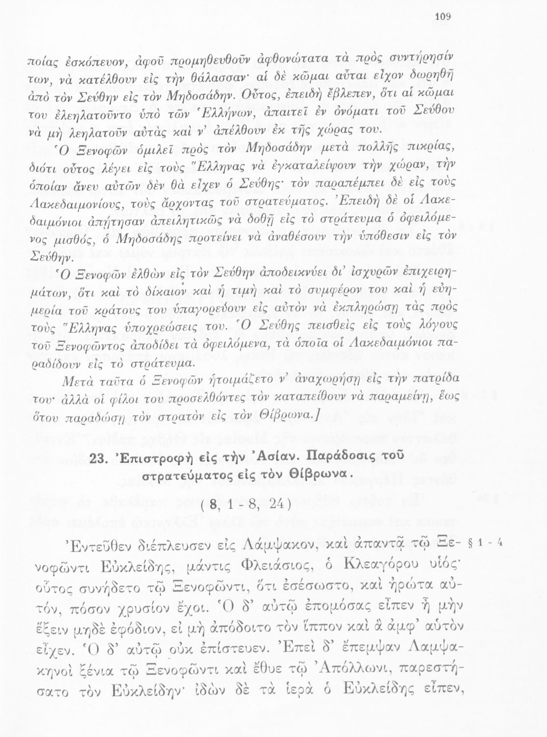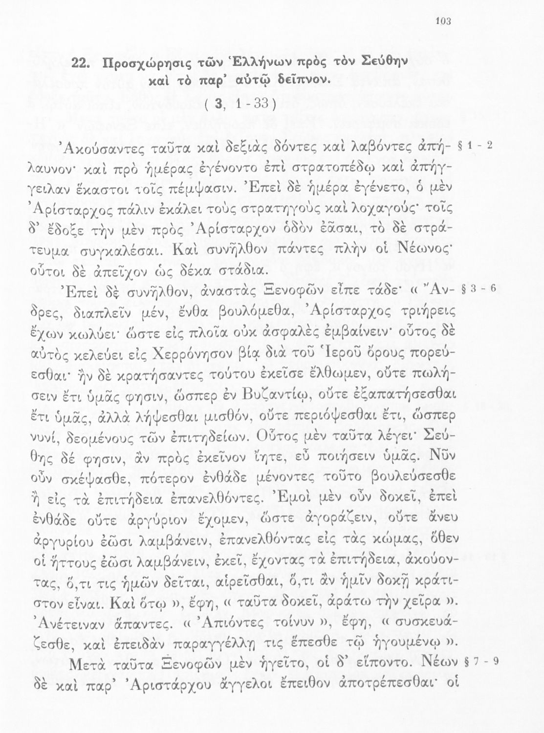 Σχολικό εγχειρίδιο για την Β΄ Γυμνασίου για το μάθημα των Αρχαίων Ελληνικών. Το εγχειρίδιο περιλαμβάνει το έργο του Ξενοφώντα "Κύρου Ανάβασις", το αρχαίο ελληνικό κείμενο από πρωτότυπο, εισαγωγικά σχόλια για τον βίο και το συγγραφικό έργο του Ξενοφώντα, ερμηνευτικά και πραγματολογικά σχόλια, γεωγραφικούς πίνακες και σχεδιαγράμματα μαχών.