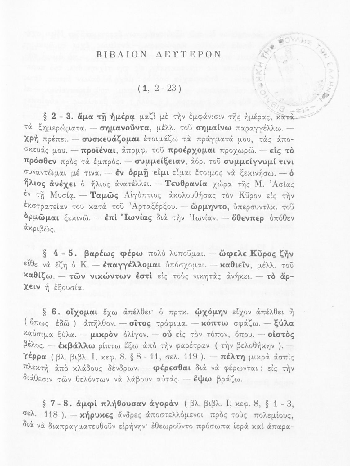 Σχολικό Εγχειρίδιο Αρχαίων Ελληνικών της Β' Γυμνασίου. Το βιβλίο αναφέρεται στο σύγγραμμα του Ξενοφώντα για την εκστρατεία του Κύρου κατά του Αρταξέρξη και κυρίως την κάθοδο ( επιστροφή) των Μυρίων. Στο ...