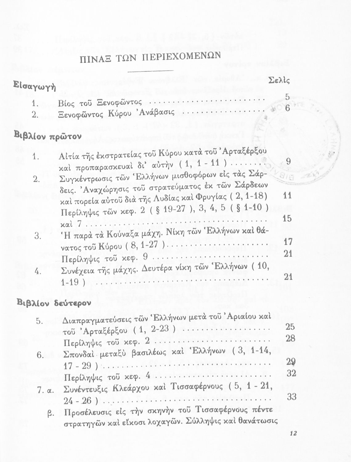 Σχολικό εγχειρίδιο Αρχαίων Ελληνικών για τη Β΄ Γυμνασίου. Πρόκειται για βιβλίο αρχαίων σε μετάφραση από το έργο του Ξενοφώντα. Στο βιβλίο απεικονίζεται το σύμβολο της επταετίας.