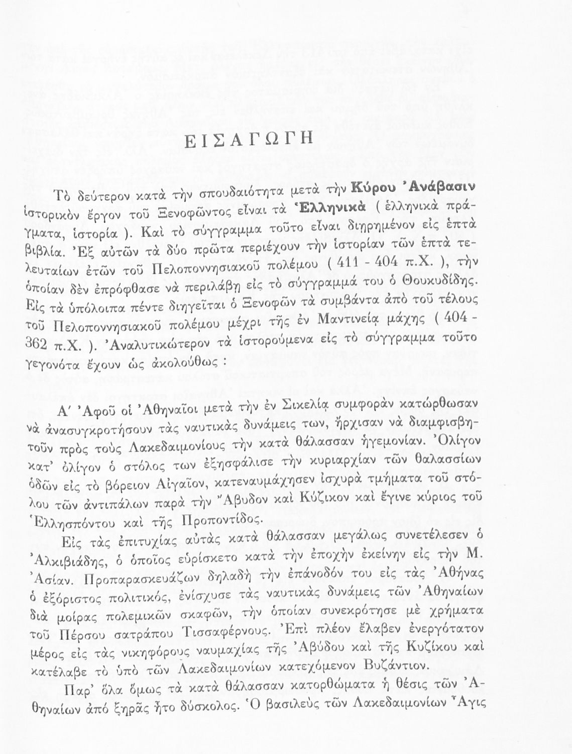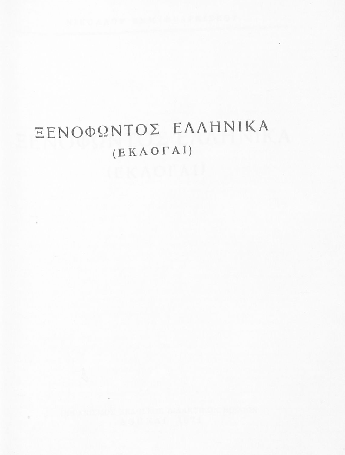 Βαθμίδα εκπαίδευσης: Δευτεροβάθμια Τάξη: Β' Γυμνασίου Μάθημα: Αρχαία Ελληνικά Γλώσσα: Καθαρεύουσα Παρουσίαση περιεχομένου: Σχολικό εγχειρίδιο για την Β΄ Γυμνασίου για το μάθημα των Αρχαίων Ελληνικών. Το εγχειρίδιο περιλαμβάνει το έργο του Ξενοφώντα "Κύρου Ανάβασις", το αρχαίο ελληνικό κείμενο από πρωτότυπο, εισαγωγικά σχόλια για τον βίο και το συγγραφικό έργο του Ξενοφώντα, ερμηνευτικά και πραγματολογικά σχόλια, γεωγραφικούς πίνακες και σχεδιαγράμματα μαχών. |