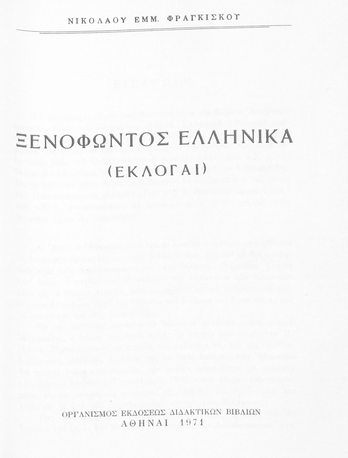Εκδότης: Οργανισμός Εκδόσεως Διδακτικών Βιβλίων Έτος έκδοσης: 1971 Τόπος έκδοσης: Αθήνα Έκδοση: 19η Υπουργική απόφαση / Σύμβαση: 2094/ 8-4-1971 Έτος έγκρισης: 1971 |