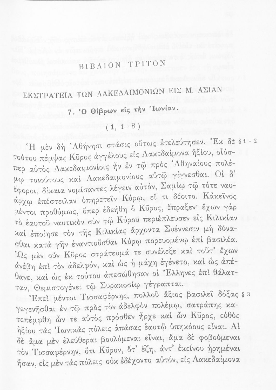 Σχολικό εγχειρίδιο Αρχαίων Ελληνικών για τη Β΄ Γυμνασίου. Πρόκειται για βιβλίο αρχαίων σε μετάφραση από το έργο του Ξενοφώντα. Στο βιβλίο απεικονίζεται το σύμβολο της επταετίας.