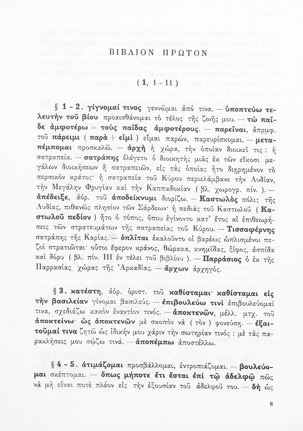 Σχολικό Εγχειρίδιο Αρχαίων Ελληνικών της Β' Γυμνασίου. Το βιβλίο αναφέρεται στην ιστορική συγγραφή του Ξενοφώντα για την εκστρατεία του Κύρου κατά του Αρταξέρξη και κυρίως την κάθοδο ( επιστροφή) των Μυρίων. Στο δεύτερο μέρος το βιβλίο περιέχει τα “Ελληνικά” του Ξενοφώντα που αφορούν την ιστορία των τελευταίων επτά ετών του Πελοποννησιακού πολέμου και τα συμβάντα από το τέλος του Πελοποννησιακού πολέμου μέχρι τη μάχη της Μαντινείας.