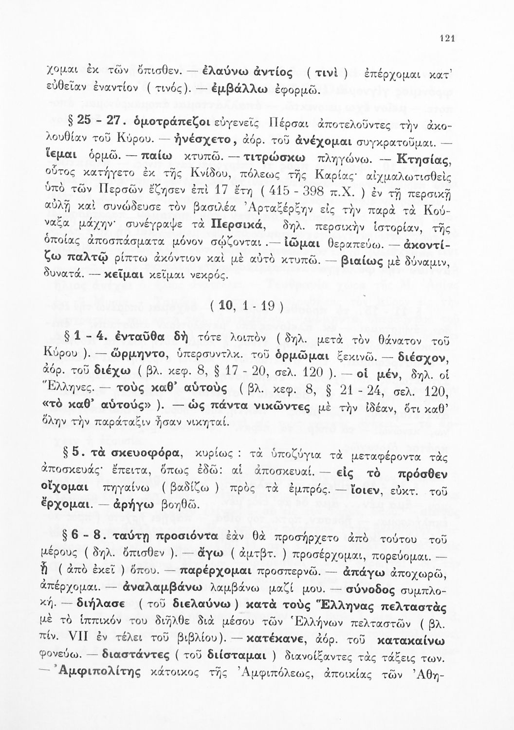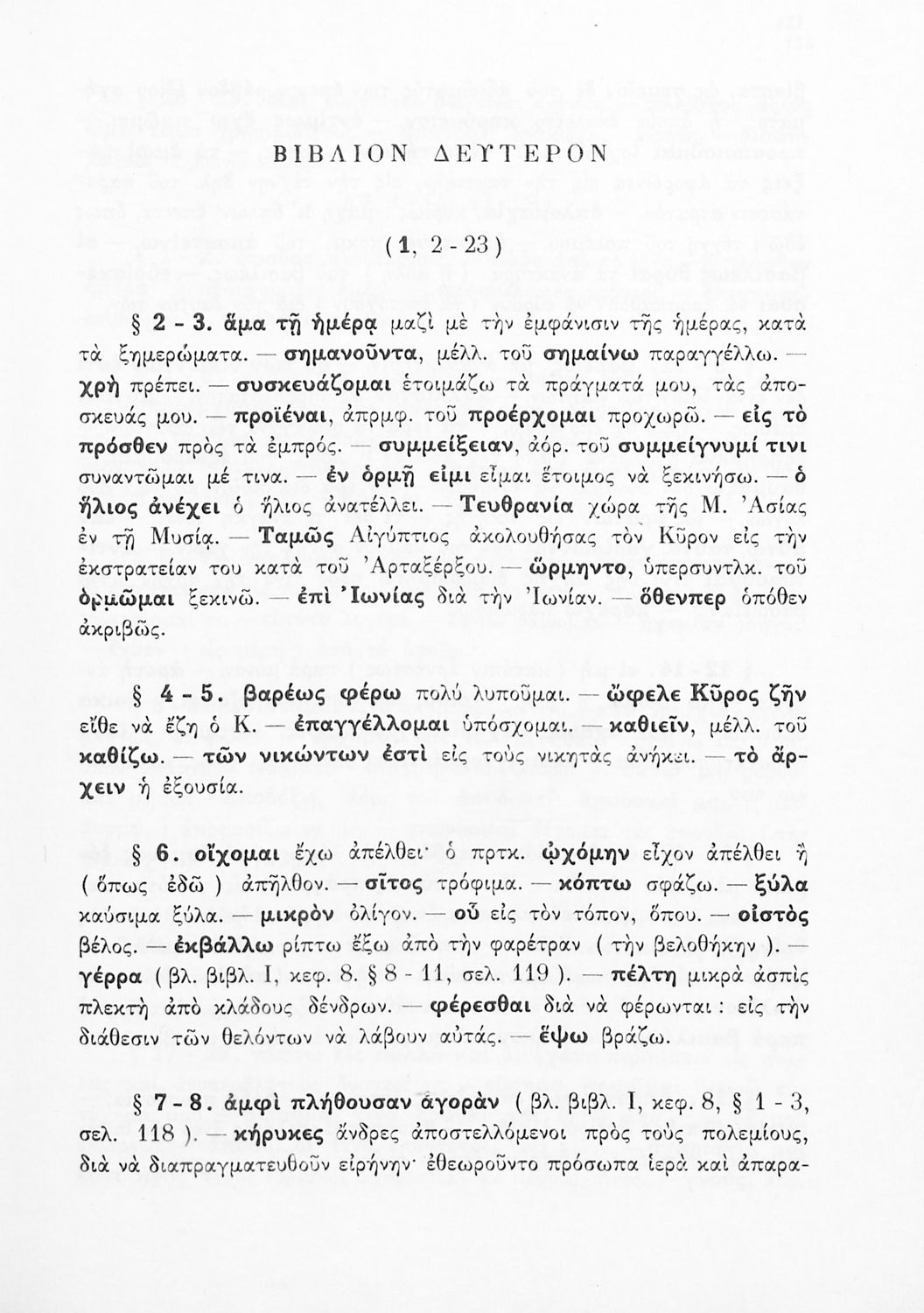 Σχολικό Εγχειρίδιο Αρχαίων Ελληνικών της Β' Γυμνασίου. Το βιβλίο αναφέρεται στην ιστορική συγγραφή του Ξενοφώντα για την εκστρατεία του Κύρου κατά του Αρταξέρξη και κυρίως την κάθοδο ( επιστροφή) των Μυρίων. Στο δεύτερο μέρος το βιβλίο περιέχει τα “Ελληνικά” του Ξενοφώντα που αφορούν την ιστορία των τελευταίων επτά ετών του Πελοποννησιακού πολέμου και τα συμβάντα από το τέλος του Πελοποννησιακού πολέμου μέχρι τη μάχη της Μαντινείας.