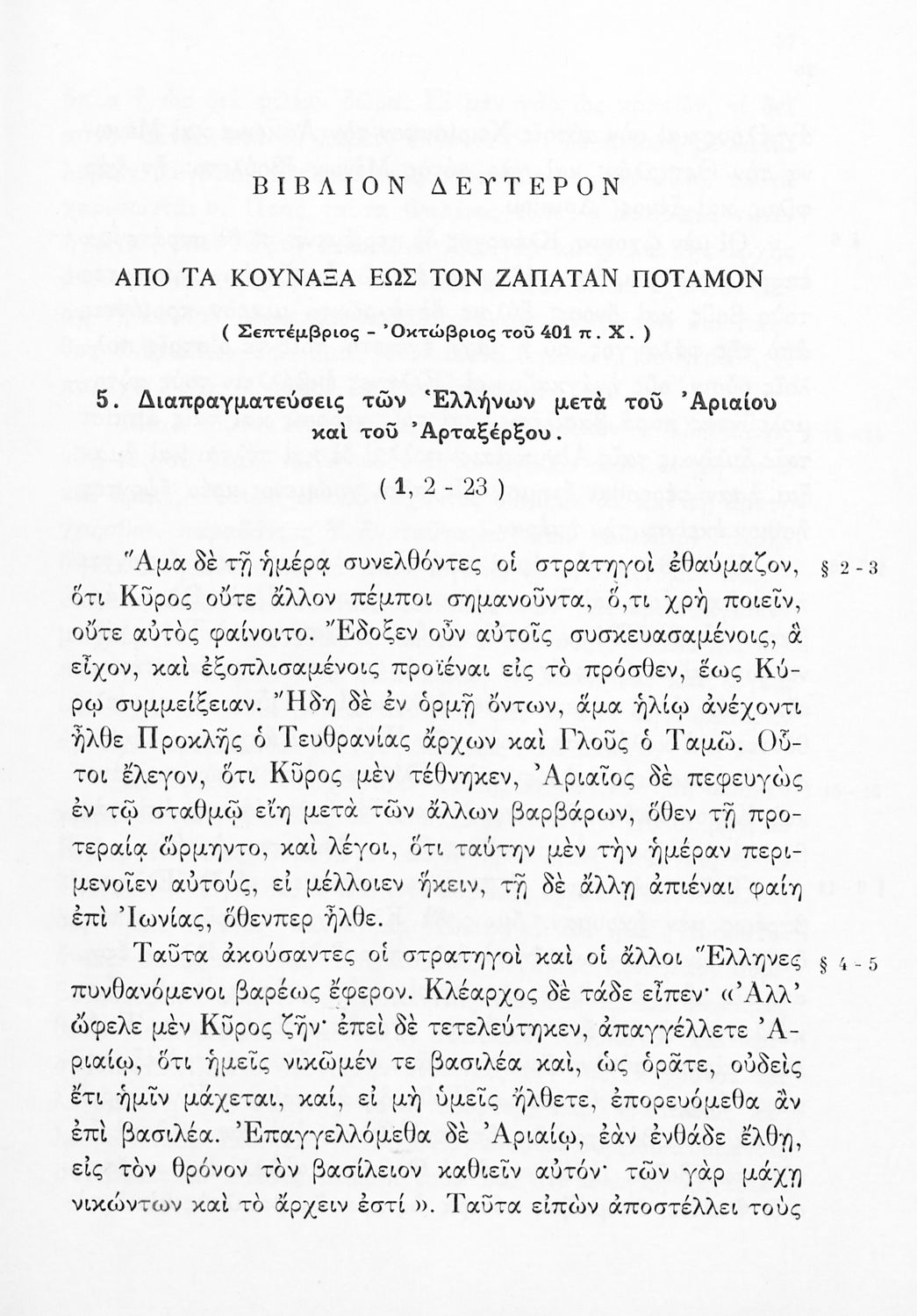 Σχολικό Εγχειρίδιο Αρχαίων Ελληνικών της Β' Γυμνασίου. Το βιβλίο αναφέρεται στην ιστορική συγγραφή του Ξενοφώντα για την εκστρατεία του Κύρου κατά του Αρταξέρξη και κυρίως την κάθοδο ( επιστροφή) των Μυρίων. Στο δεύτερο μέρος το βιβλίο περιέχει τα “Ελληνικά” του Ξενοφώντα που αφορούν την ιστορία των τελευταίων επτά ετών του Πελοποννησιακού πολέμου και τα συμβάντα από το τέλος του Πελοποννησιακού πολέμου μέχρι τη μάχη της Μαντινείας.