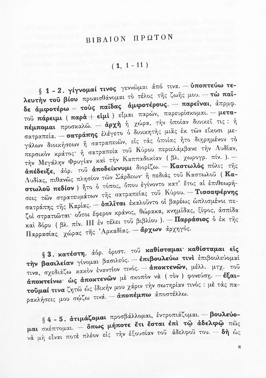 Σχολικό εγχειρίδιο Αρχαίων Ελληνικών Α΄ Γυμνασίου που περιλαμβάνει το έργο του Ξενοφώντα Κύρου Ανάβασις, μετάφραση, ερμηνευτικές και πραγματολογικές παρατηρήσεις.