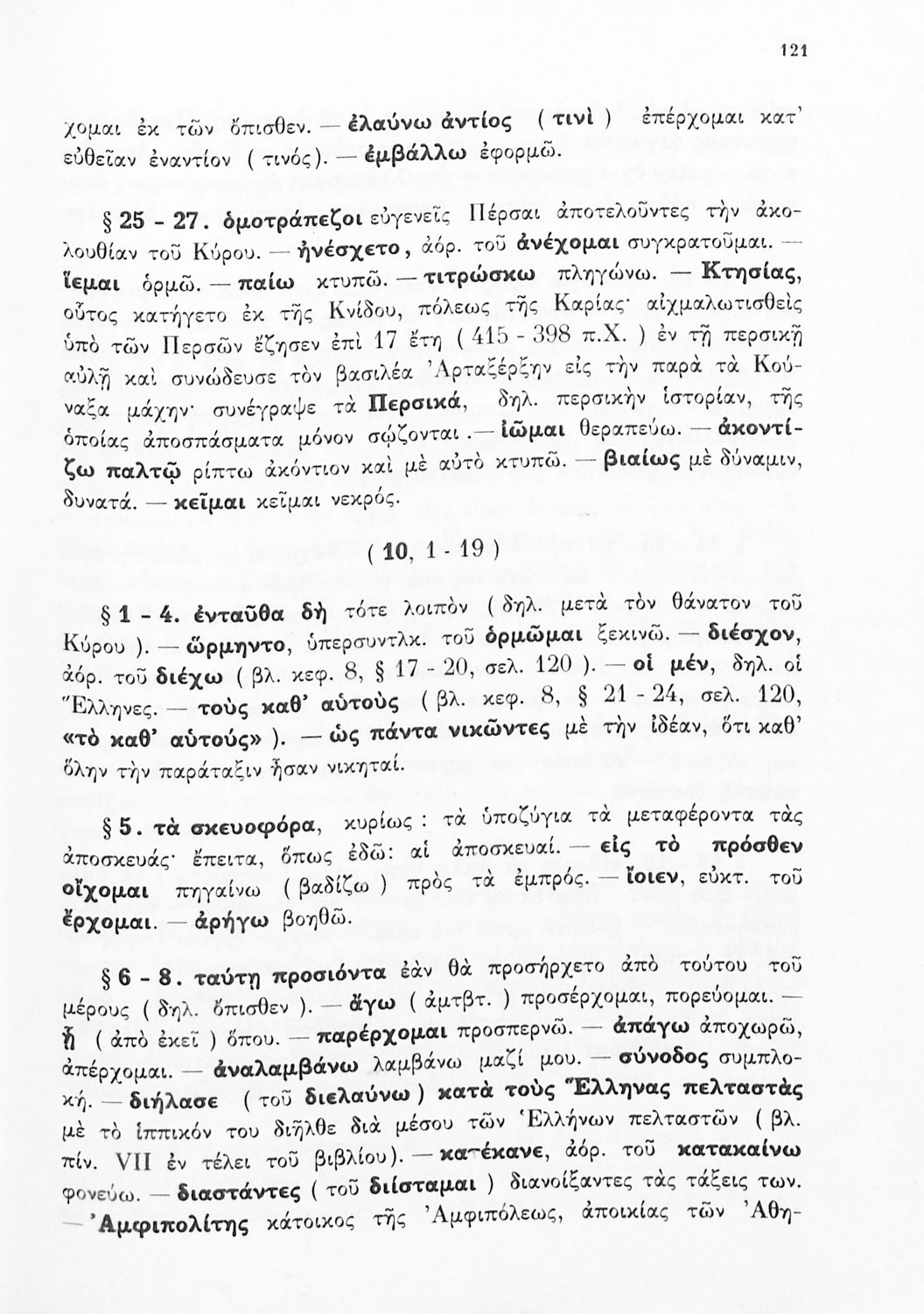Σχολικό εγχειρίδιο Αρχαίων Ελληνικών της Β΄ Γυμνασίου. Το βιβλίο αναφέρεται στην ιστορική συγγραφή του Ξενοφώντα για την εκστρατεία του Κύρου κατά του Αρταξέρξη και κυρίως την κάθοδο ( επιστροφή) των Μυρίων. Στο δεύτερο μέρος το βιβλίο περιέχει τα “Ελληνικά” του Ξενοφώντα που αφορούν την ιστορία των τελευταίων επτά ετών του Πελοποννησιακού πολέμου και τα συμβάντα από το τέλος του Πελοποννησιακού πολέμου μέχρι τη μάχη της Μαντινείας.