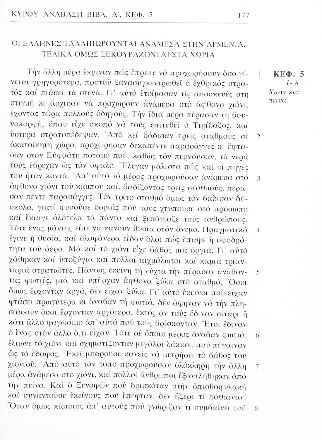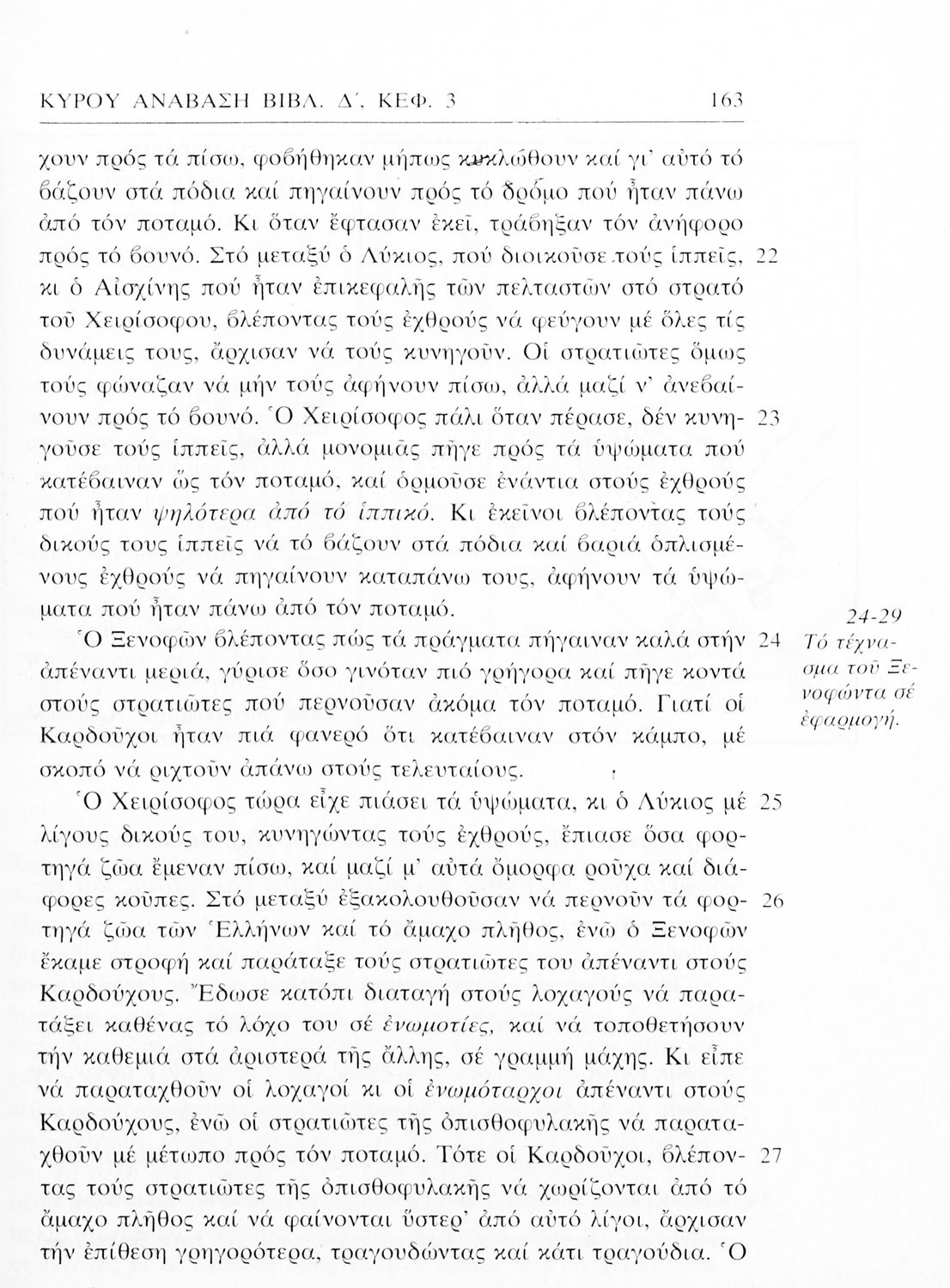 Σχολικό εγχειρίδιο Αρχαίων Ελληνικών α΄ Γυμνασίου που περιλαμβάνει μετάφραση του έργου του Ξενοφώντα Κύρου Ανάβασις, εισαγωγικά σχόλια για τη ζωή και το έργο του, και ερμηνευτικές παρατηρήσεις.