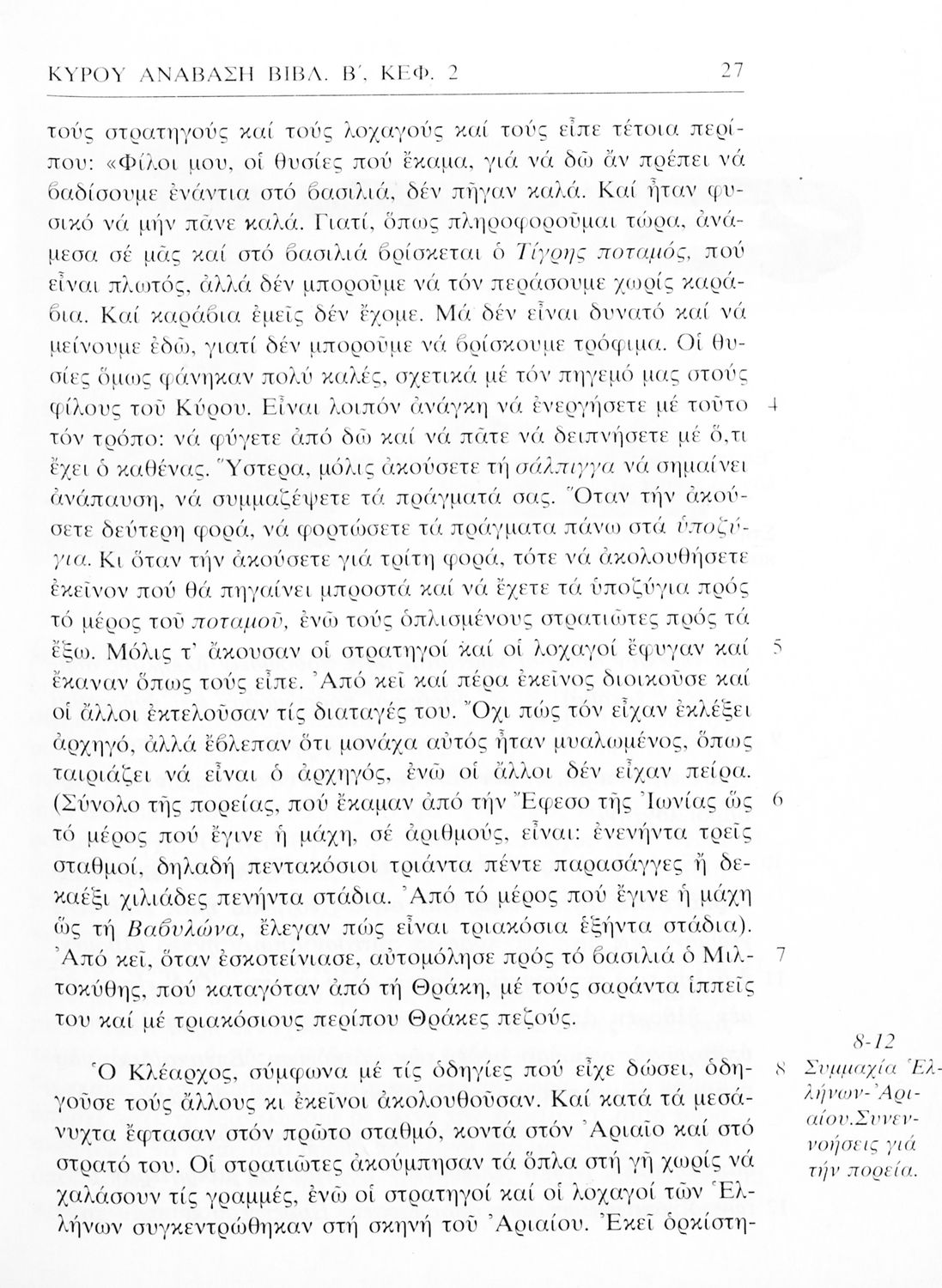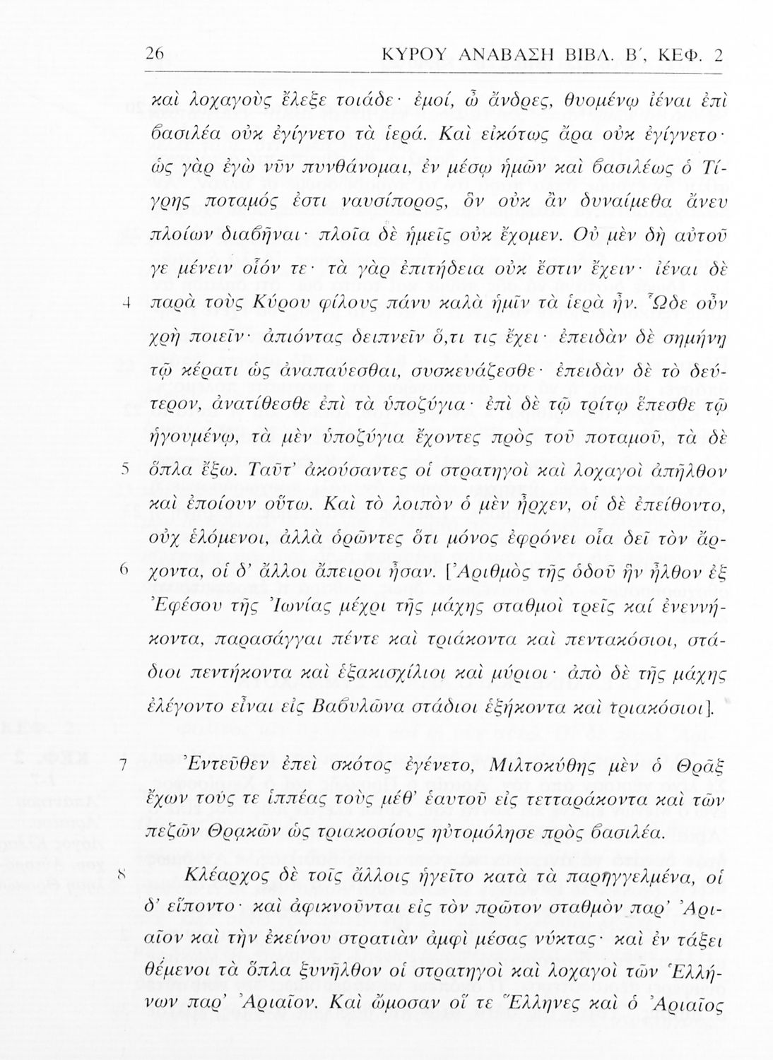 Σχολικό εγχειρίδιο Αρχαίων Ελληνικών της Α' Γυμνασίου. Το βιβλίο παρουσιάζει από μετάφραση το έργο του Ξενοφώντα “Κύρου Ανάβασις” στο οποίο περιγράφεται η εκστρατεία του Κύρου για την κατάληψη της εξουσίας από τον αδερφό του Αρταξέρξη. Στο τελευταίο μέρος το βιβλίο περιλαμβάνει ερμηνευτικές σημειώσεις.