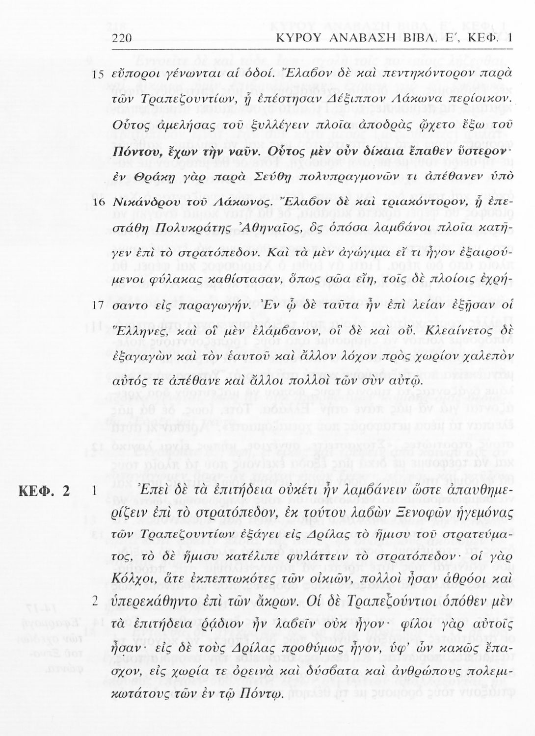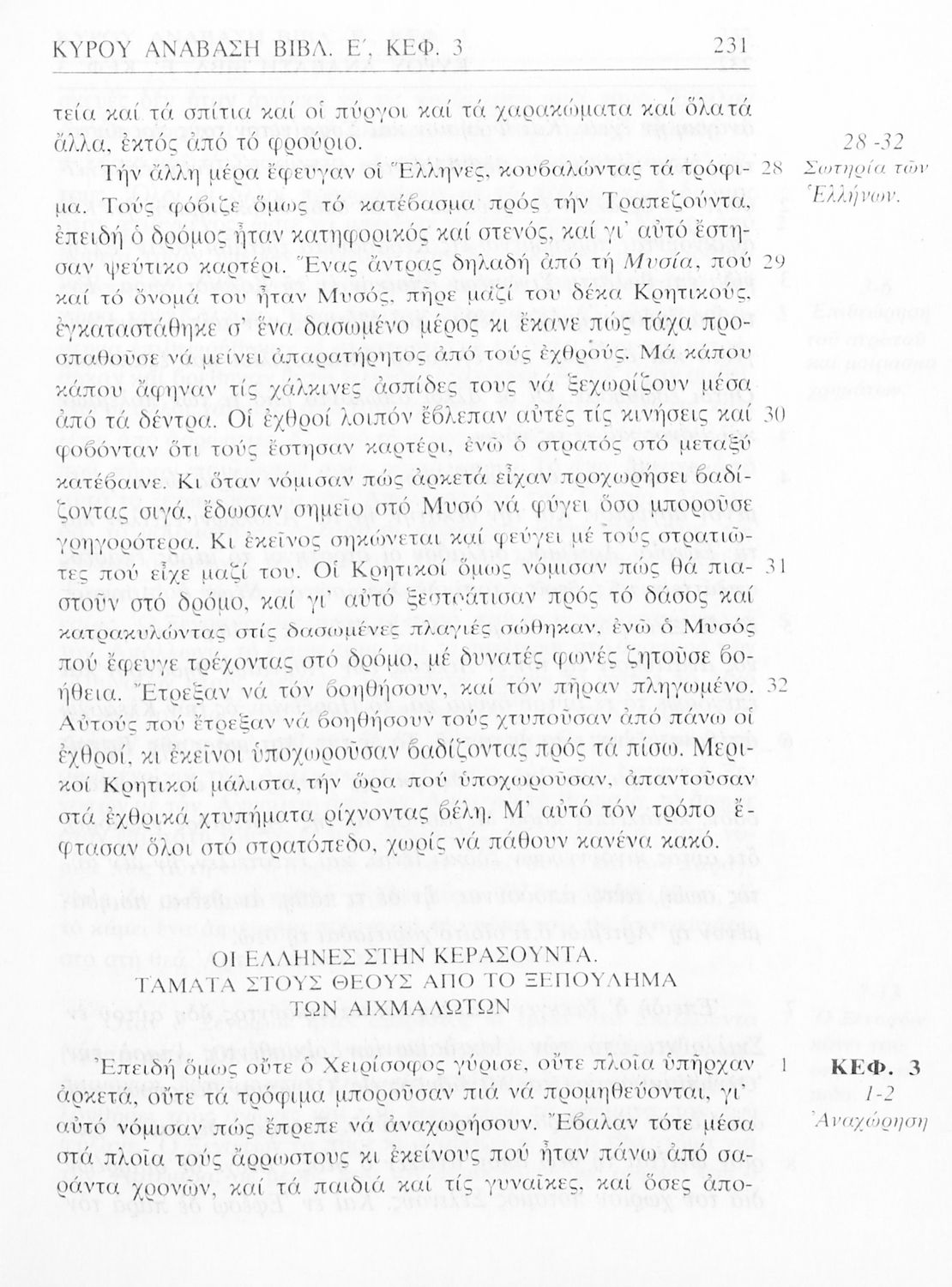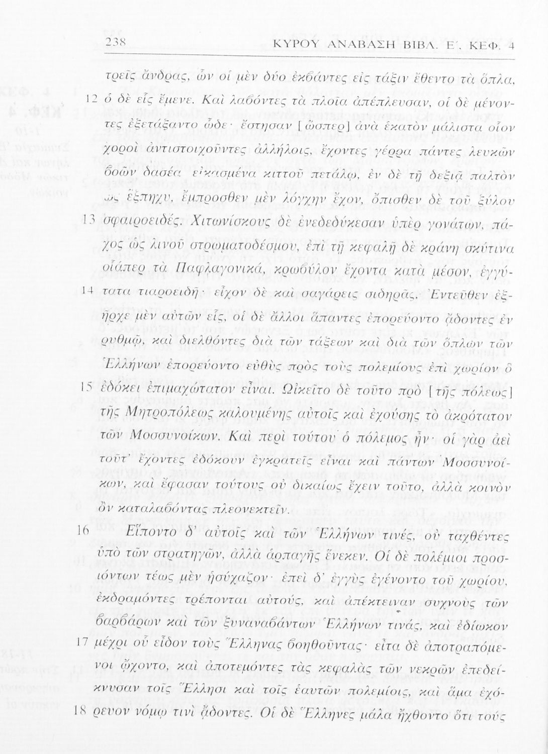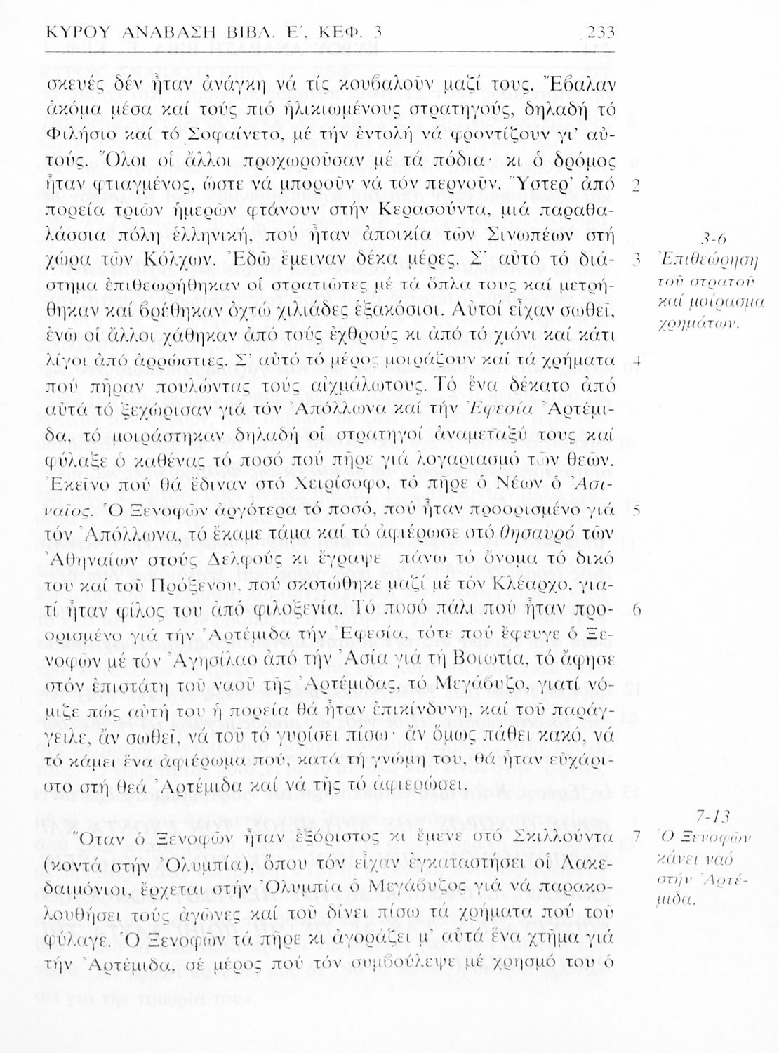 Σχολικό εγχειρίδιο Αρχαίων Ελληνικών α΄ Γυμνασίου που περιλαμβάνει μετάφραση του έργου του Ξενοφώντα Κύρου Ανάβασις, εισαγωγικά σχόλια για τη ζωή και το έργο του, και ερμηνευτικές παρατηρήσεις.