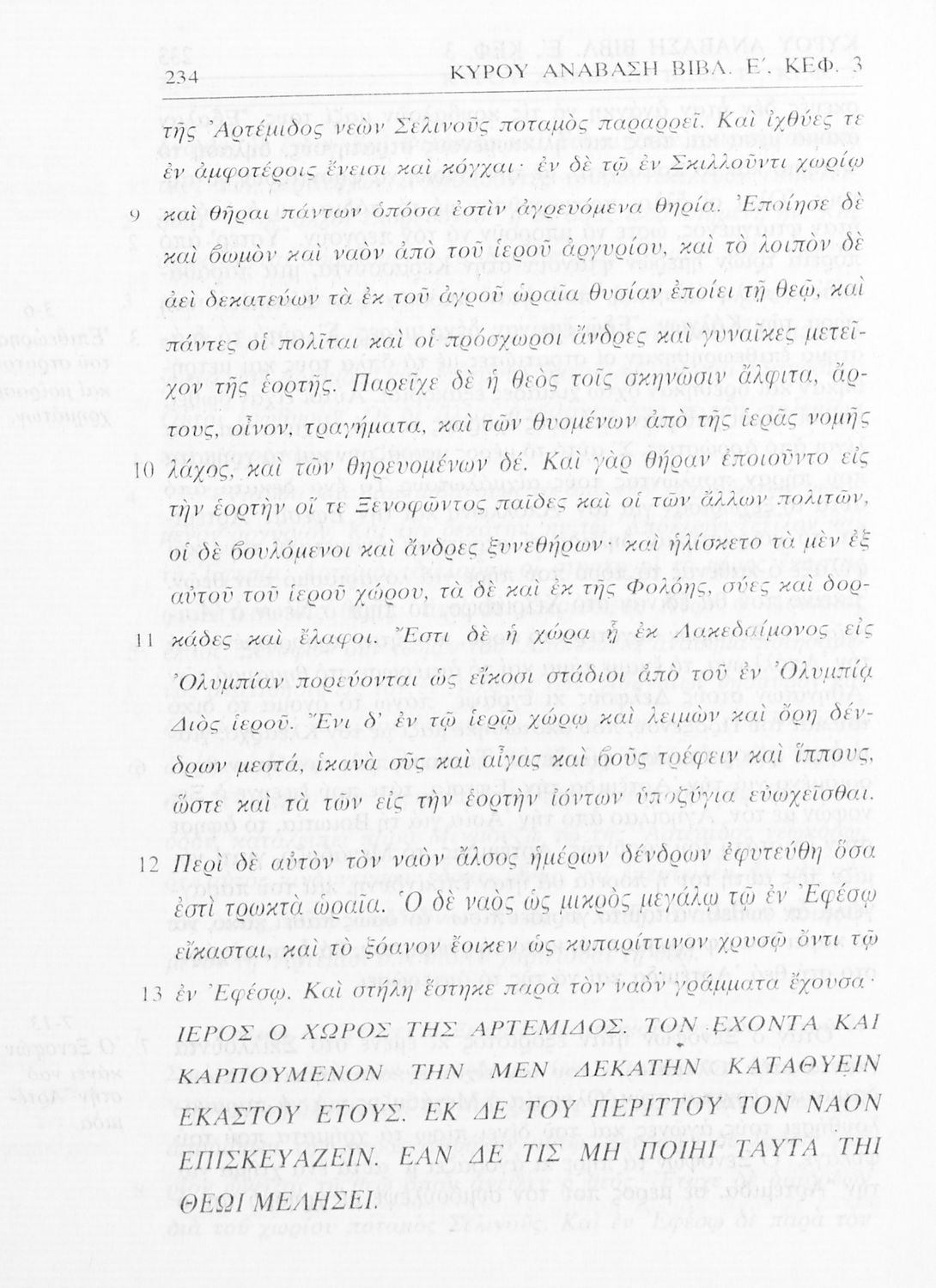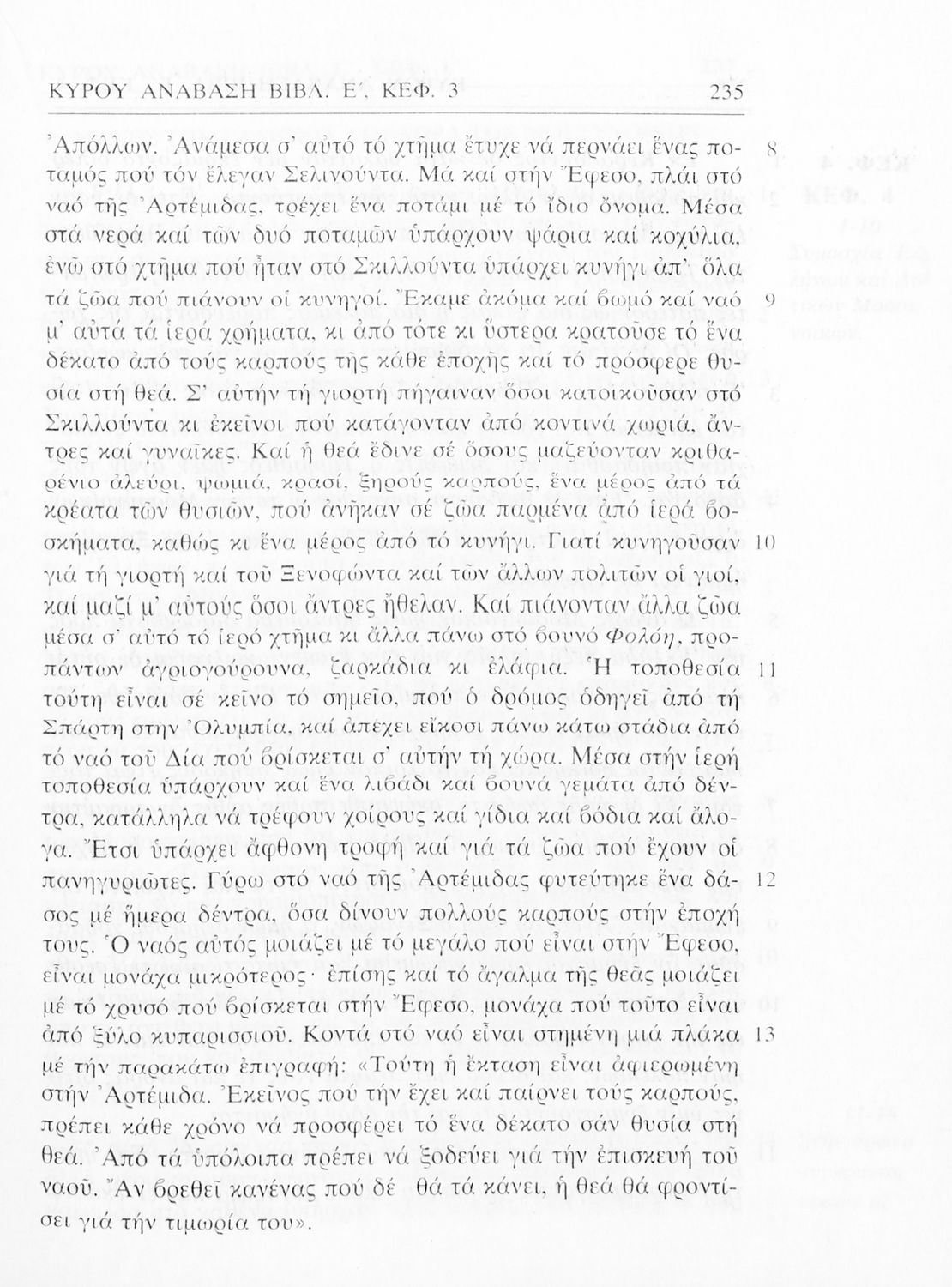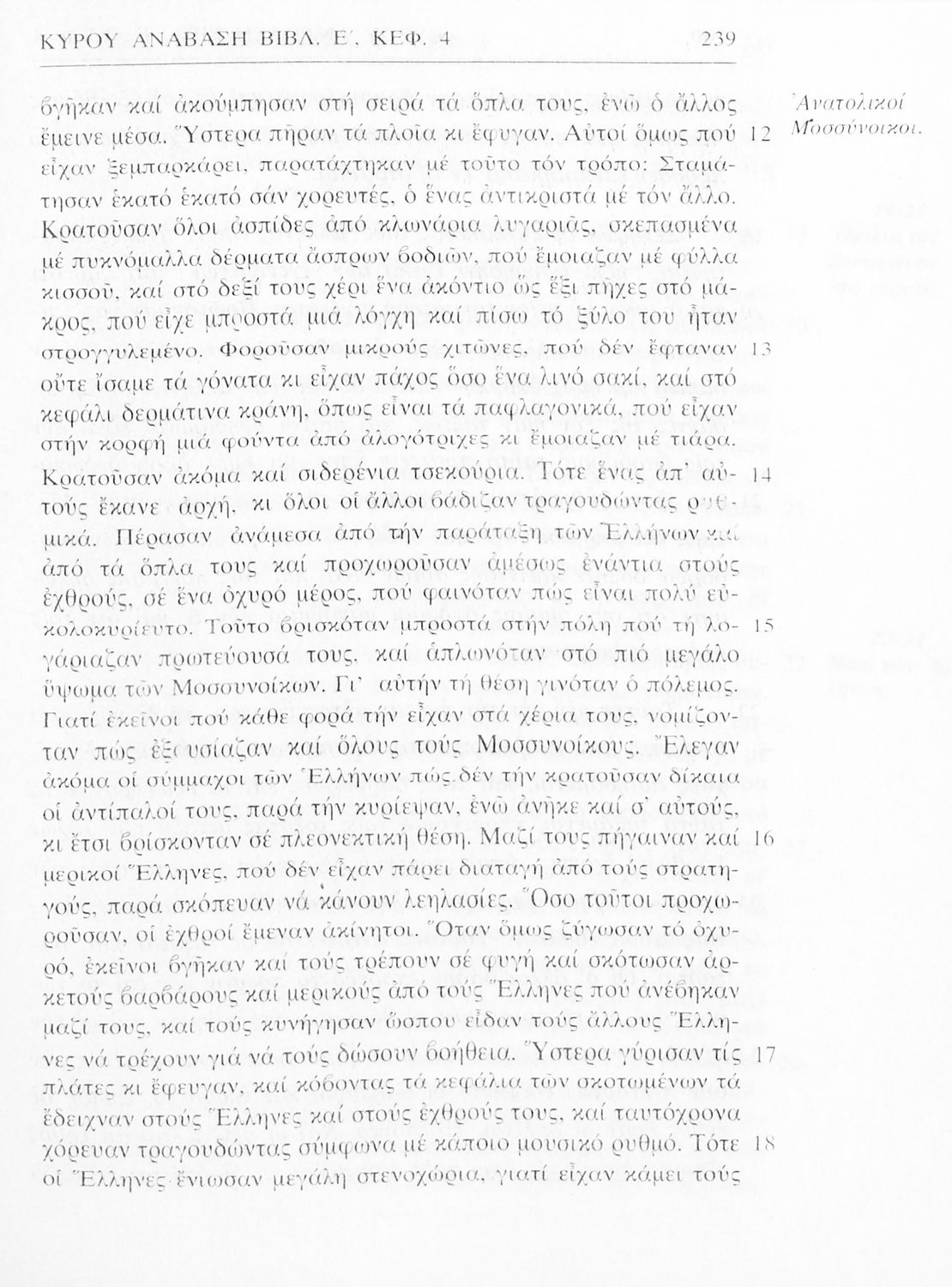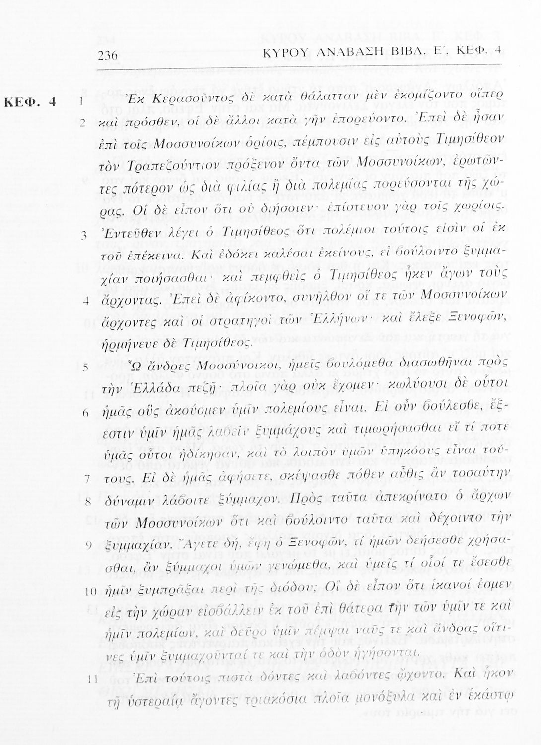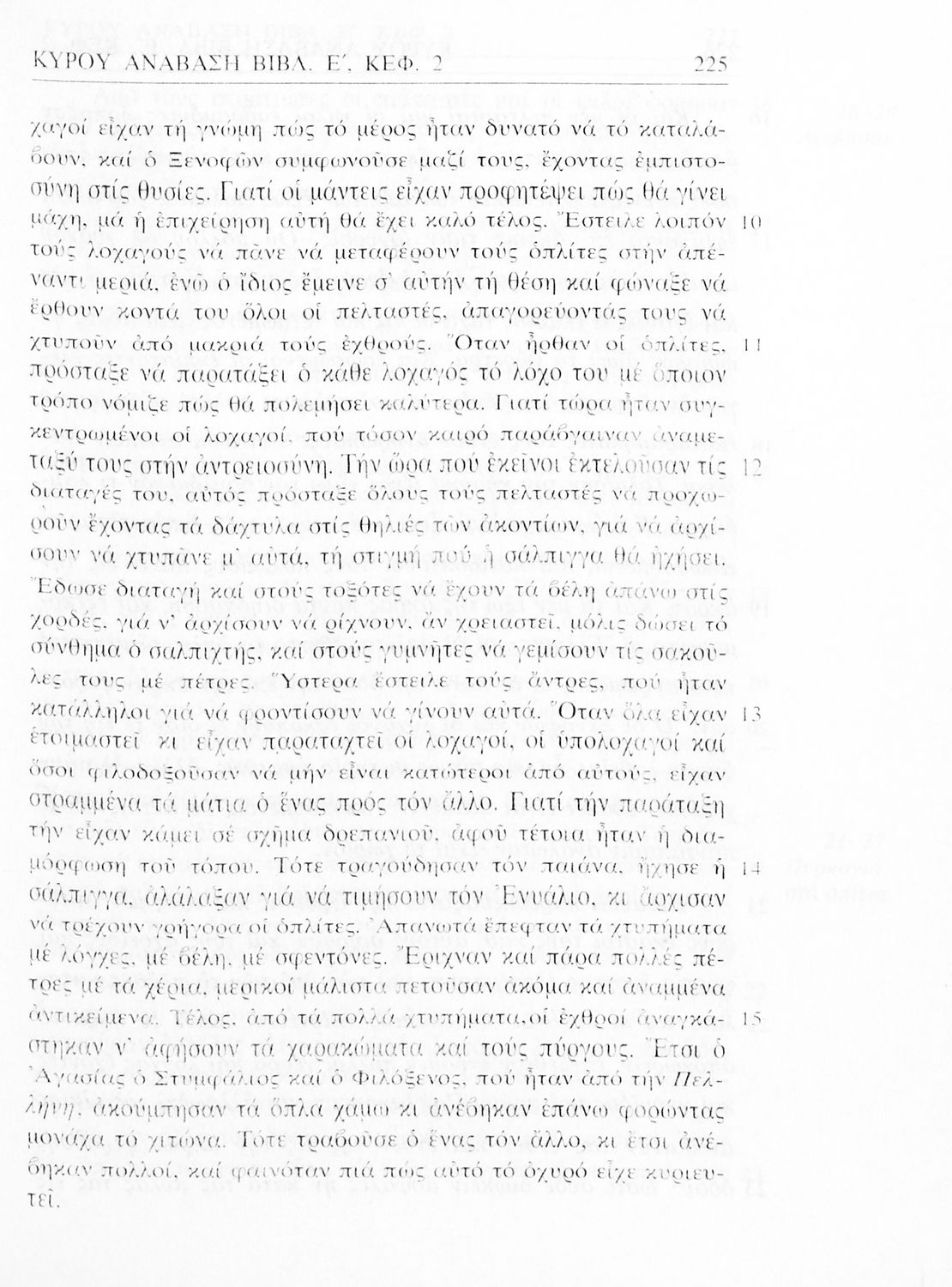 Σχολικό εγχειρίδιο Αρχαίων Ελληνικών α΄ Γυμνασίου που περιλαμβάνει μετάφραση του έργου του Ξενοφώντα Κύρου Ανάβασις, εισαγωγικά σχόλια για τη ζωή και το έργο του, και ερμηνευτικές παρατηρήσεις.