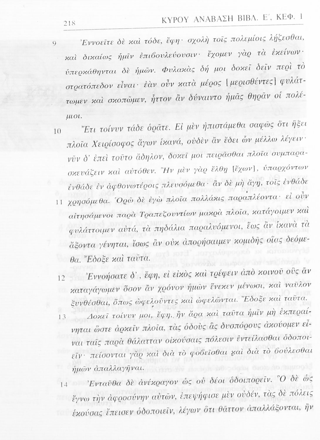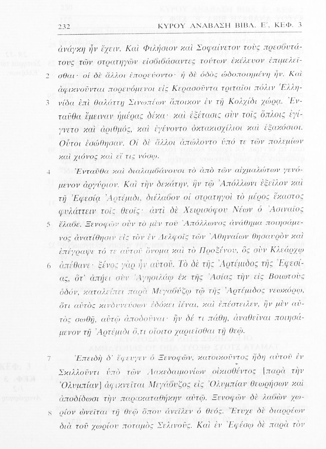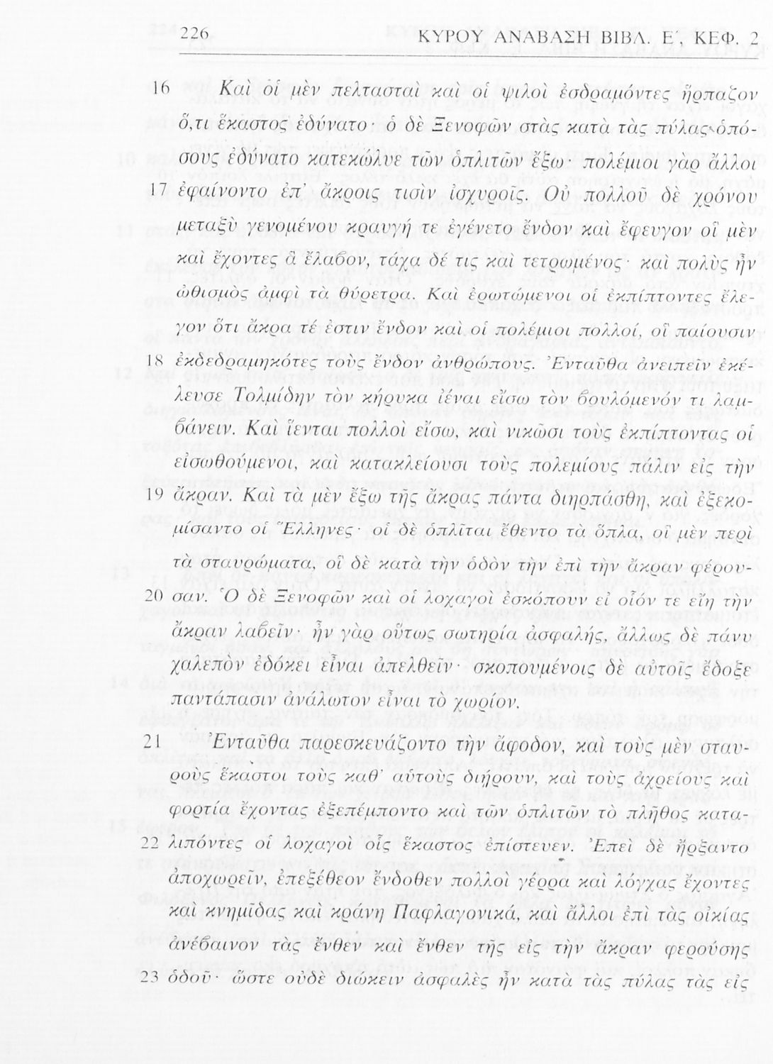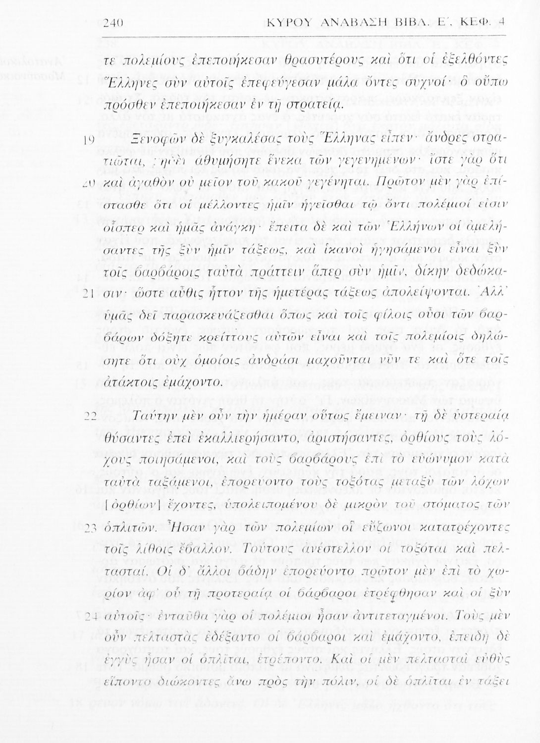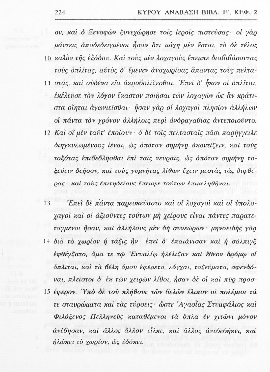 Σχολικό εγχειρίδιο Αρχαίων Ελληνικών α΄ Γυμνασίου που περιλαμβάνει μετάφραση του έργου του Ξενοφώντα Κύρου Ανάβασις, εισαγωγικά σχόλια για τη ζωή και το έργο του, και ερμηνευτικές παρατηρήσεις.