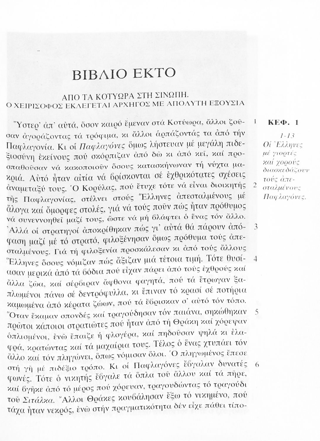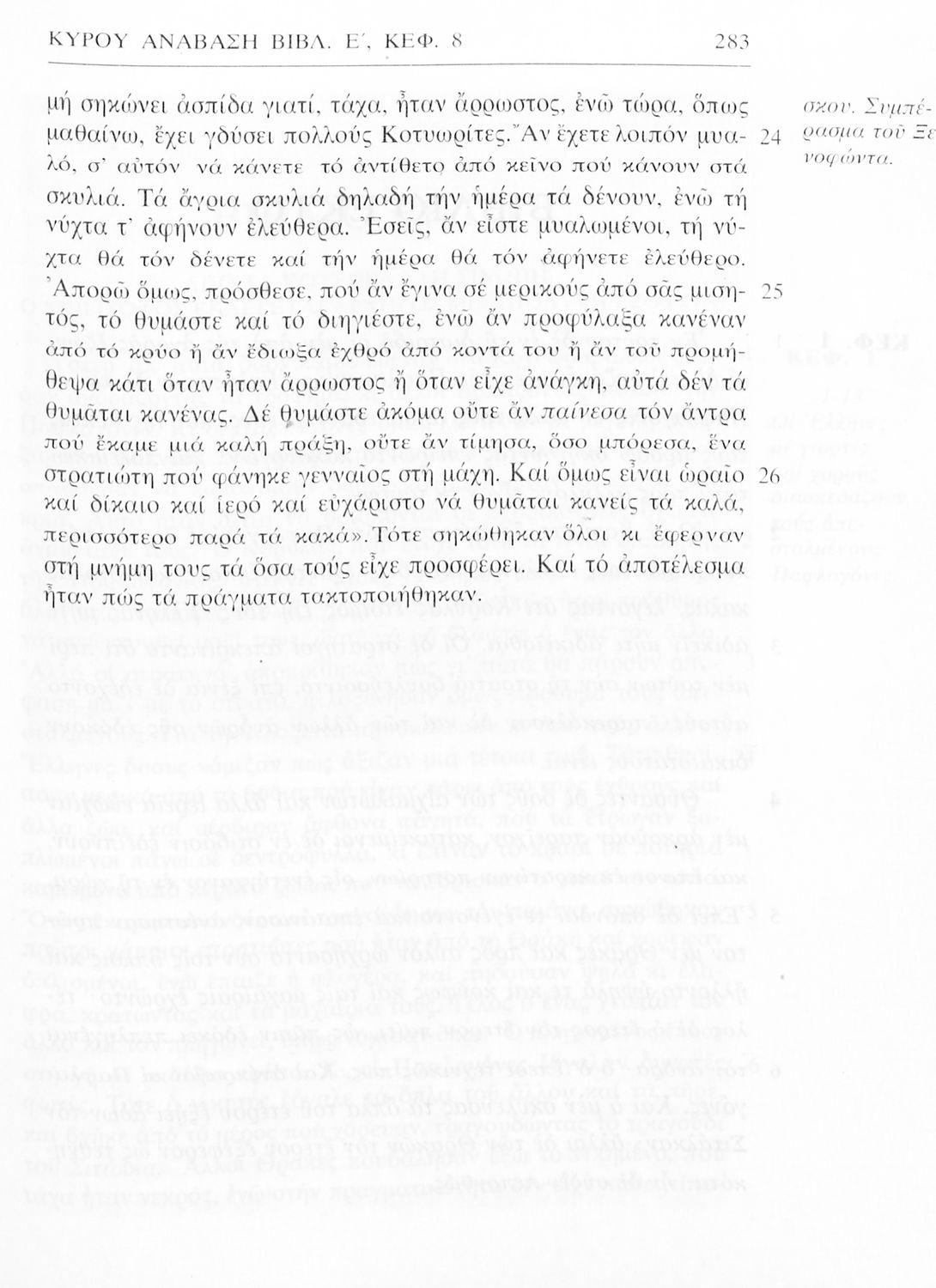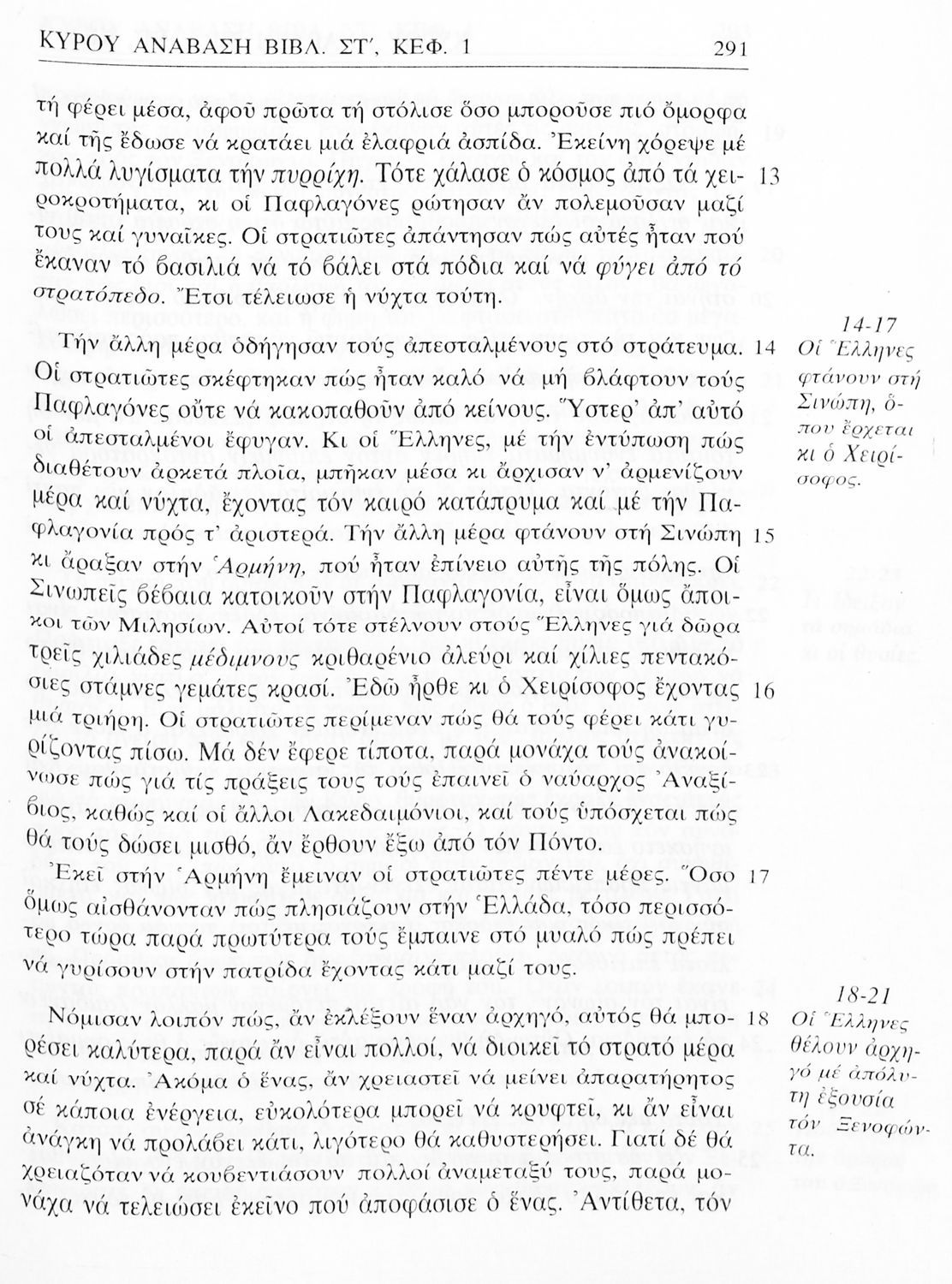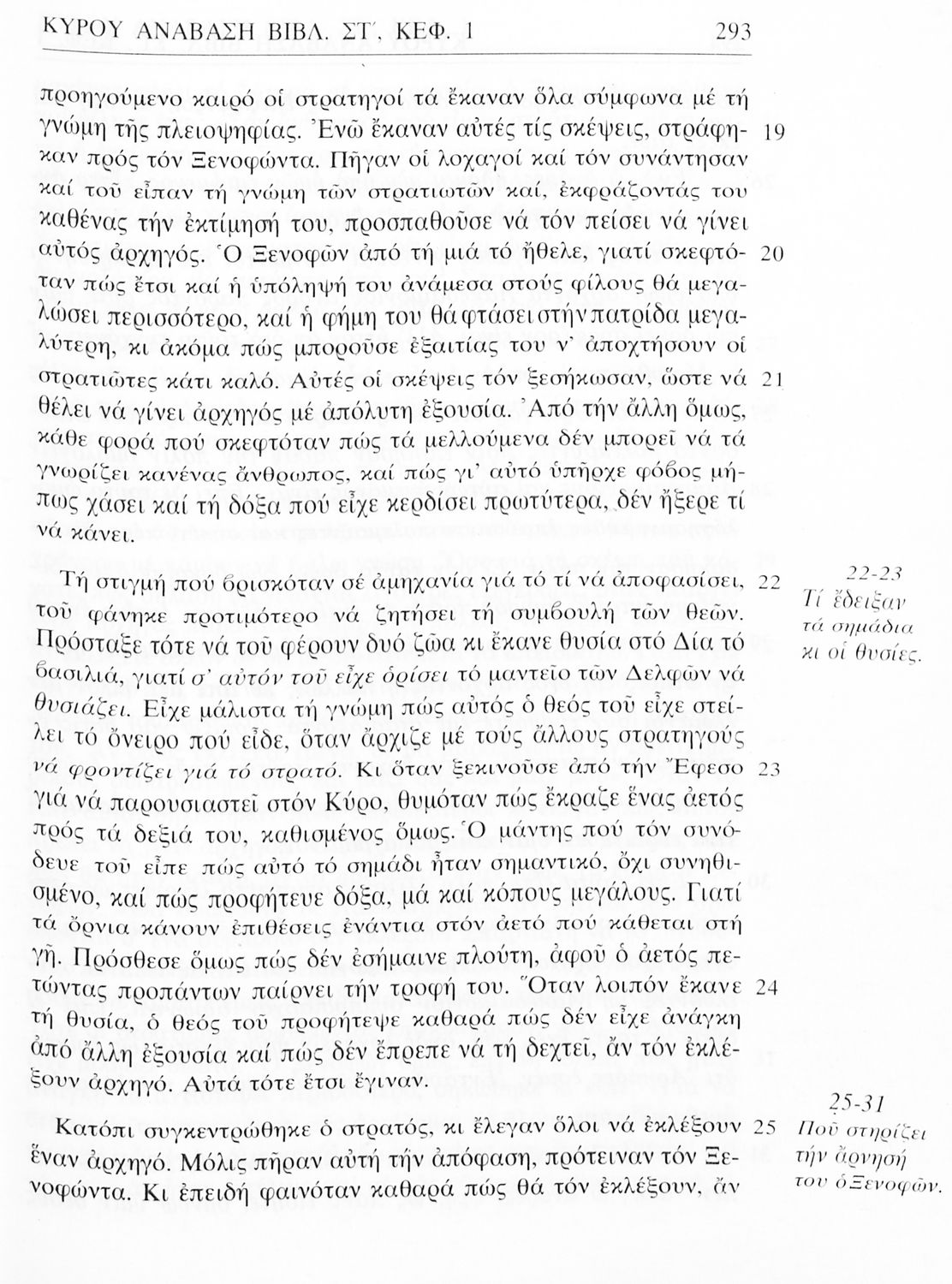 Σχολικό εγχειρίδιο Αρχαίων Ελληνικών της Α' Γυμνασίου. Το βιβλίο παρουσιάζει από μετάφραση το έργο του Ξενοφώντα “Κύρου Ανάβασις” στο οποίο περιγράφεται η εκστρατεία του Κύρου για την κατάληψη της εξουσίας από τον αδερφό του Αρταξέρξη. Στο τελευταίο μέρος το βιβλίο περιλαμβάνει ερμηνευτικές σημειώσεις.
