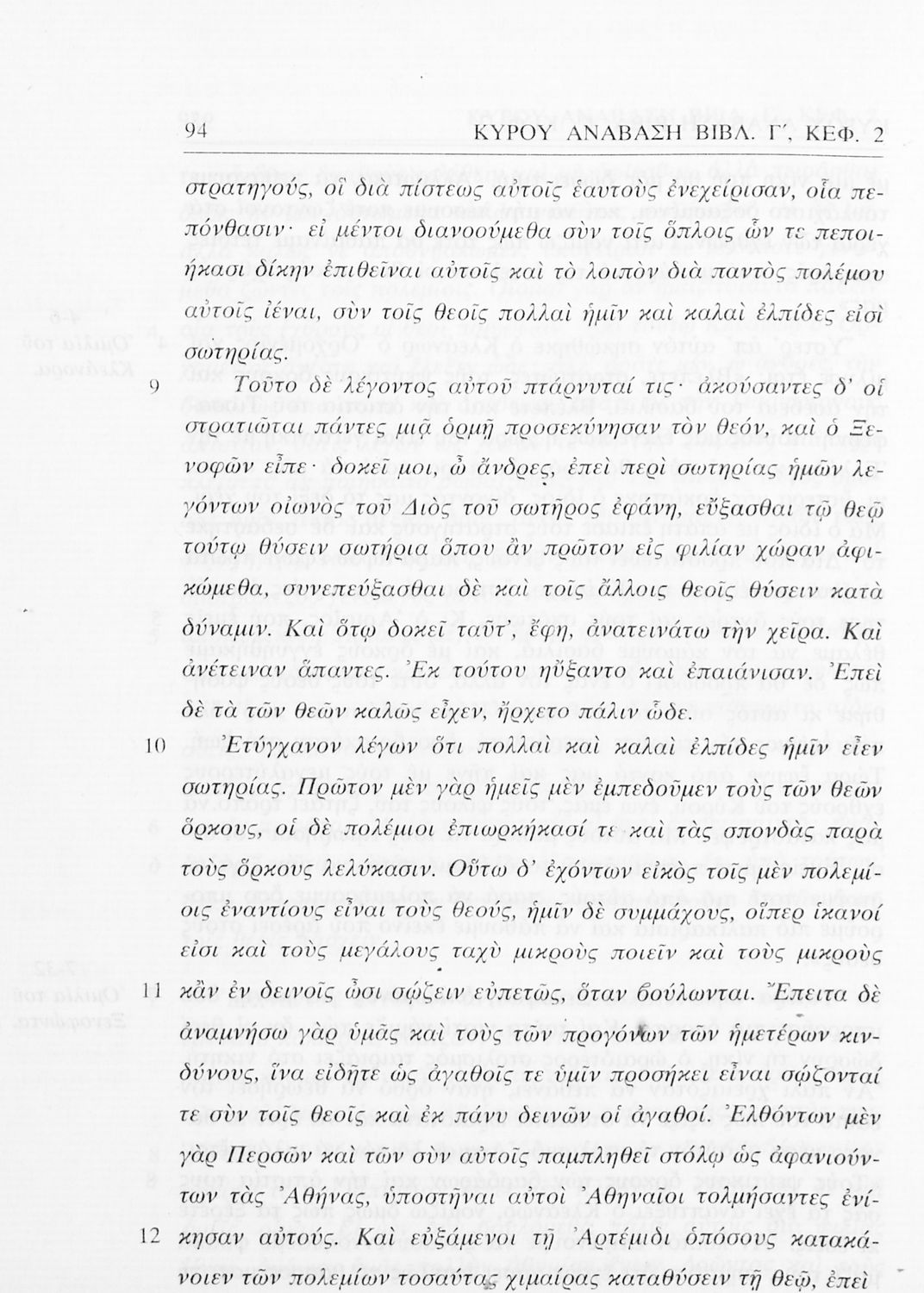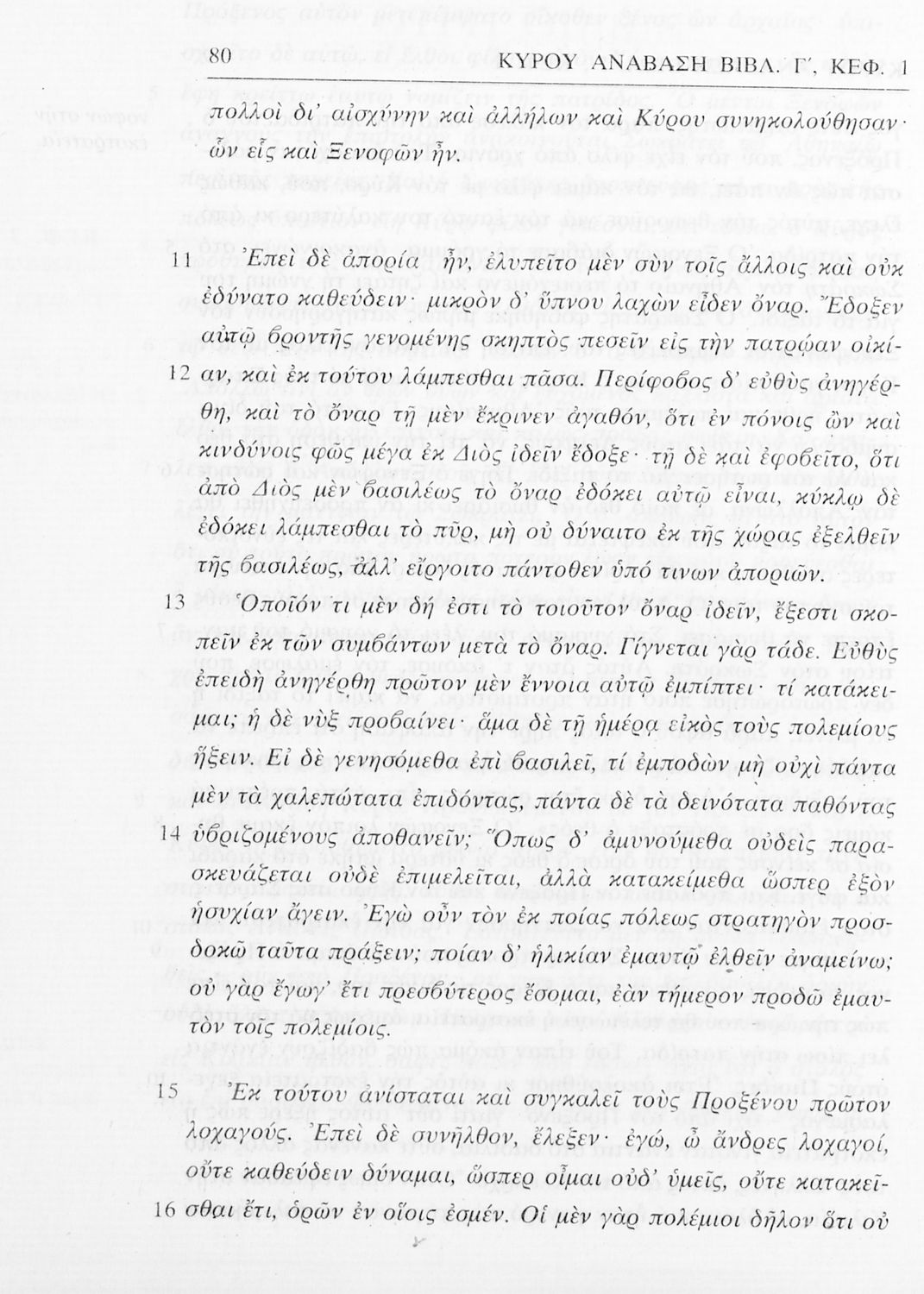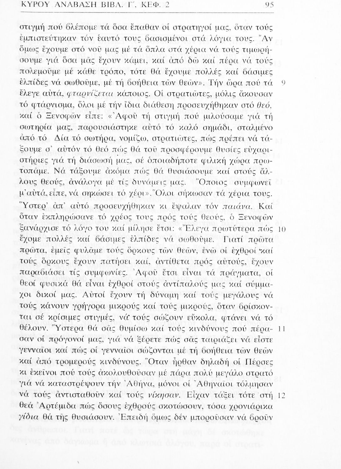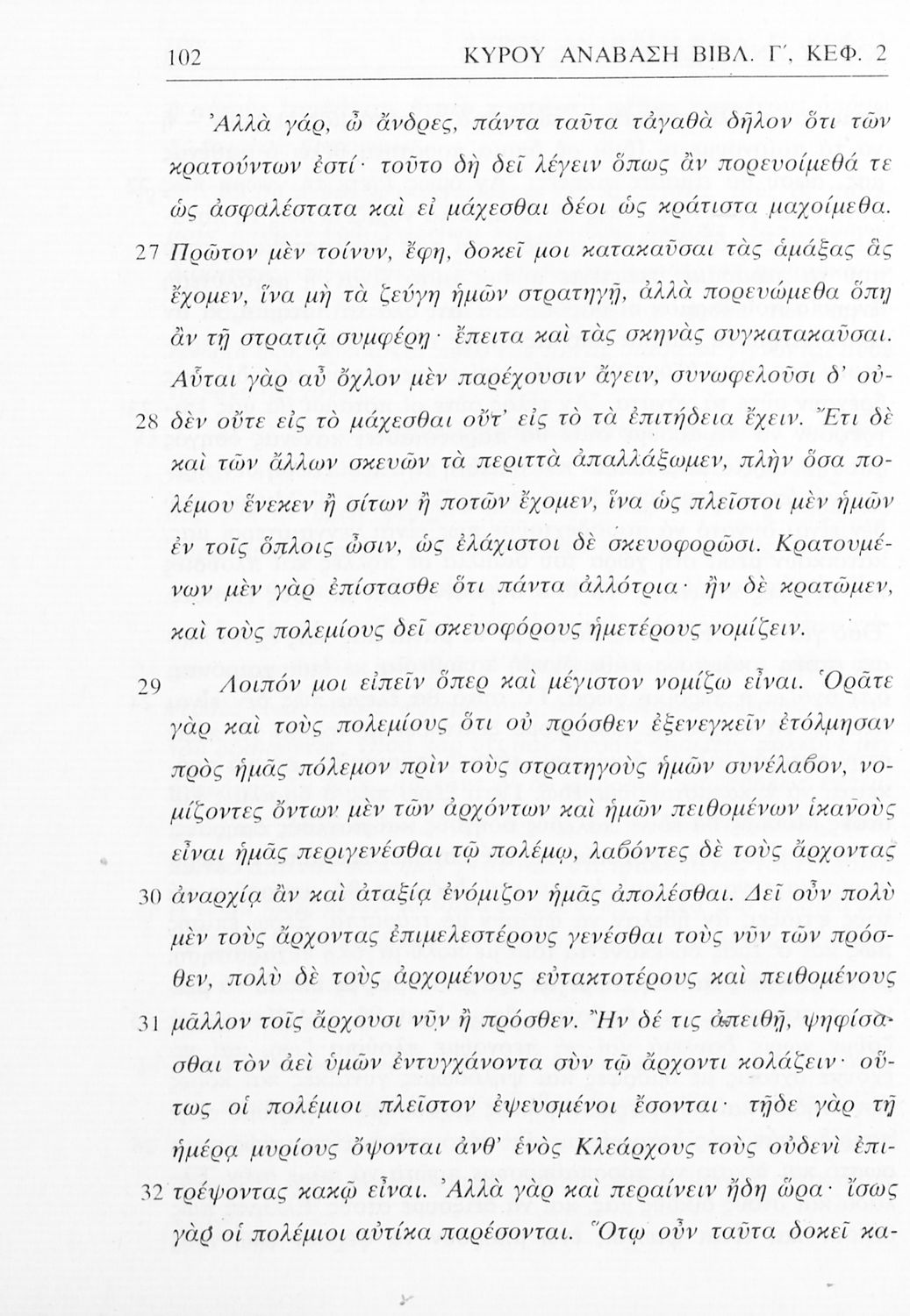 Σχολικό εγχειρίδιο Αρχαίων Ελληνικών α΄ Γυμνασίου που περιλαμβάνει μετάφραση του έργου του Ξενοφώντα Κύρου Ανάβασις, εισαγωγικά σχόλια για τη ζωή και το έργο του, και ερμηνευτικές παρατηρήσεις.