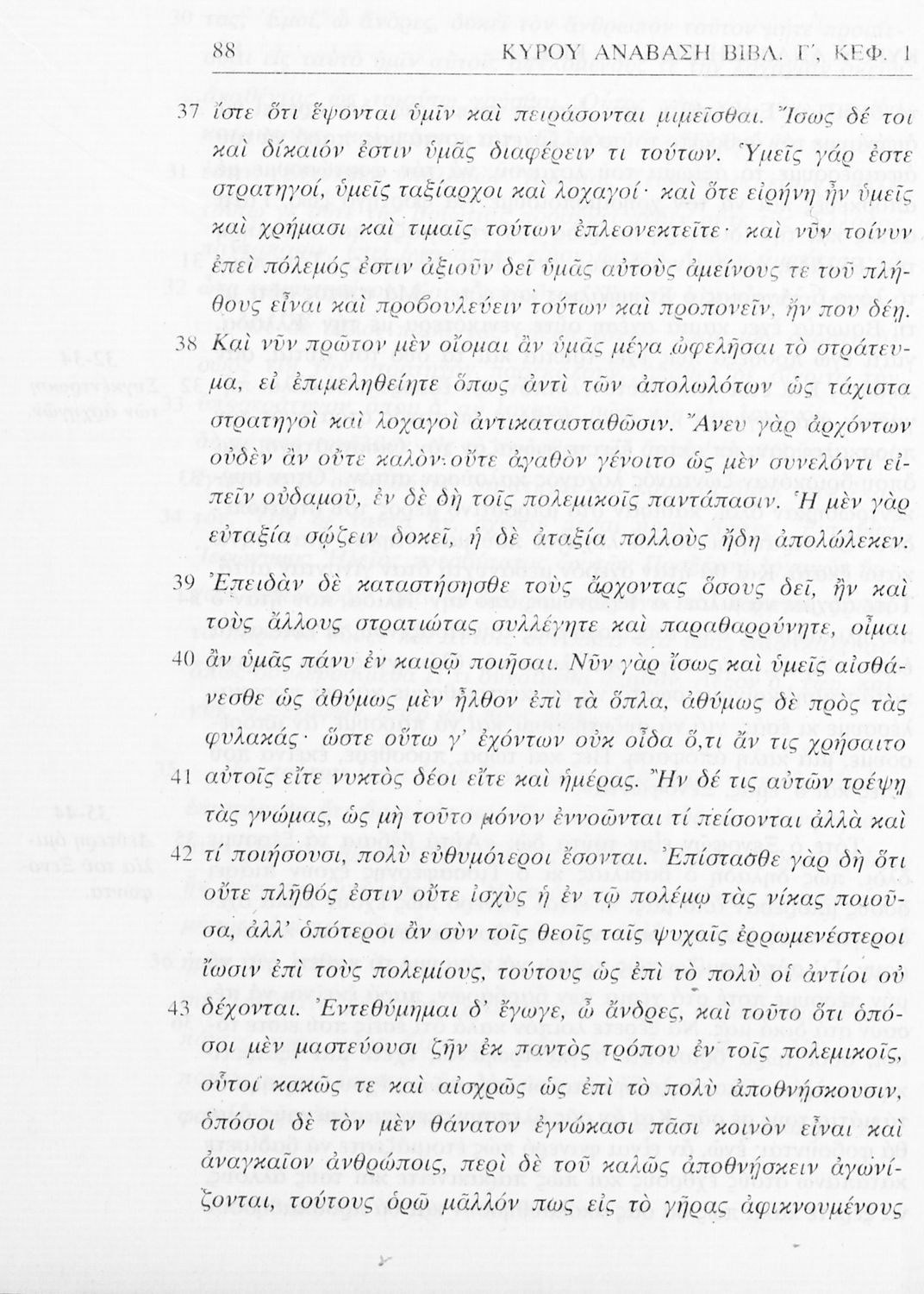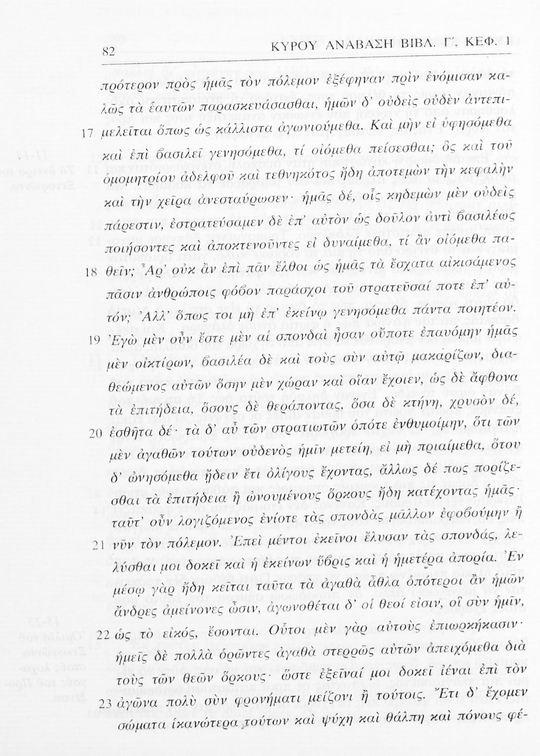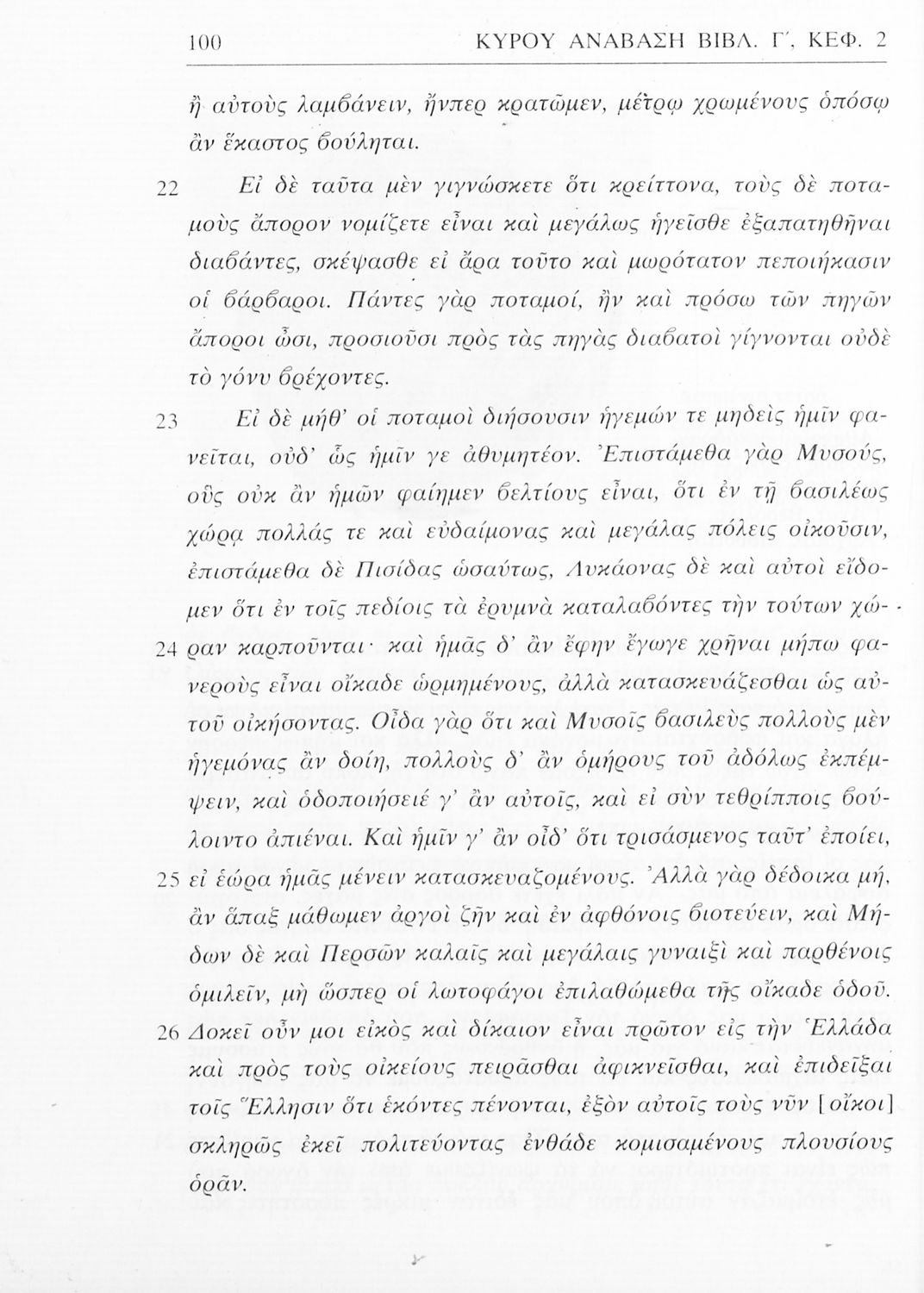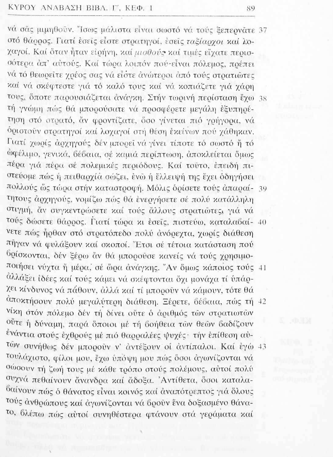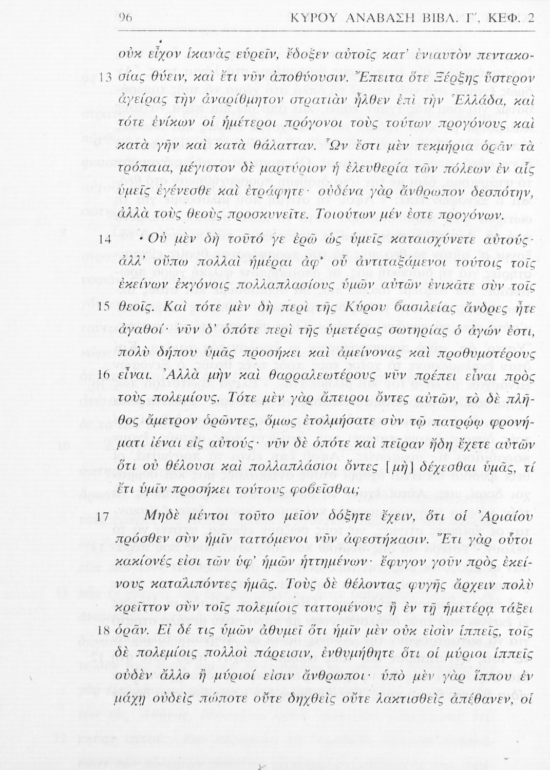 Σχολικό εγχειρίδιο Αρχαίων Ελληνικών α΄ Γυμνασίου που περιλαμβάνει μετάφραση του έργου του Ξενοφώντα Κύρου Ανάβασις, εισαγωγικά σχόλια για τη ζωή και το έργο του, και ερμηνευτικές παρατηρήσεις.