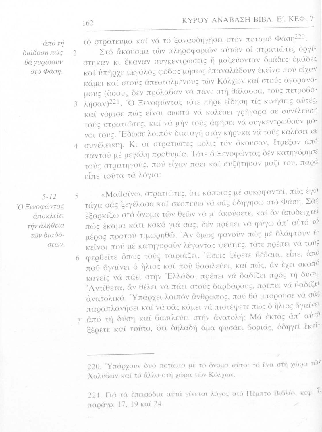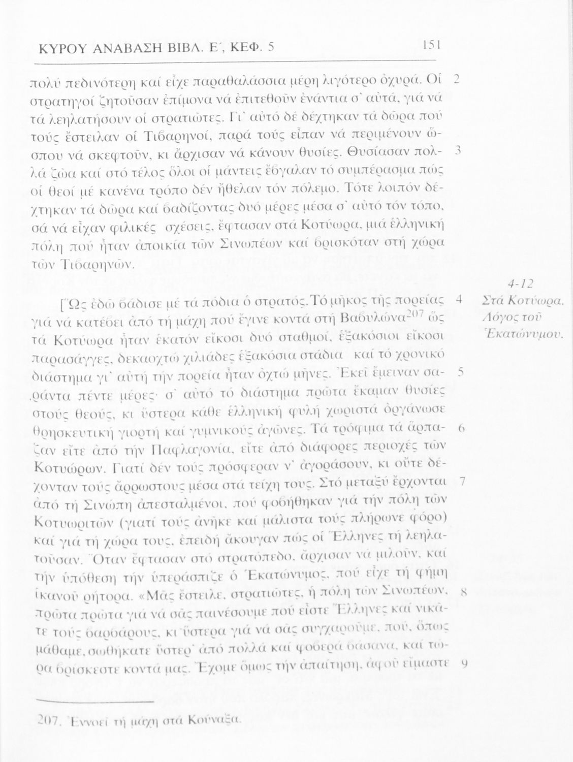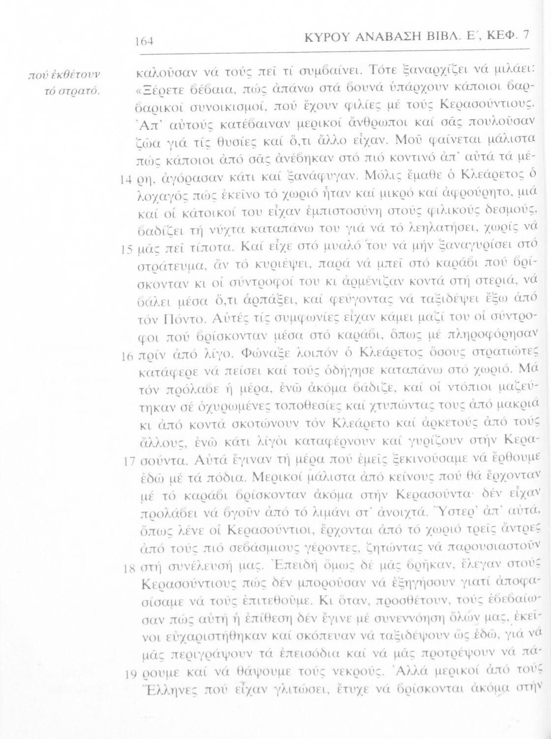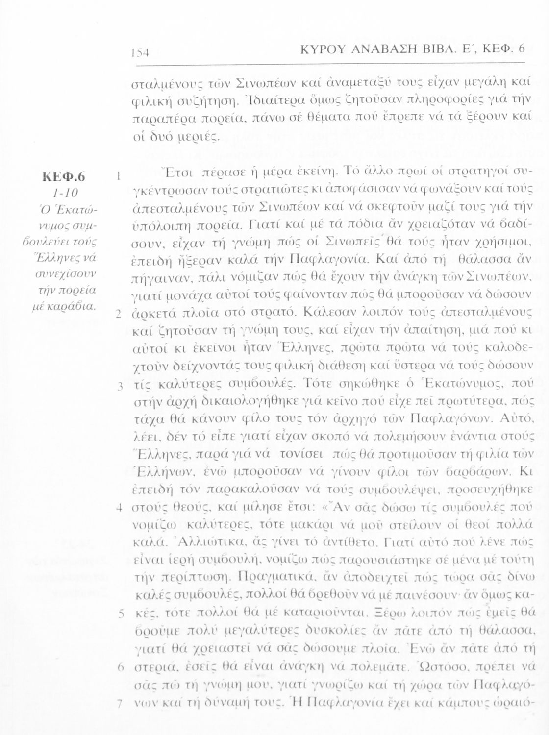 Σχολικό εγχειρίδιο Αρχαίων Ελληνικών α΄ Γυμνασίου που περιλαμβάνει μετάφραση του έργου του Ξενοφώντα Κύρου Ανάβασις, εισαγωγικά σχόλια για τη ζωή και το έργο του, και ερμηνευτικές παρατηρήσεις.