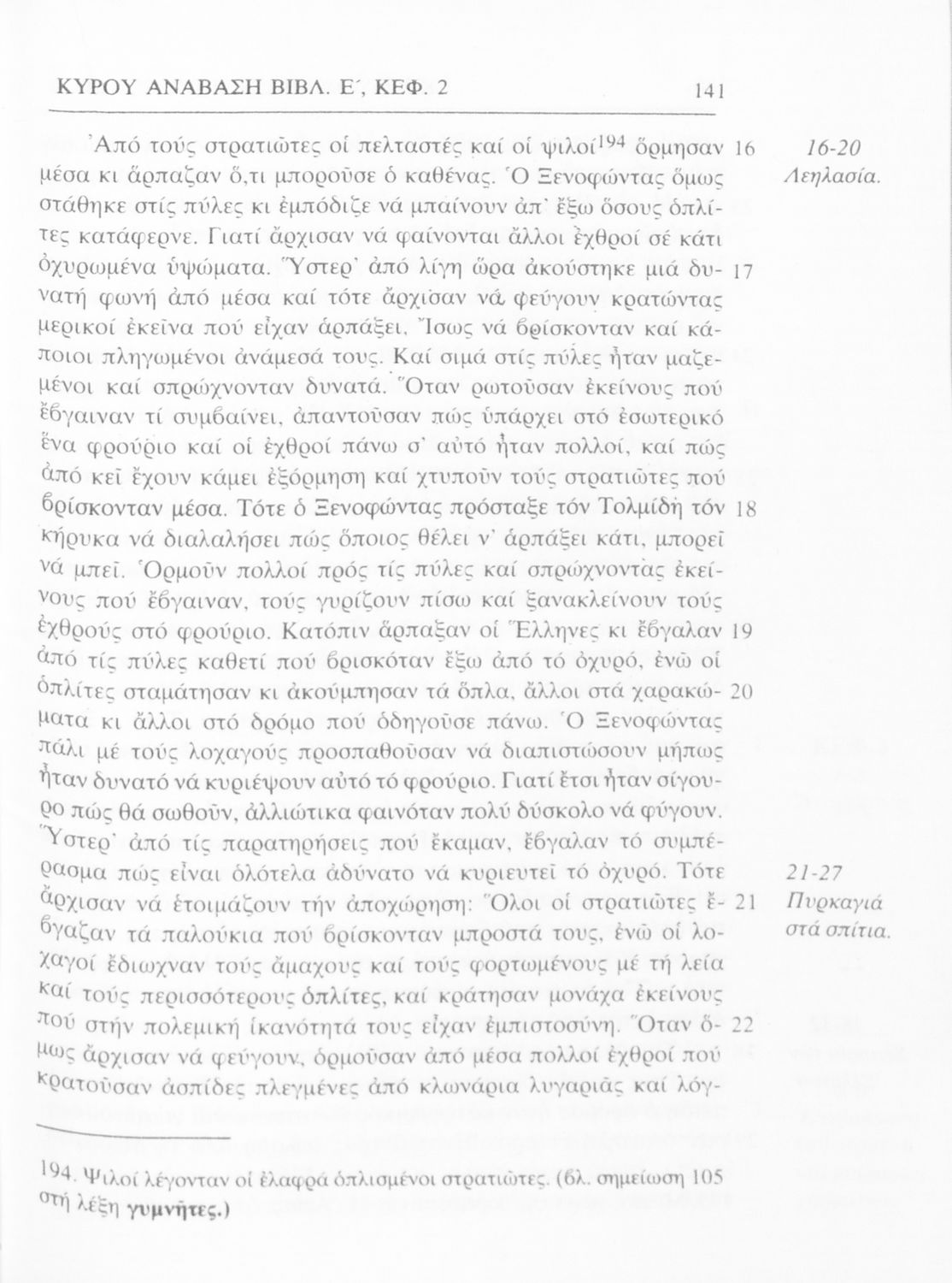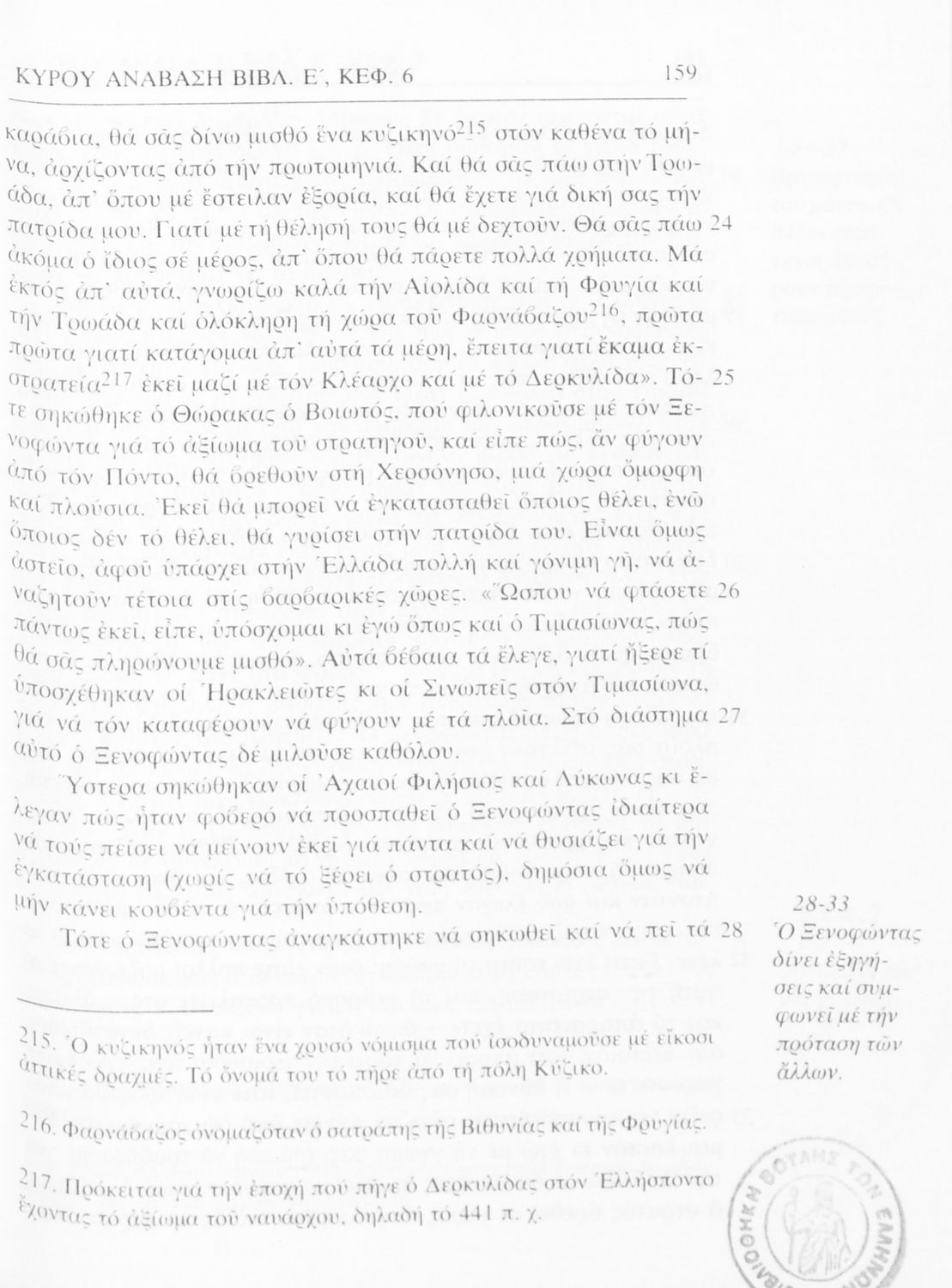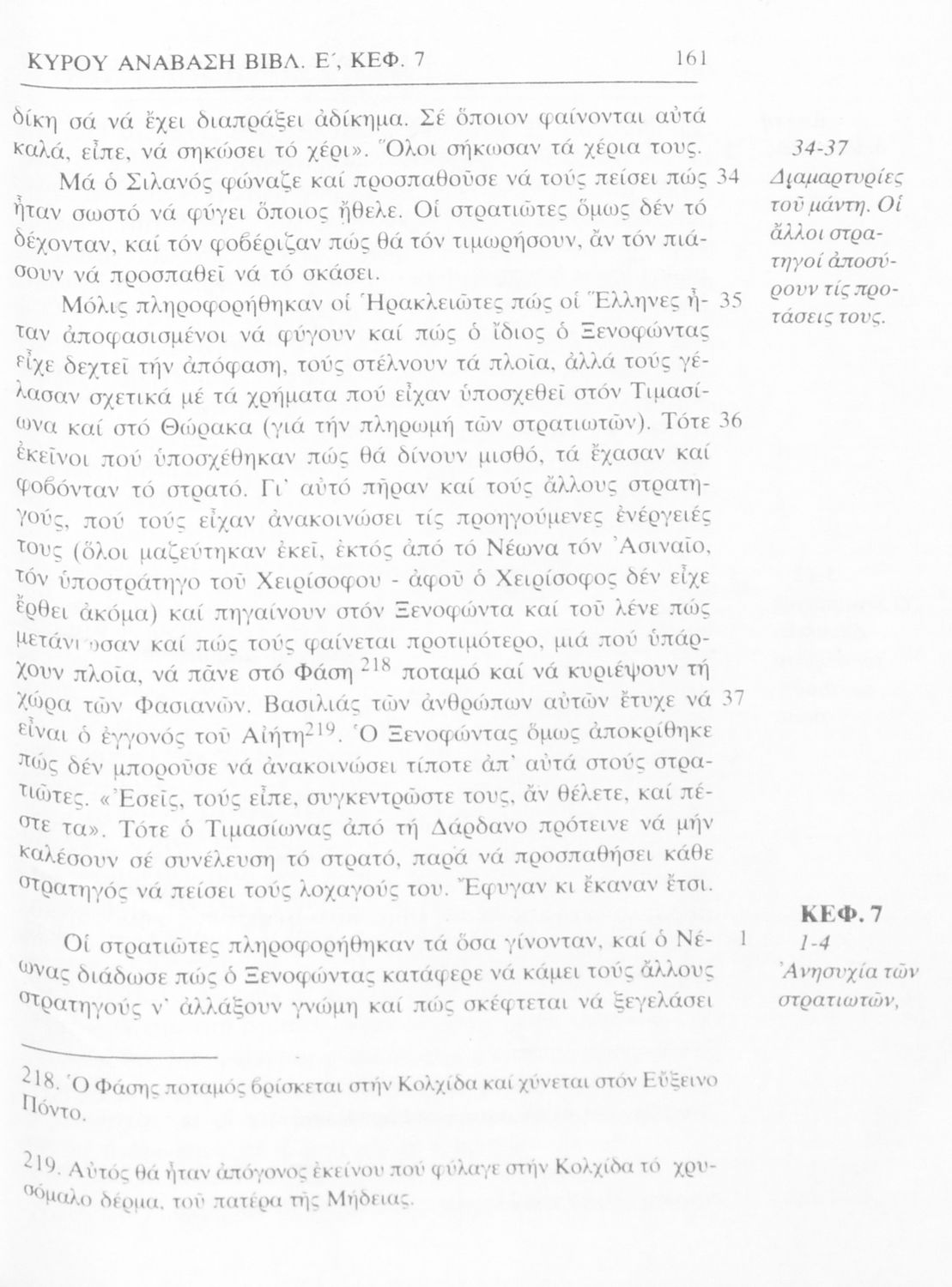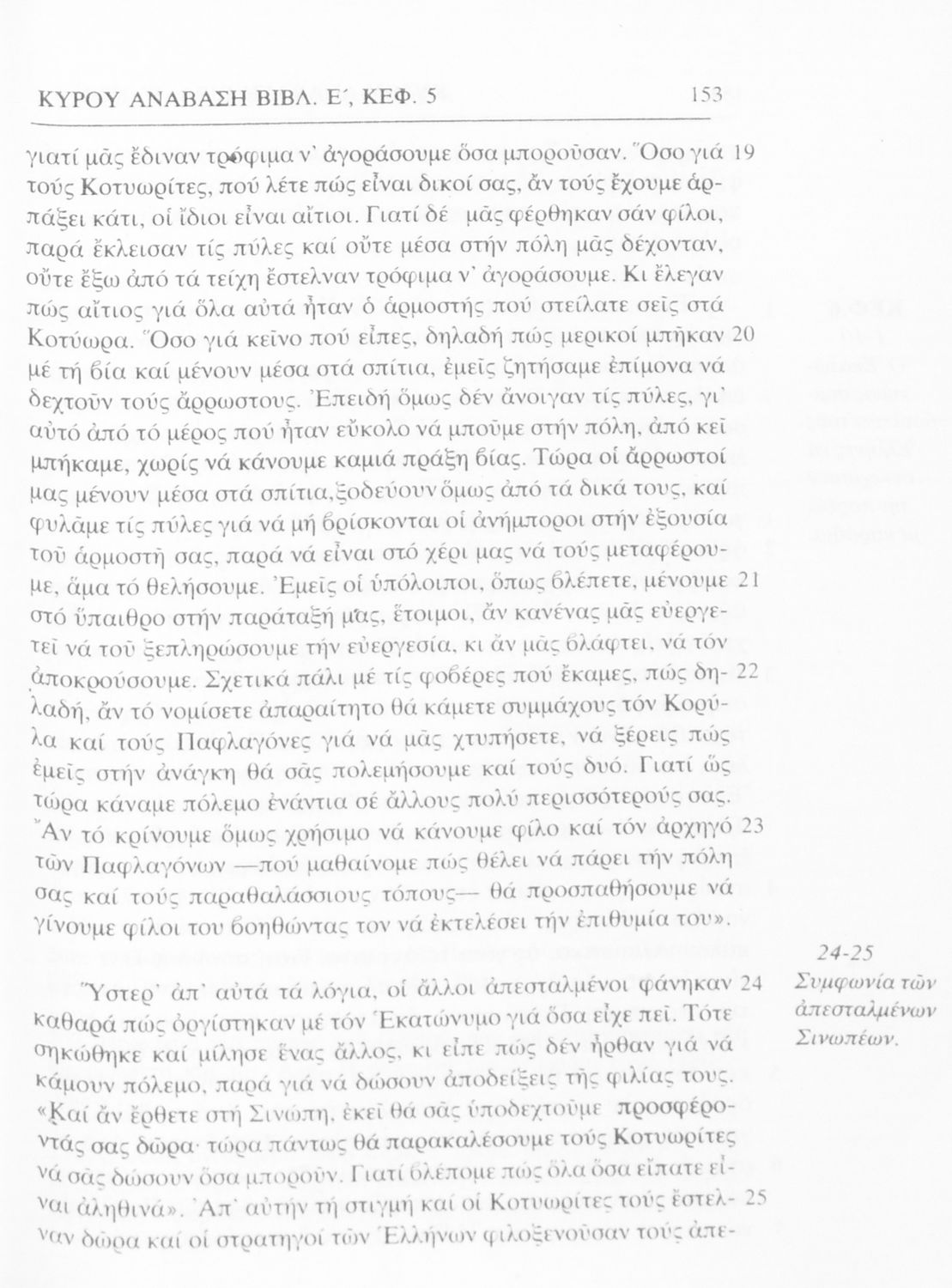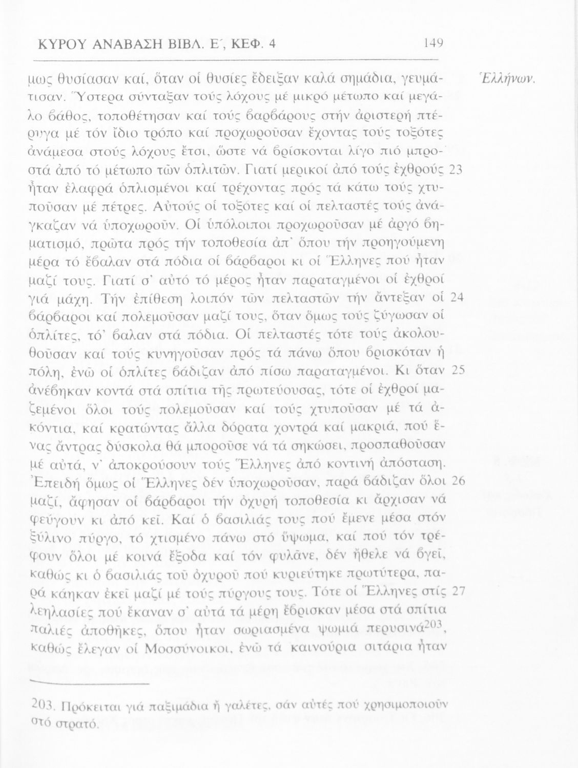 Σχολικό εγχειρίδιο Αρχαίων Ελληνικών α΄ Γυμνασίου που περιλαμβάνει μετάφραση του έργου του Ξενοφώντα Κύρου Ανάβασις, εισαγωγικά σχόλια για τη ζωή και το έργο του, και ερμηνευτικές παρατηρήσεις.