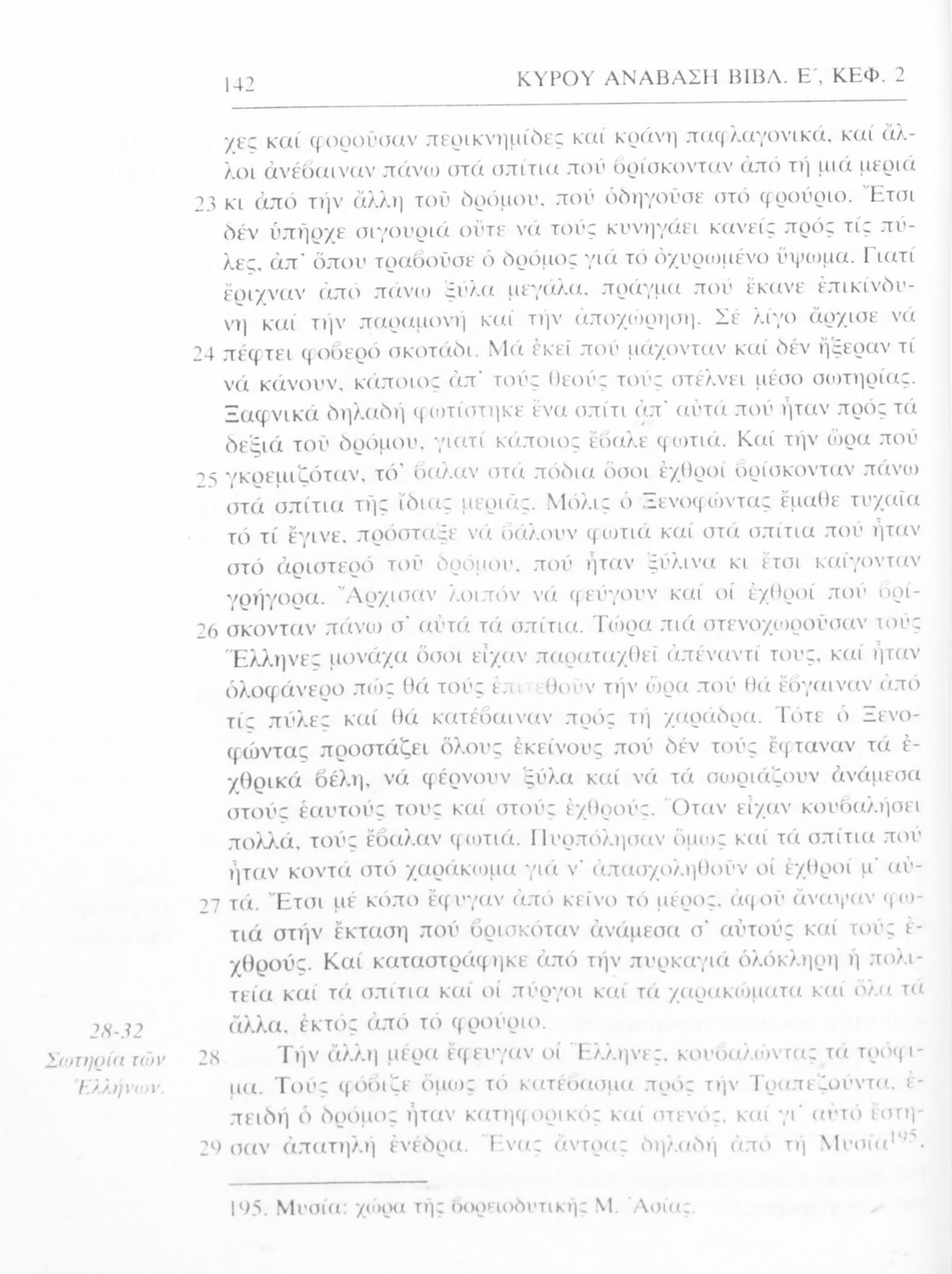 Σχολικό εγχειρίδιο Αρχαίων Ελληνικών Β΄ Γυμνασίου που περιέχει αποσπάσματα από το έργο Κύρου Ανάβασις του Ξενοφώντα, λεξιλογικές παρατηρήσεις, ερμηνευτικά, πραγματολογικά σχόλια και γραμματικές παρατηρήσεις.