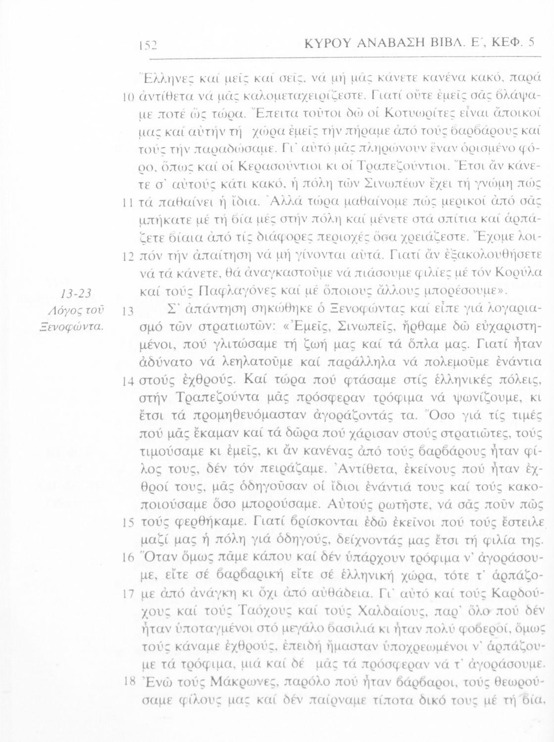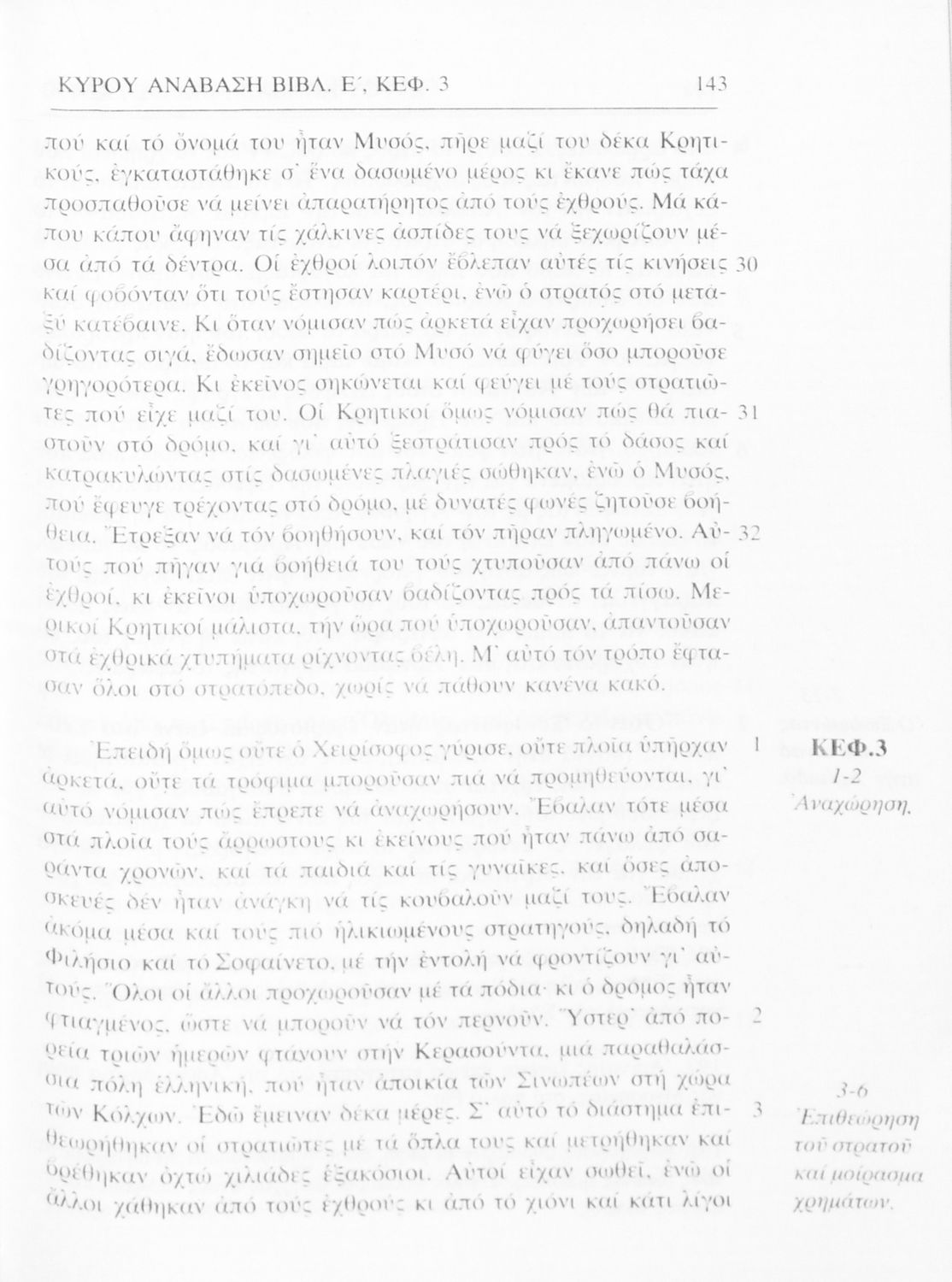 Σχολικό εγχειρίδιο Αρχαίων Ελληνικών Γ΄ Γυμνασίου που περιλαμβάνει αποσπάσματα από το έργο του Ξενοφώντα Κύρου Ανάβασις, εισαγωγικά σχόλια για τη ζωή και το έργο του, ερμηνευτικές και γραμματικές παρατηρήσεις.