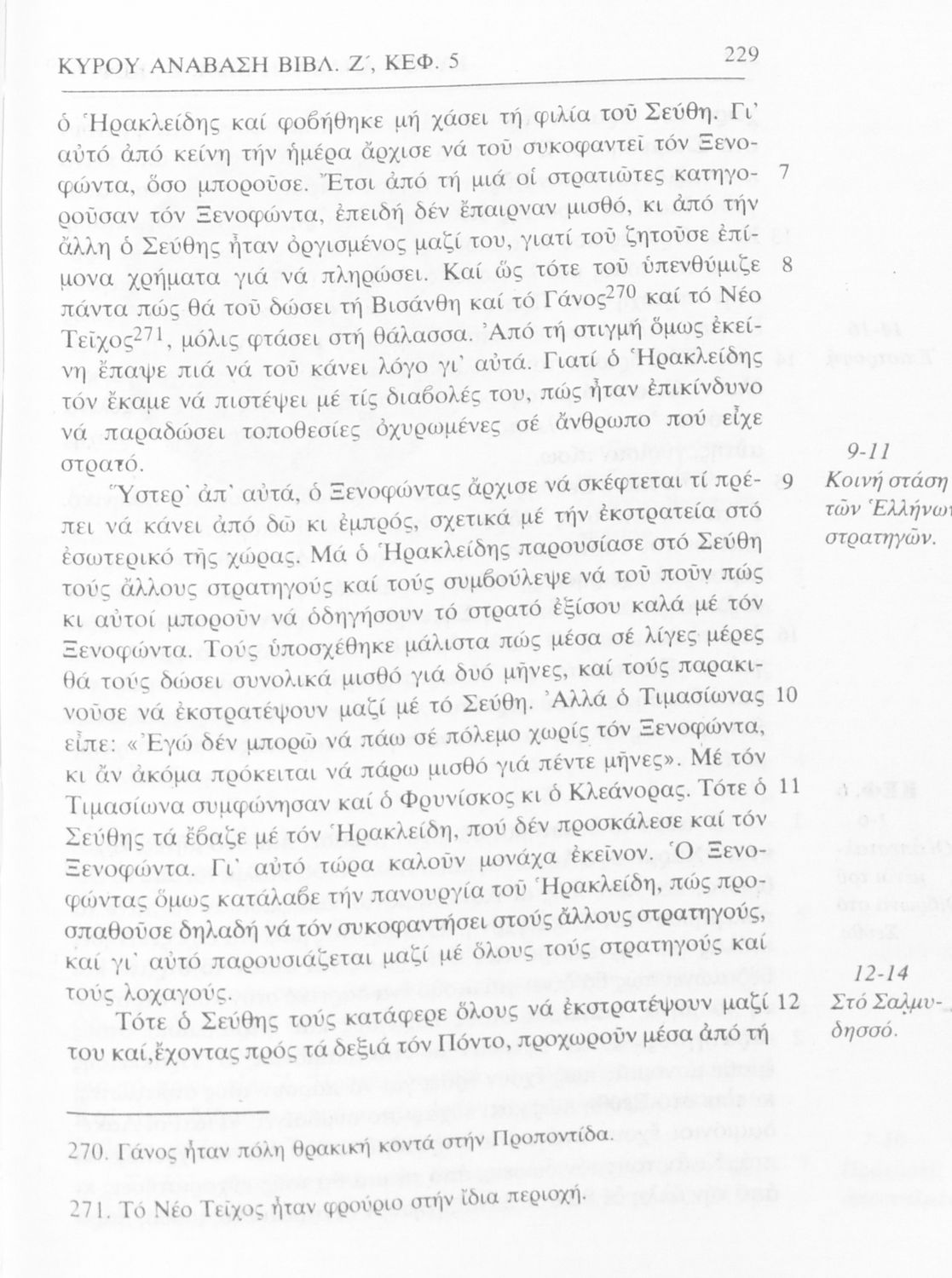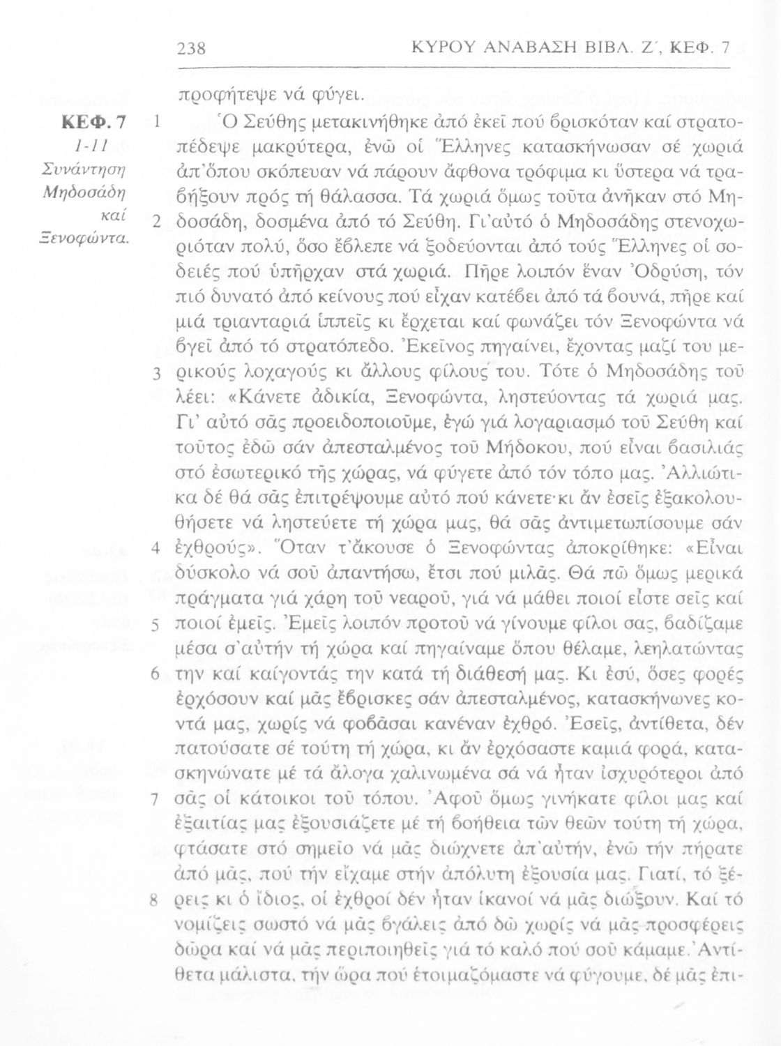 Σχολικό εγχειρίδιο Αρχαίων Ελληνικών α΄ Γυμνασίου που περιλαμβάνει μετάφραση του έργου του Ξενοφώντα Κύρου Ανάβασις, εισαγωγικά σχόλια για τη ζωή και το έργο του, και ερμηνευτικές παρατηρήσεις.