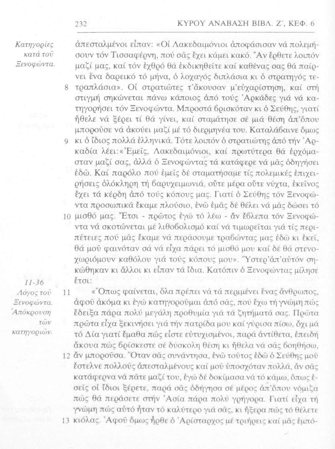 Σχολικό εγχειρίδιο Αρχαίων Ελληνικών Γ΄ Γυμνασίου που περιλαμβάνει αποσπάσματα από το έργο του Ξενοφώντα Κύρου Ανάβασις, εισαγωγικά σχόλια για τη ζωή και το έργο του, ερμηνευτικές και γραμματικές παρατηρήσεις.