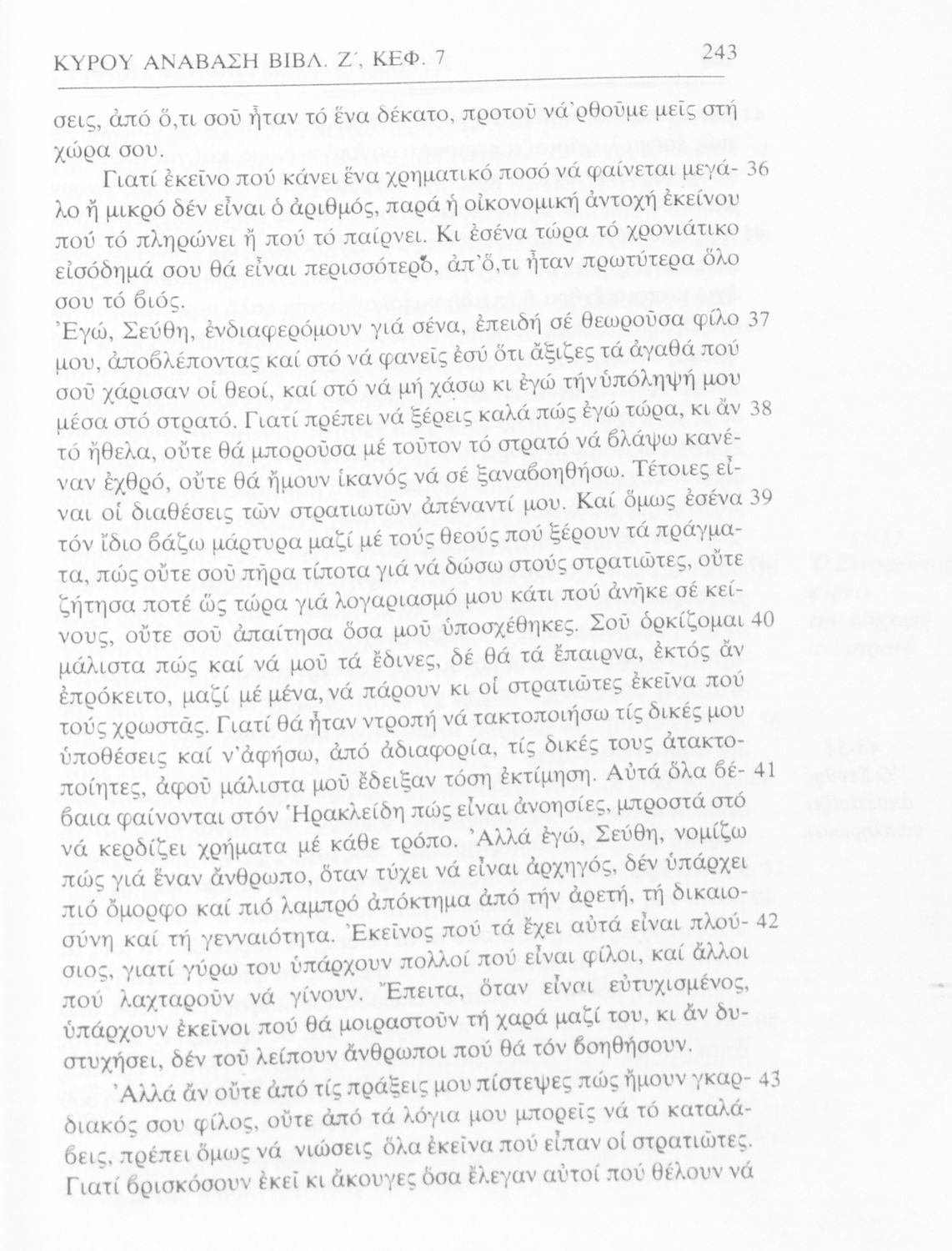 Σχολικό εγχειρίδιο Αρχαίων Ελληνικών. Από τα εφτά μέρη της "Κύρου Ανάβασις" του Ξενοφώντα που περιέχονται στο εγχειρίδιο το Πρώτο και το Έβδομο αναφέρονται περιληπτικά. Στο βιβλίο περιλαμβάνονται εισαγωγικό ...