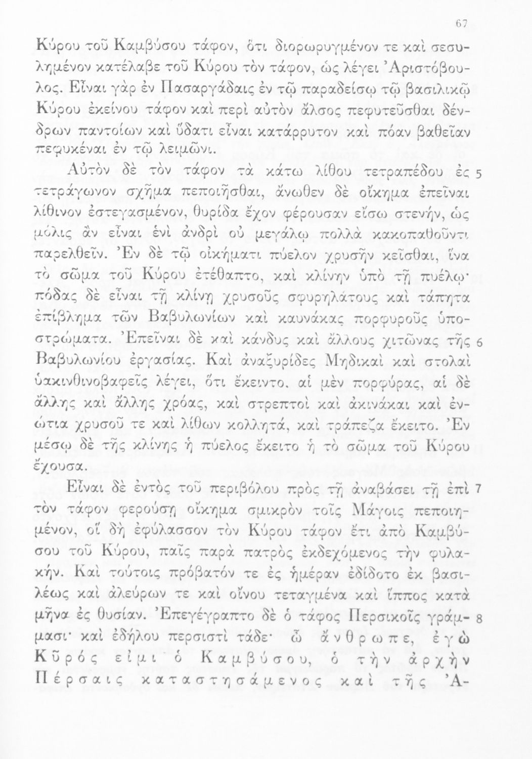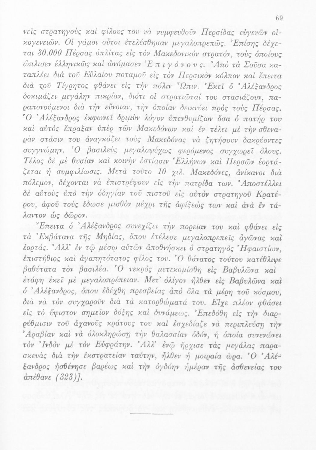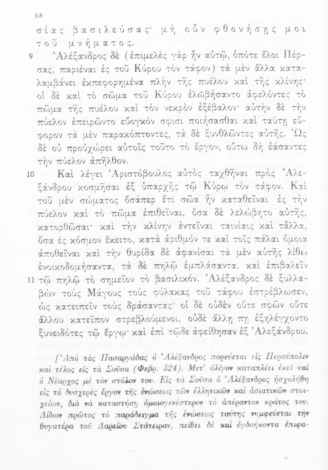 Σχολικό εγχειρίδιο Αρχαίων Ελληνικών που περιλαμβάνει αποσπάσματα από το έργο του Αρριανού Αλέξανδρου Ανάβασις και του Ηρόδοτου Ιστορίαι, ερμηνευτικές και λεξιλογικές παρατηρήσεις καθώς και τοπογραφικούς ...
