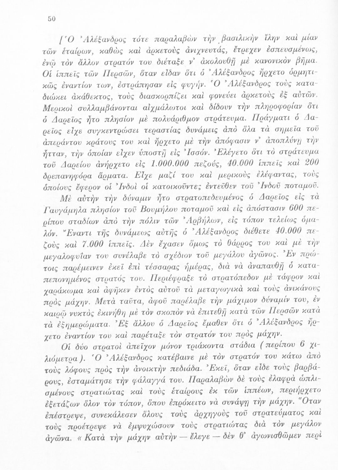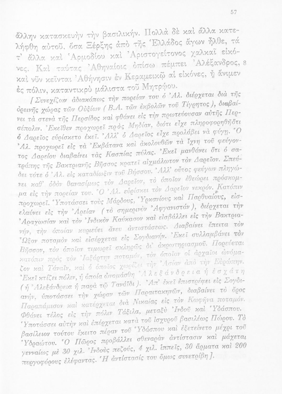 Σχολικό εγχειρίδιο Αρχαίων Ελληνικών που περιλαμβάνει αποσπάσματα από το έργο του Αρριανού Αλέξανδρου Ανάβασις και του Ηρόδοτου Ιστορίαι, ερμηνευτικές και λεξιλογικές παρατηρήσεις καθώς και τοπογραφικούς ...