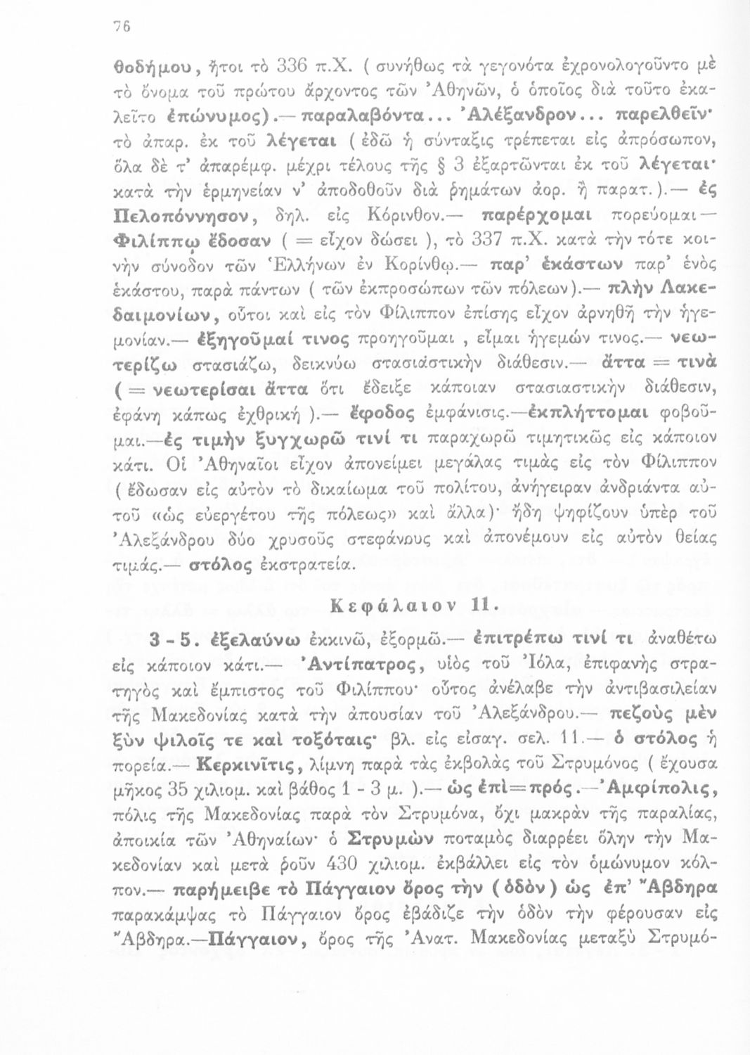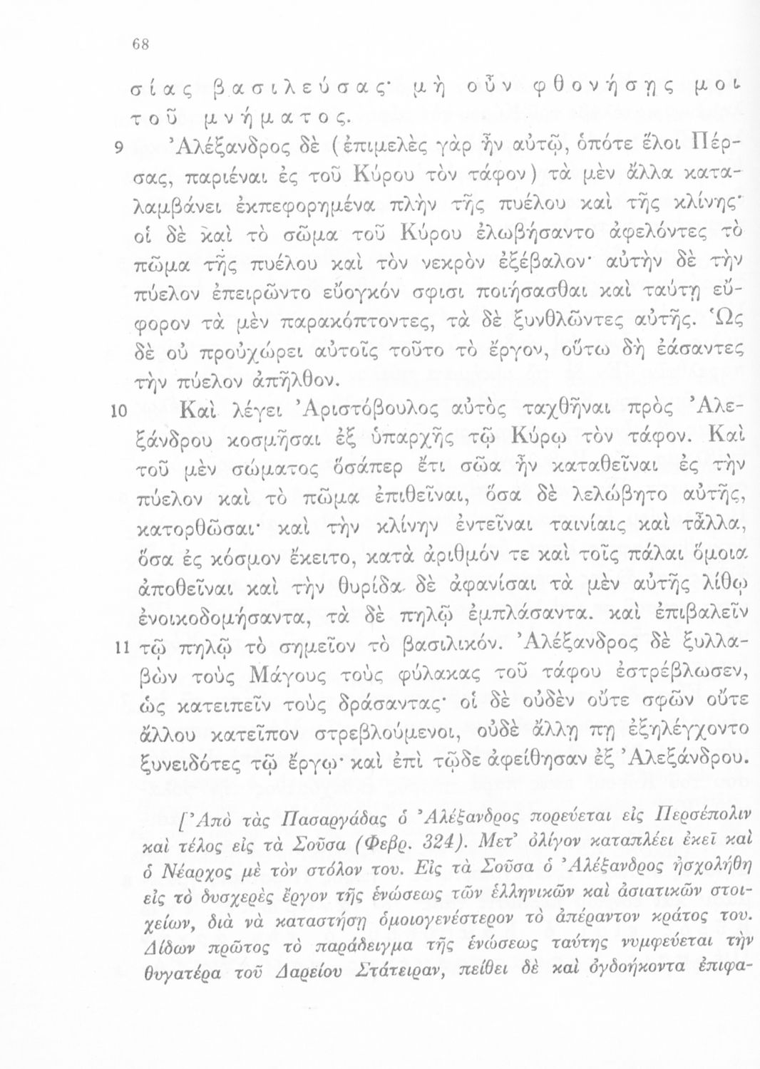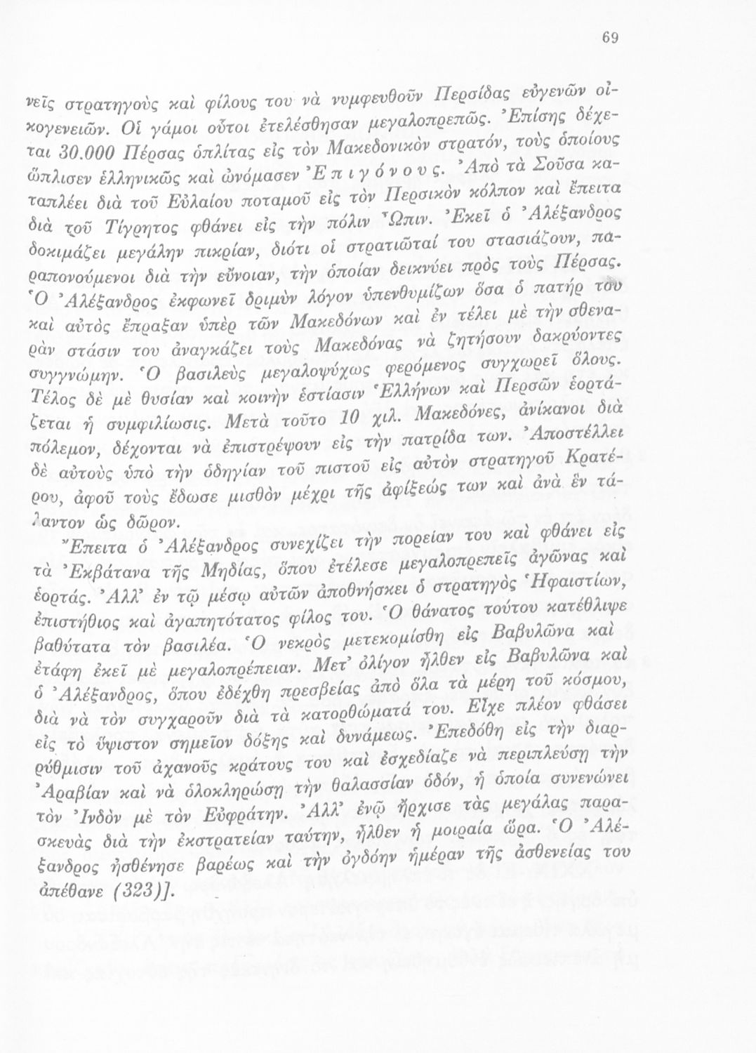 Σχολικό εγχειρίδιο Αρχαίων Ελληνικών που περιλαμβάνει αποσπάσματα από το έργο του Αρριανού Αλέξανδρου Ανάβασις και του Ηρόδοτου Ιστορίαι, ερμηνευτικές και λεξιλογικές παρατηρήσεις καθώς και τοπογραφικούς ...