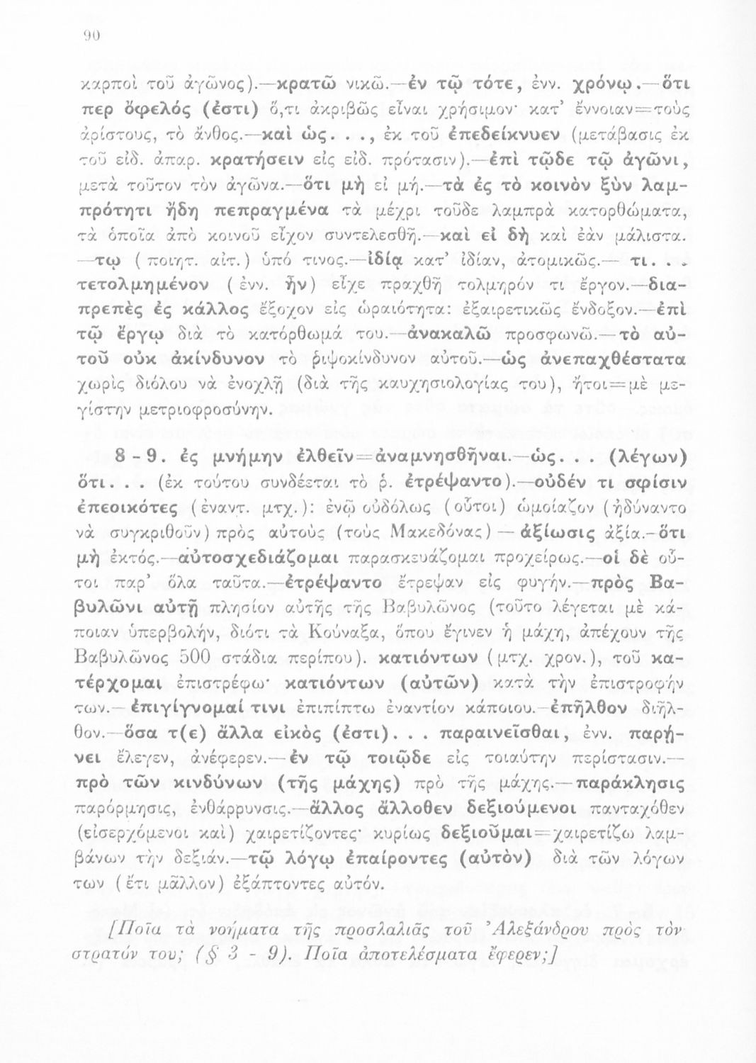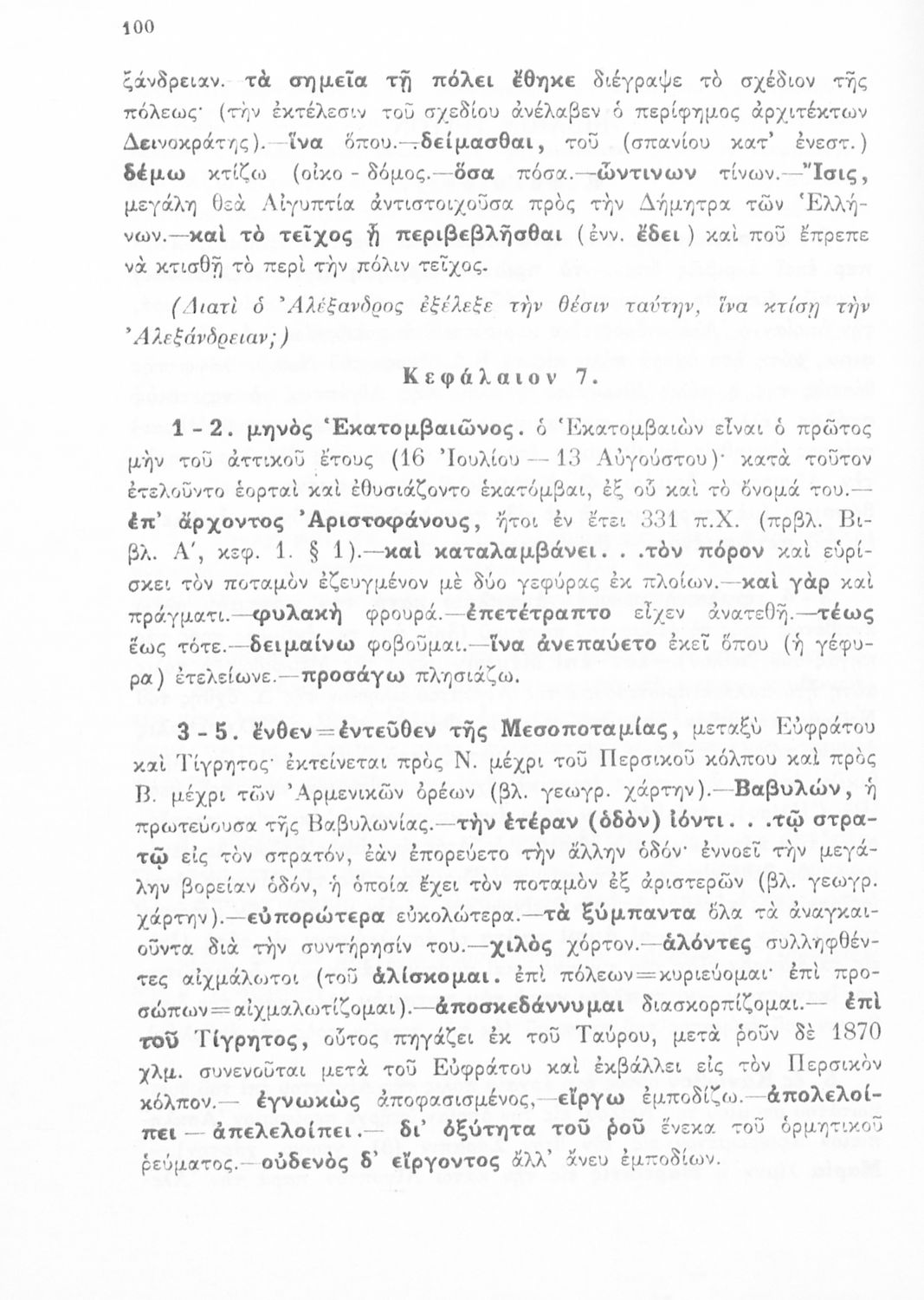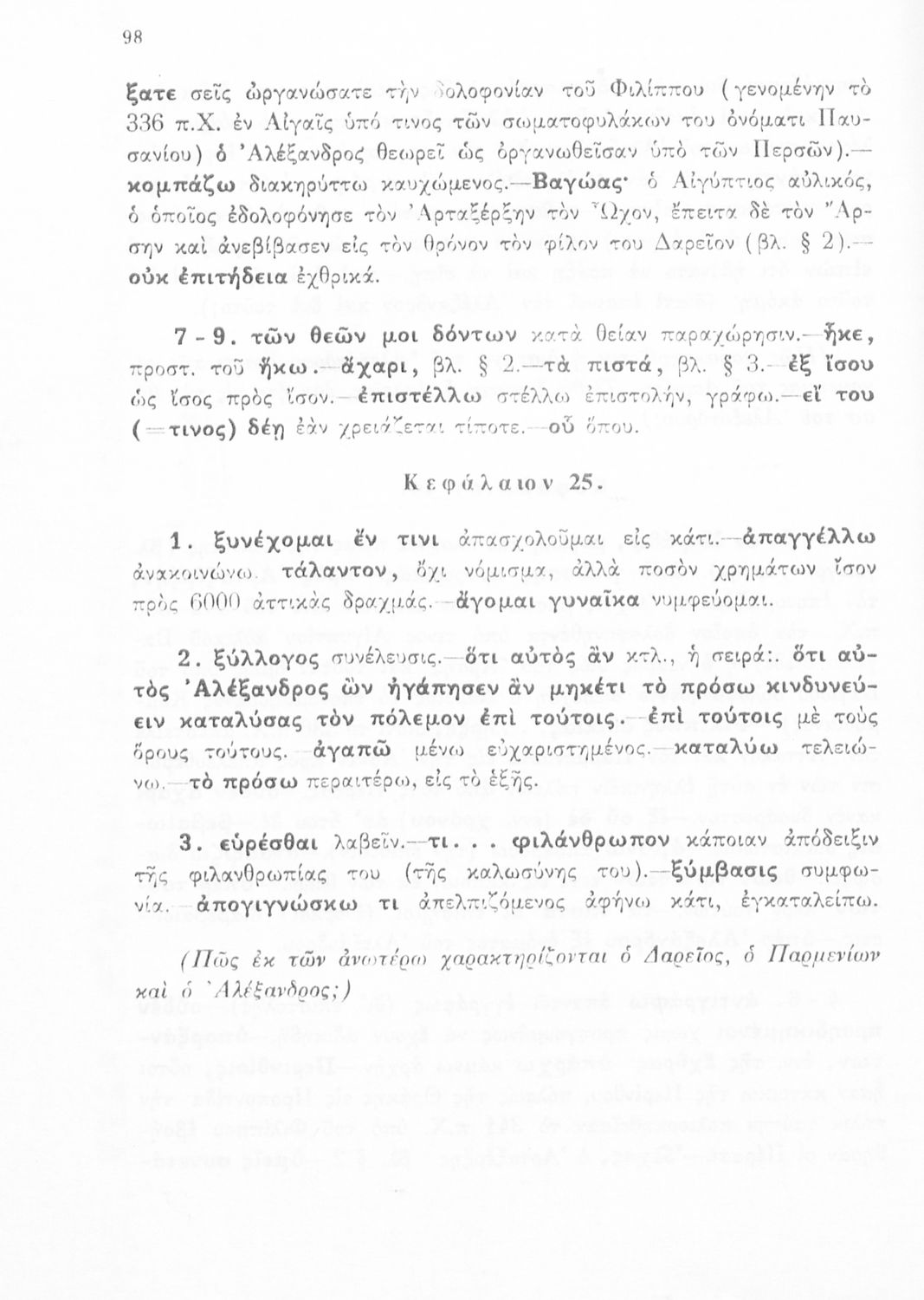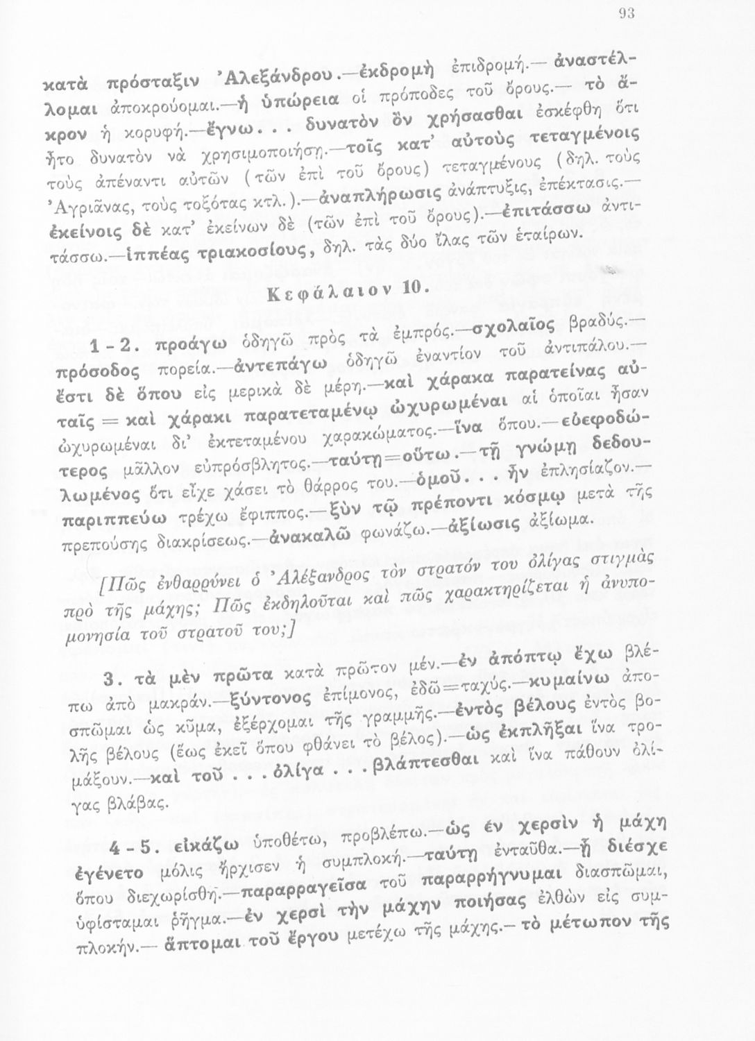 Σχολικό εγχειρίδιο Αρχαίων Ελληνικών για τη Γ΄ Γυμνασίου που περιλαμβάνει σύντομο βιογραφικό σημείωμα του Αρριανού, εισαγωγή στο έργο, αποσπάσματα από το πρώτο και δεύτερο βιβλίο της Ανάβασης του Αλέξανδρου και ετυμολογικές σημειώσεις. Φέρει το σύμβολο της δικτατορίας.