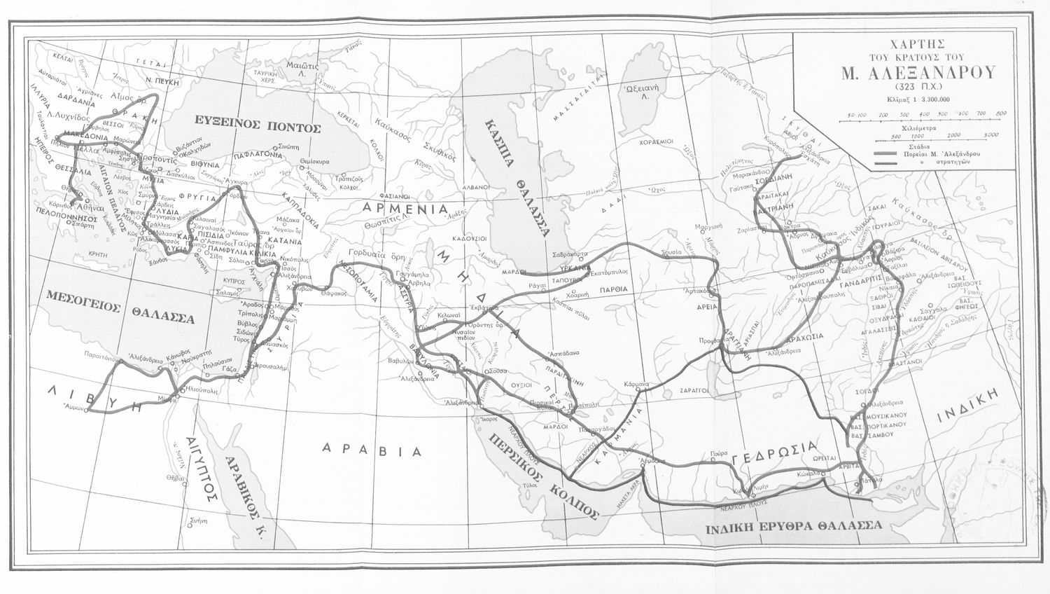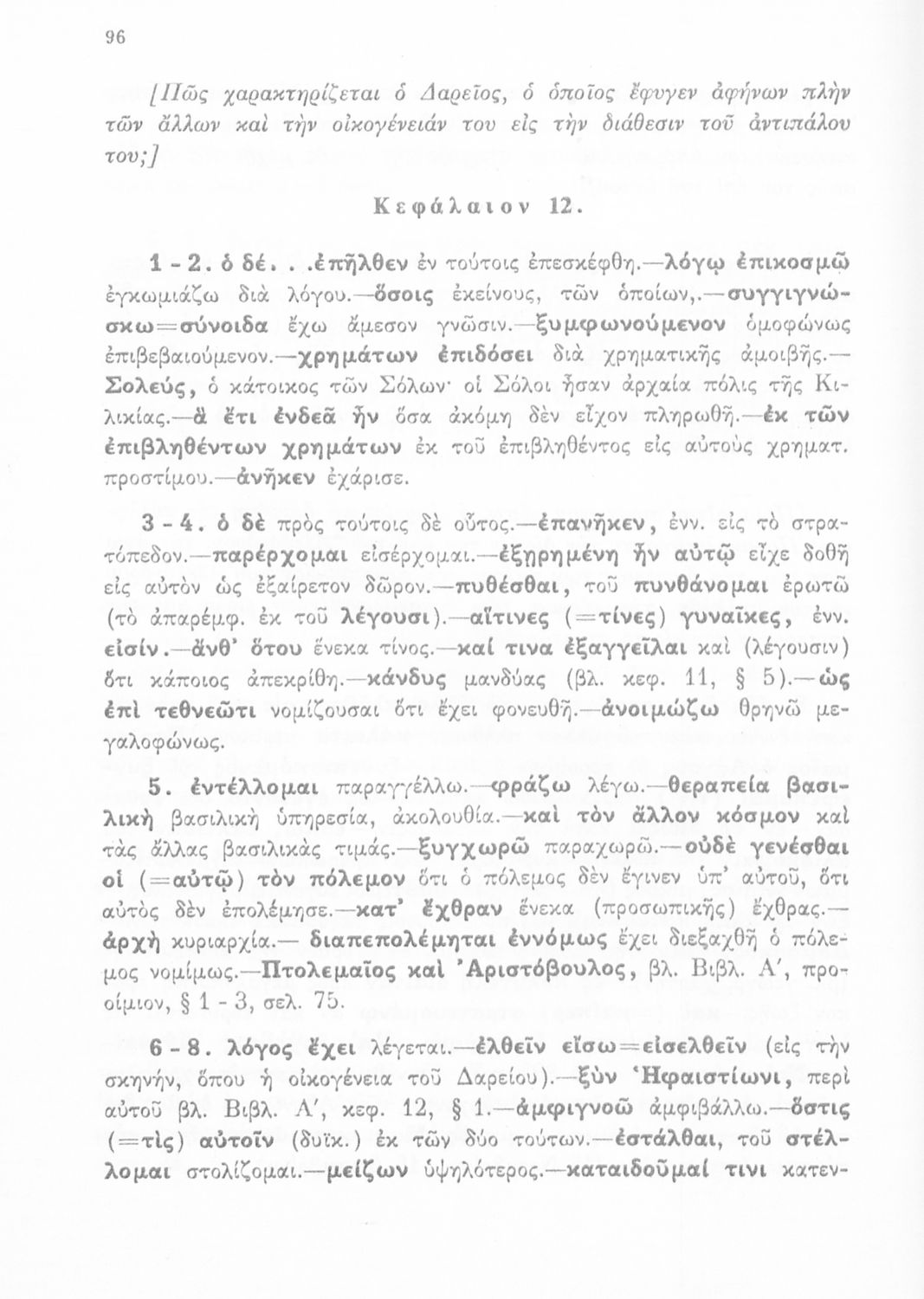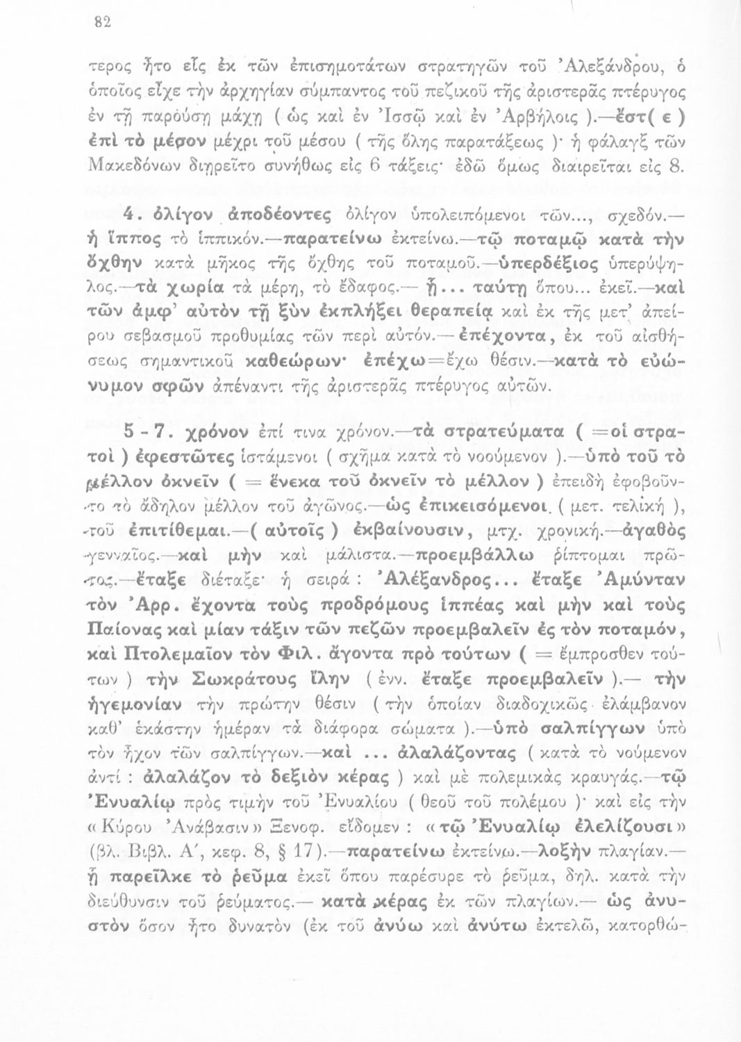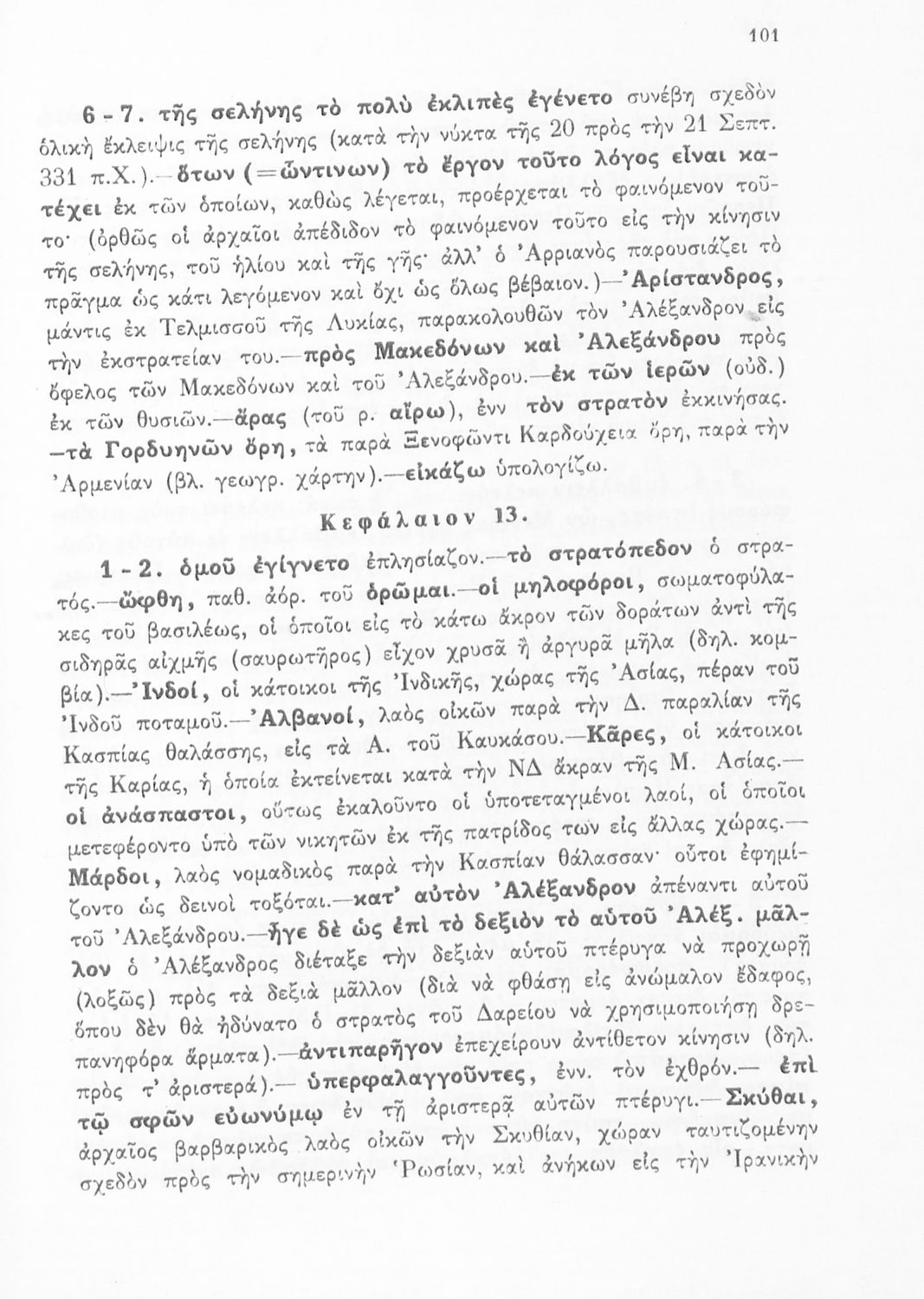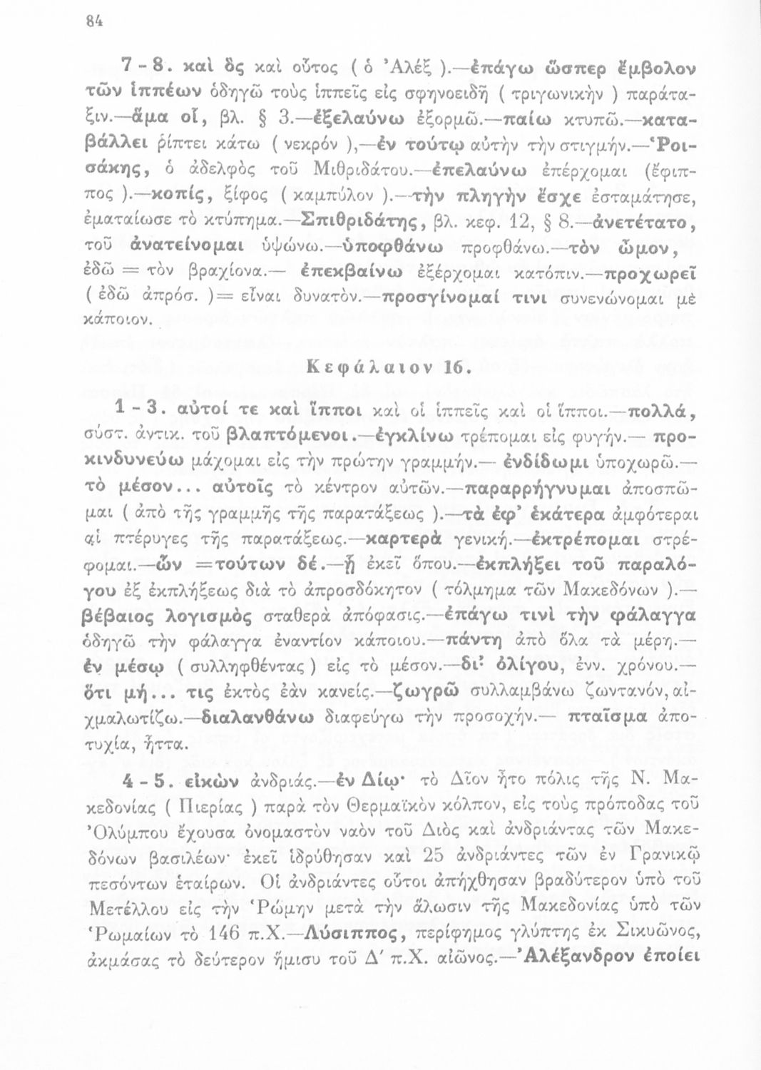 Σχολικό εγχειρίδιο Αρχαίων Ελληνικών για τη Γ΄ Γυμνασίου που περιλαμβάνει σύντομο βιογραφικό σημείωμα του Αρριανού, εισαγωγή στο έργο, αποσπάσματα από το πρώτο και δεύτερο βιβλίο της Ανάβασης του Αλέξανδρου και ετυμολογικές σημειώσεις. Φέρει το σύμβολο της δικτατορίας.