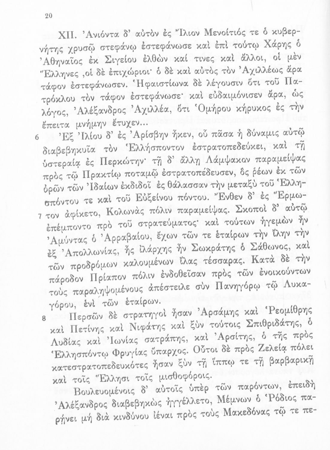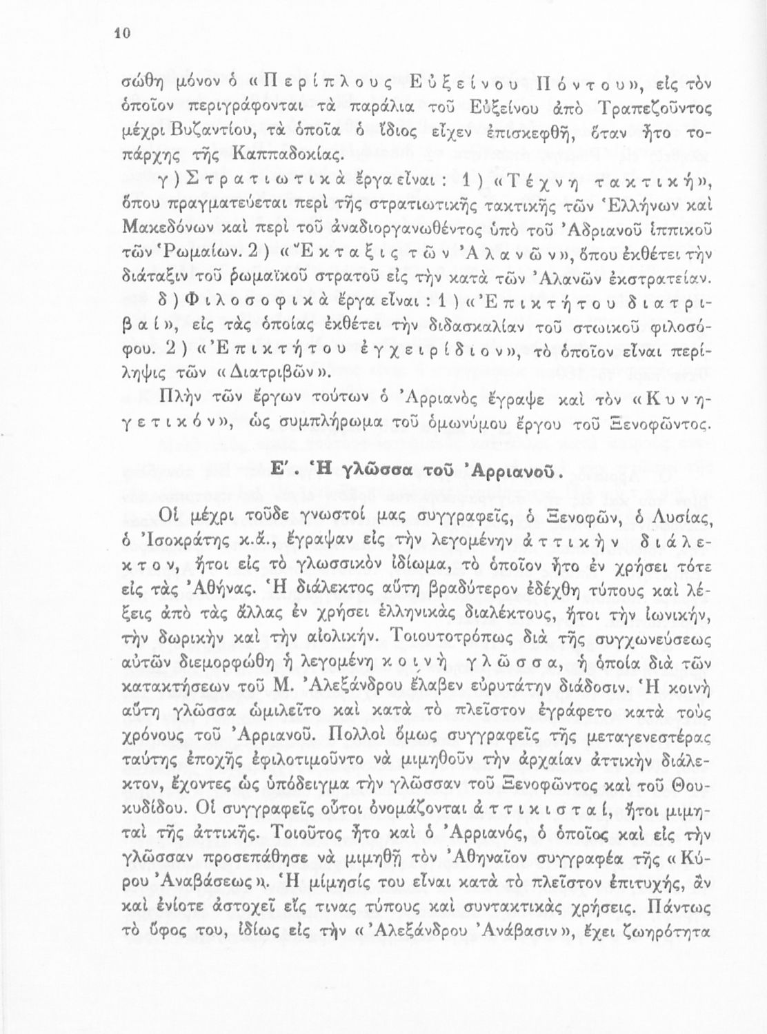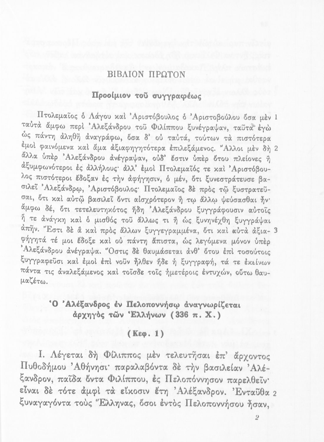 Σχολικό εγχειρίδιο Αρχαίων Ελληνικών για τη Γ΄ Γυμνασίου που περιλαμβάνει σύντομο βιογραφικό σημείωμα του Αρριανού, εισαγωγή στο έργο, αποσπάσματα από το πρώτο και δεύτερο βιβλίο της Ανάβασης του Αλέξανδρου και ετυμολογικές σημειώσεις. Φέρει το σύμβολο της δικτατορίας.