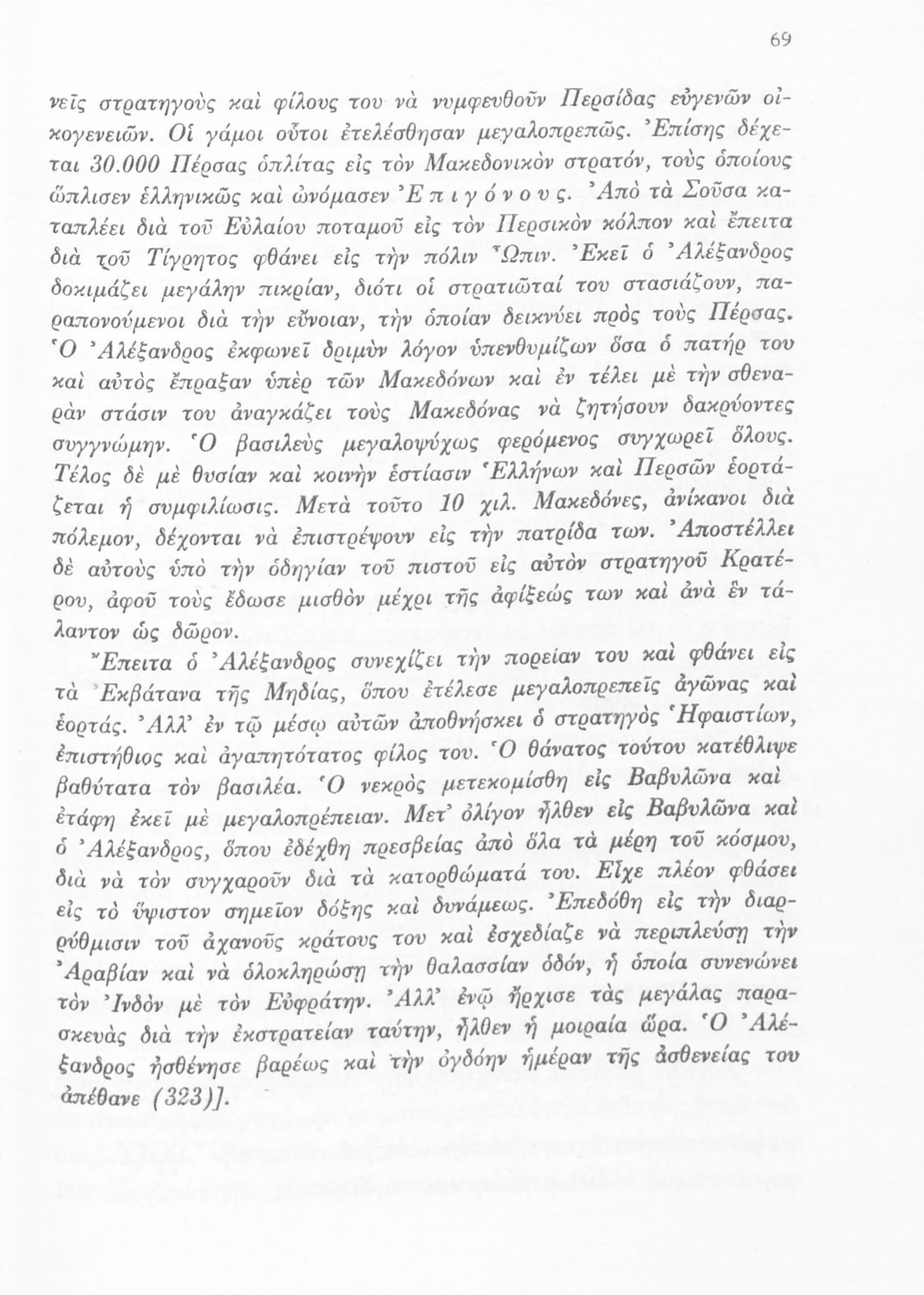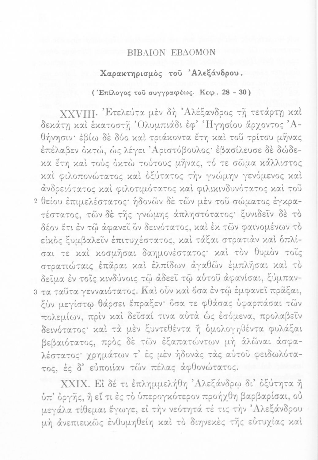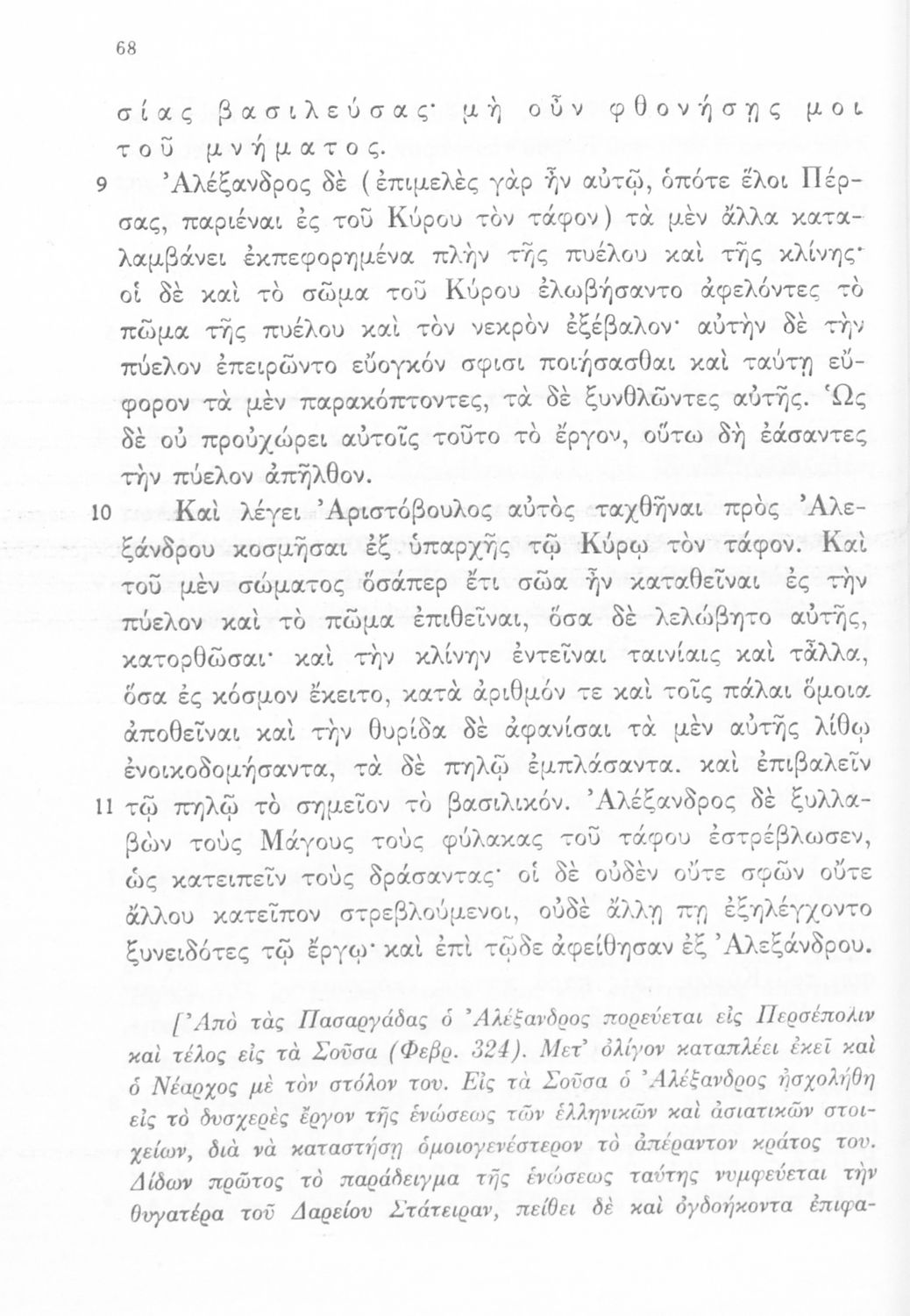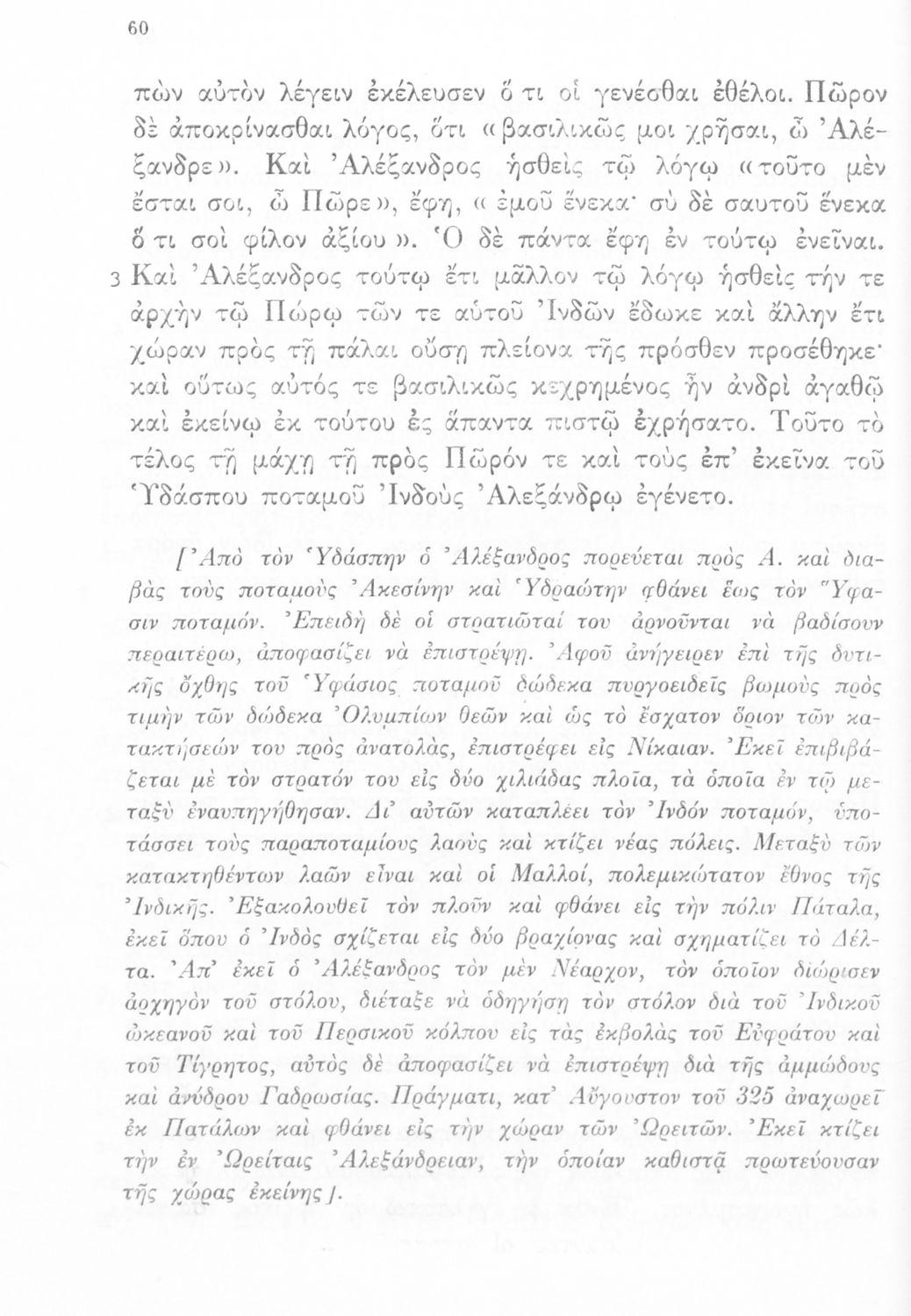 Σχολικό εγχειρίδιο Αρχαίων Ελληνικών που περιλαμβάνει αποσπάσματα από το έργο του Αρριανού Αλέξανδρου Ανάβασις και του Ηρόδοτου Ιστορίαι, ερμηνευτικές και λεξιλογικές παρατηρήσεις καθώς και τοπογραφικούς ...