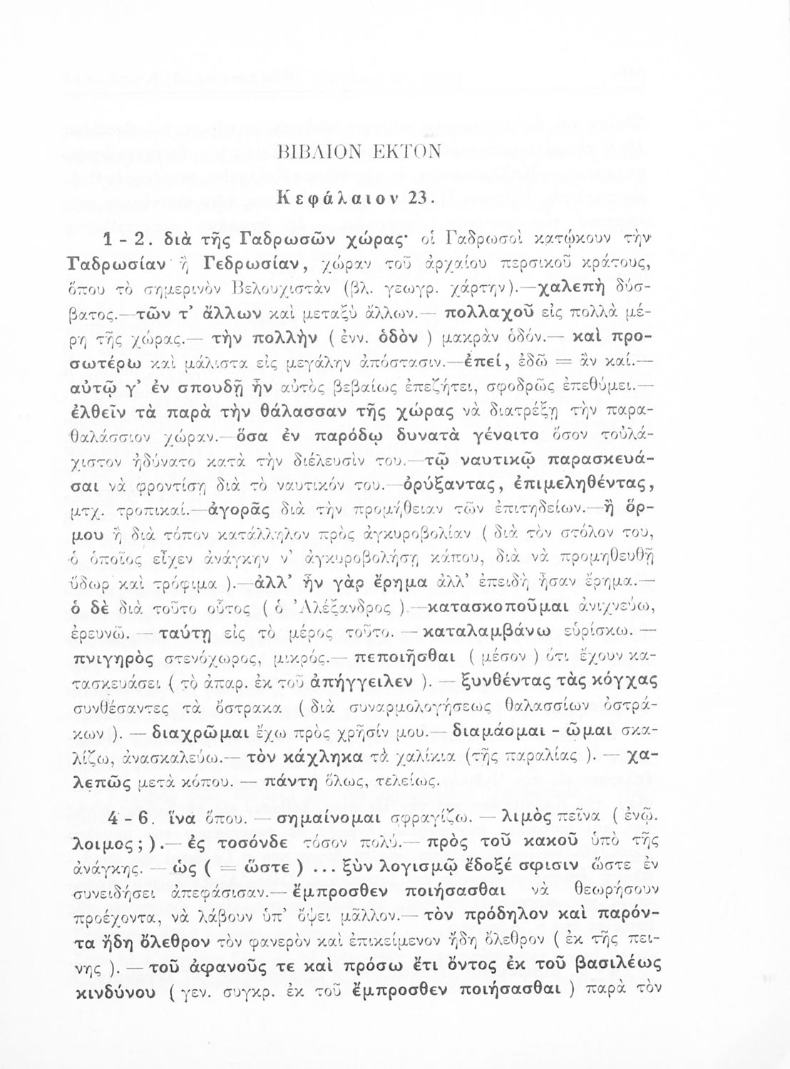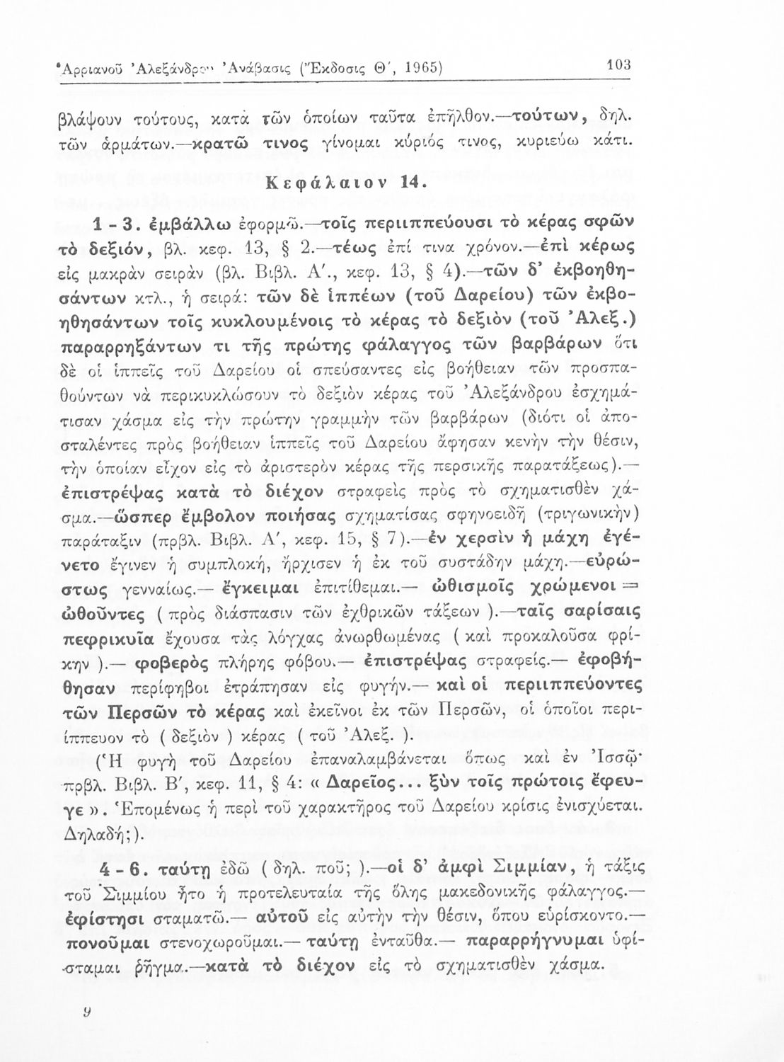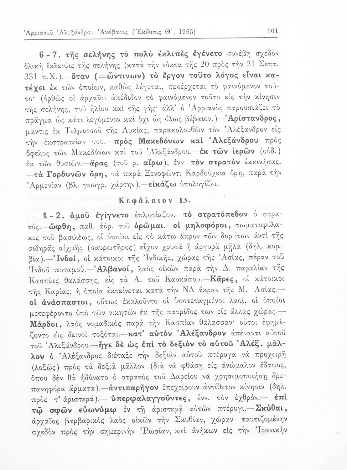 Σχολικό εγχειρίδιο Αρχαίων Ελληνικών που περιλαμβάνει αποσπάσματα από το έργο του Αρριανού Αλέξανδρου Ανάβασις και του Ηρόδοτου Ιστορίαι, ερμηνευτικές και λεξιλογικές παρατηρήσεις καθώς και τοπογραφικούς πίνακες και χάρτες..