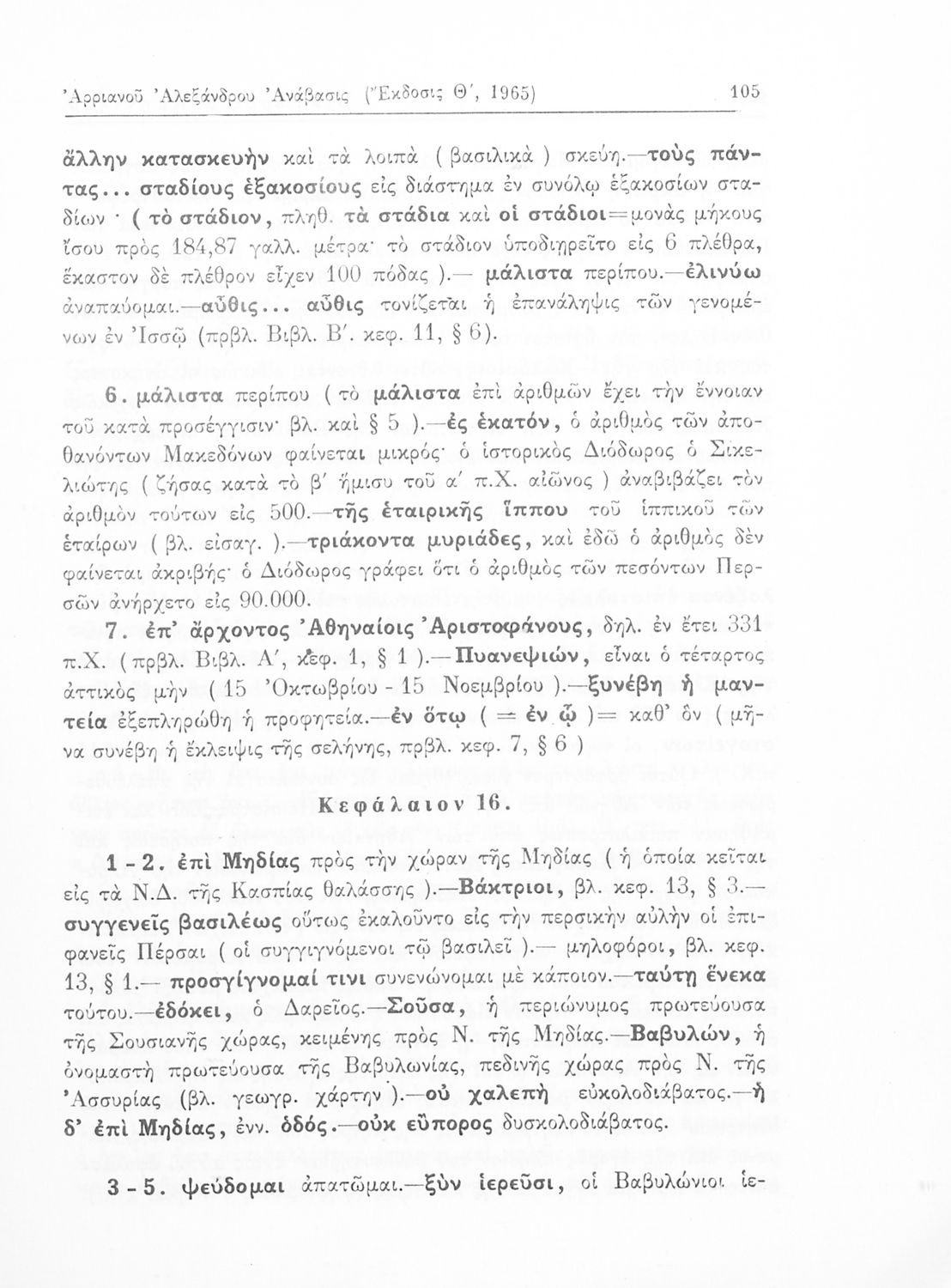 Σχολικό εγχειρίδιο Αρχαίων Ελληνικών που περιλαμβάνει αποσπάσματα από το έργο του Αρριανού Αλέξανδρου Ανάβασις και του Ηρόδοτου Ιστορίαι, ερμηνευτικές και λεξιλογικές παρατηρήσεις καθώς και τοπογραφικούς ...