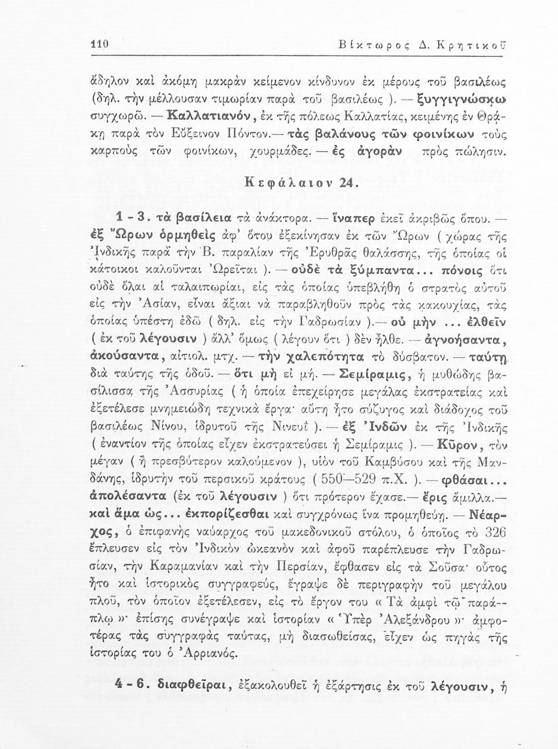 Αρριανός (Lucius Flavius Arrianus), Ηρόδοτος, Βίκτωρος Δ. Κρητικός, Κυριάκος Κοσμάς (σχόλια)
