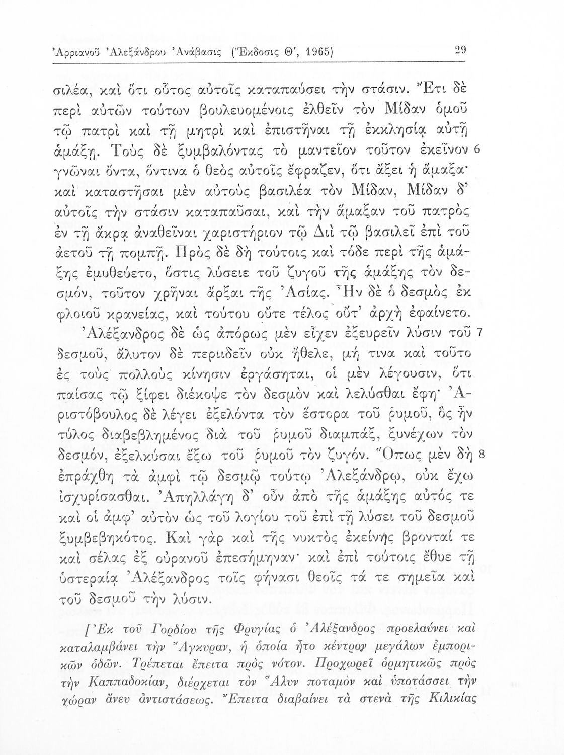 Σχολικό εγχειρίδιο Αρχαίων Ελληνικών που περιλαμβάνει αποσπάσματα από το έργο του Αρριανού Αλέξανδρου Ανάβασις και του Ηρόδοτου Ιστορίαι, ερμηνευτικές και λεξιλογικές παρατηρήσεις καθώς και τοπογραφικούς ...