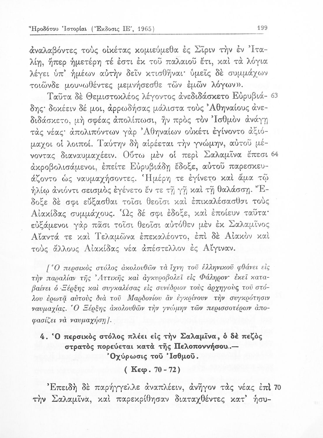 Σχολικό εγχειρίδιο Αρχαίων Ελληνικών που περιλαμβάνει αποσπάσματα από το έργο του Αρριανού Αλέξανδρου Ανάβασις και του Ηρόδοτου Ιστορίαι, ερμηνευτικές και λεξιλογικές παρατηρήσεις καθώς και τοπογραφικούς πίνακες και χάρτες..