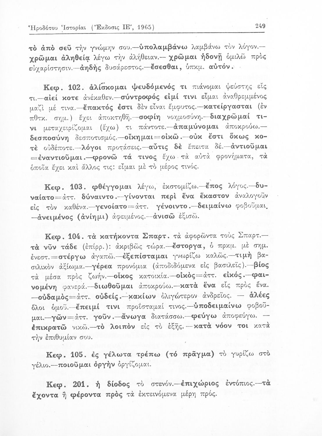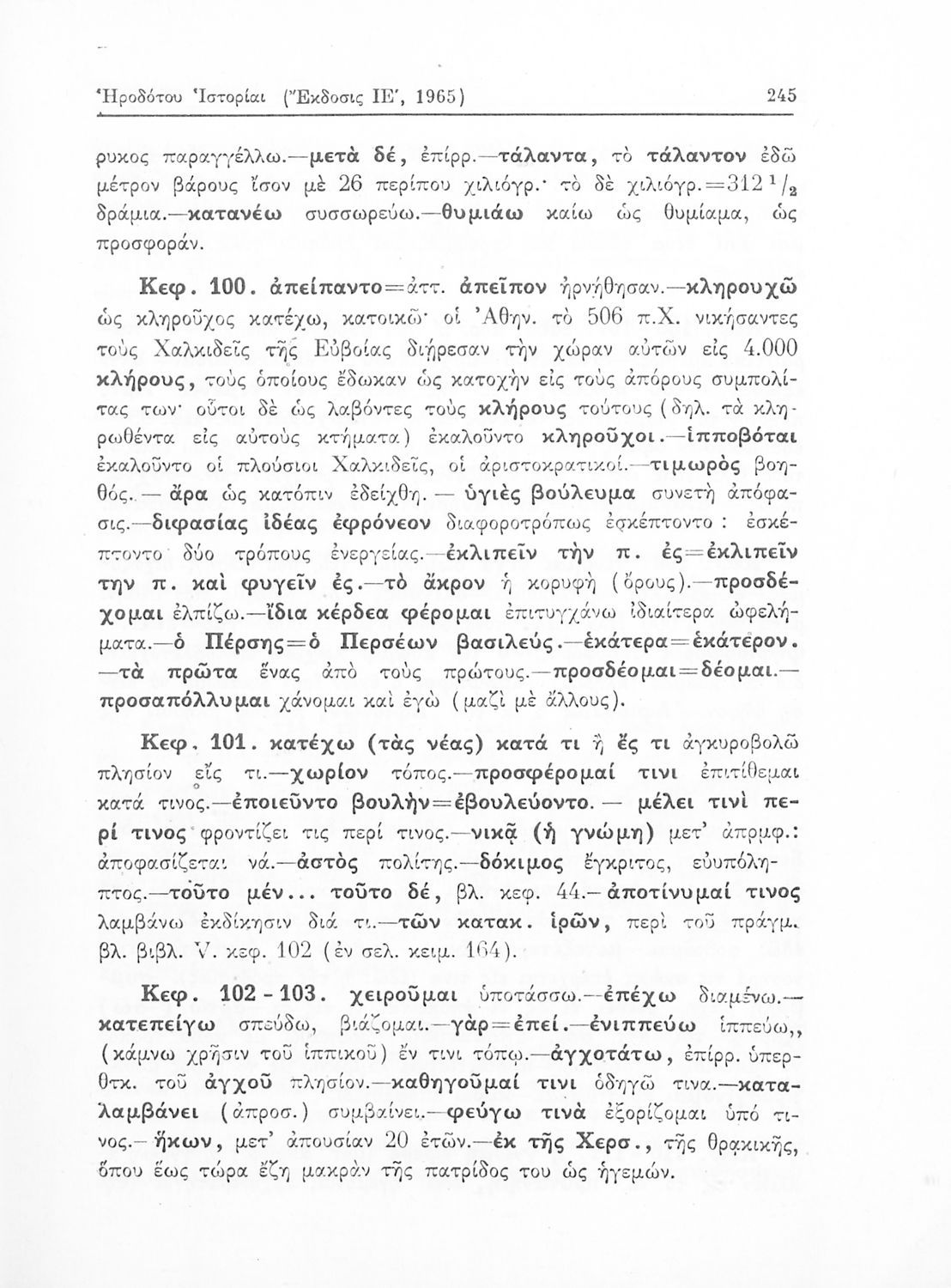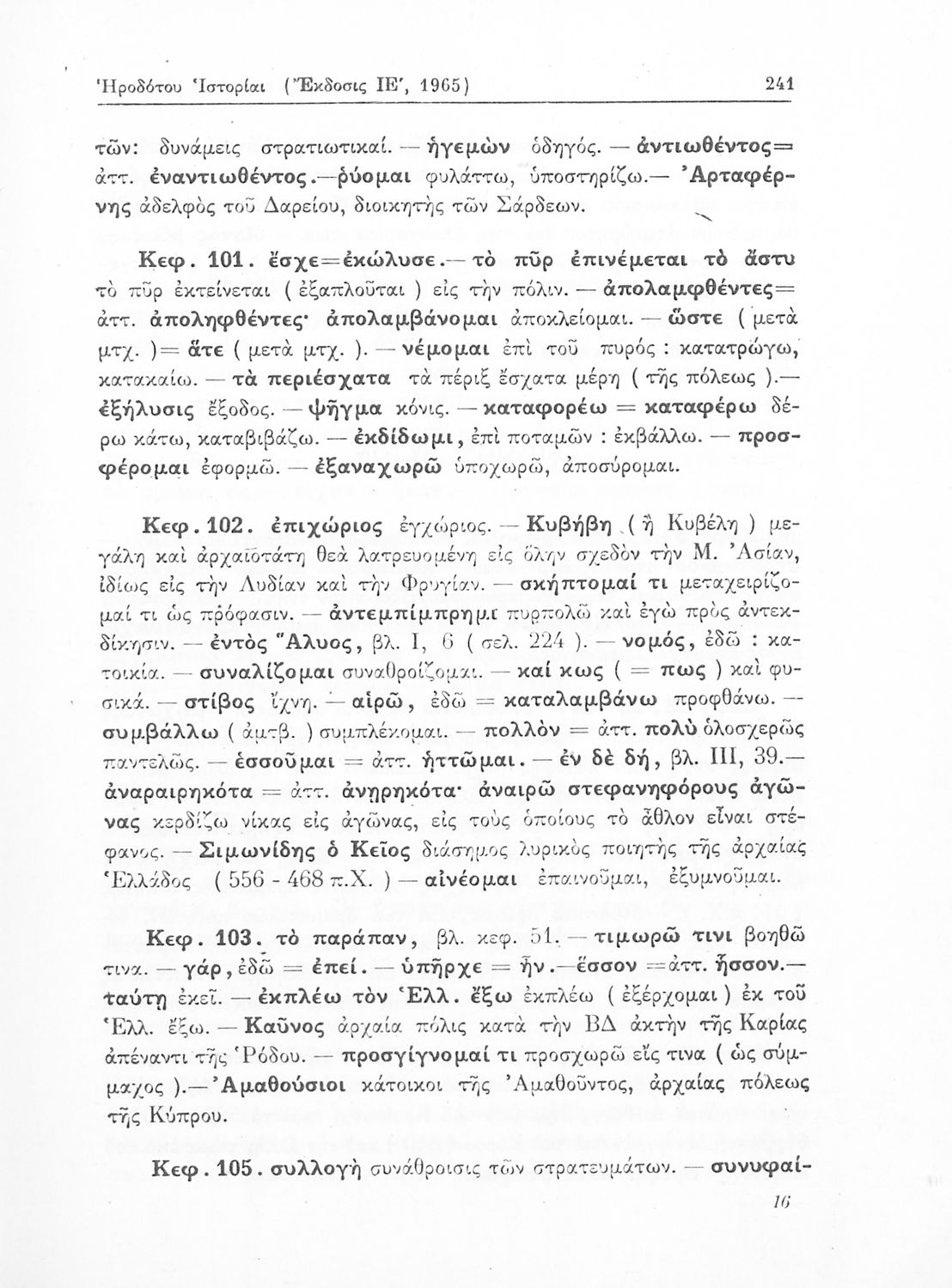 Σχολικό εγχειρίδιο Αρχαίων Ελληνικών που περιλαμβάνει αποσπάσματα από το έργο του Αρριανού Αλέξανδρου Ανάβασις και του Ηρόδοτου Ιστορίαι, ερμηνευτικές και λεξιλογικές παρατηρήσεις καθώς και τοπογραφικούς ...