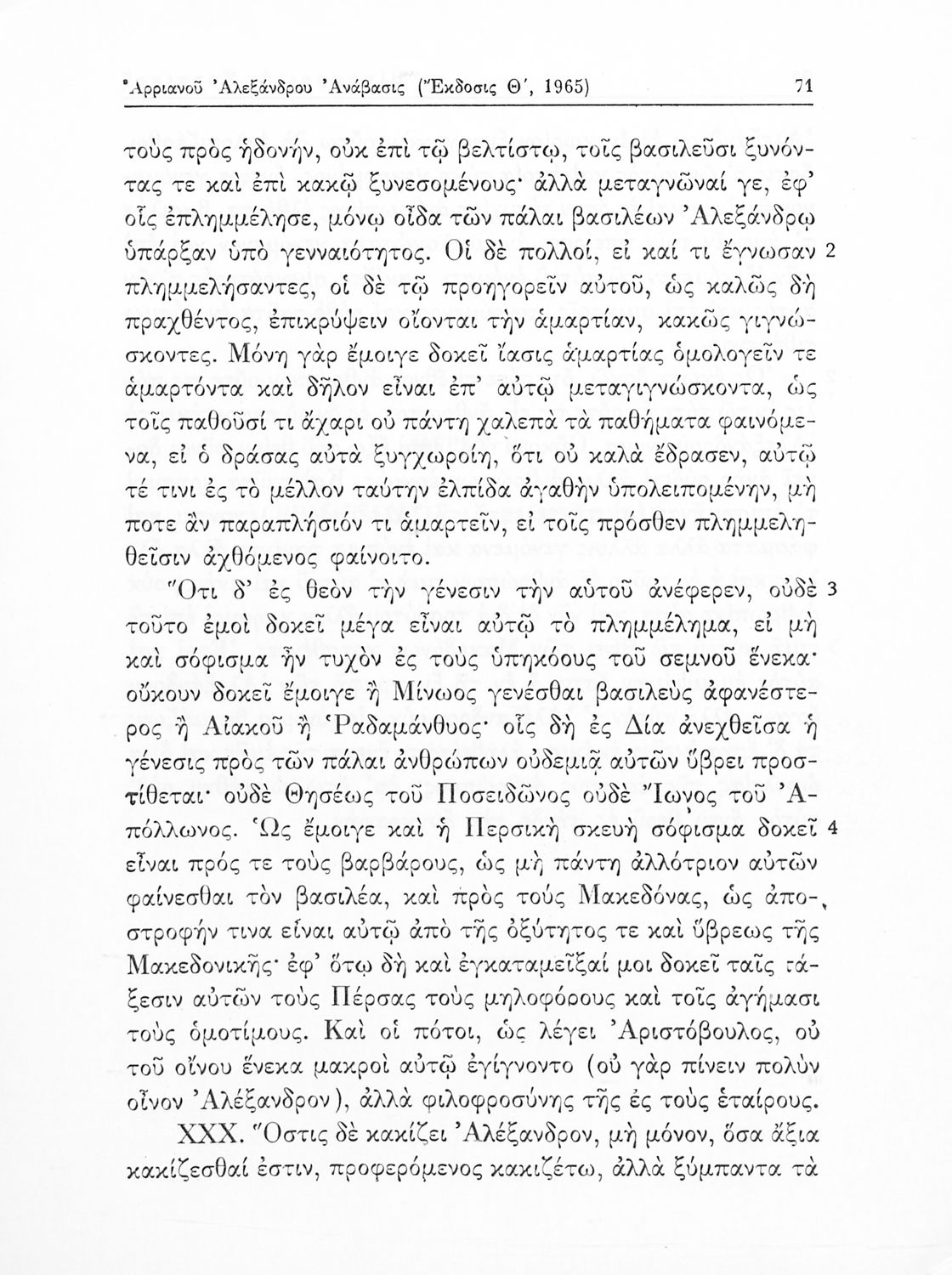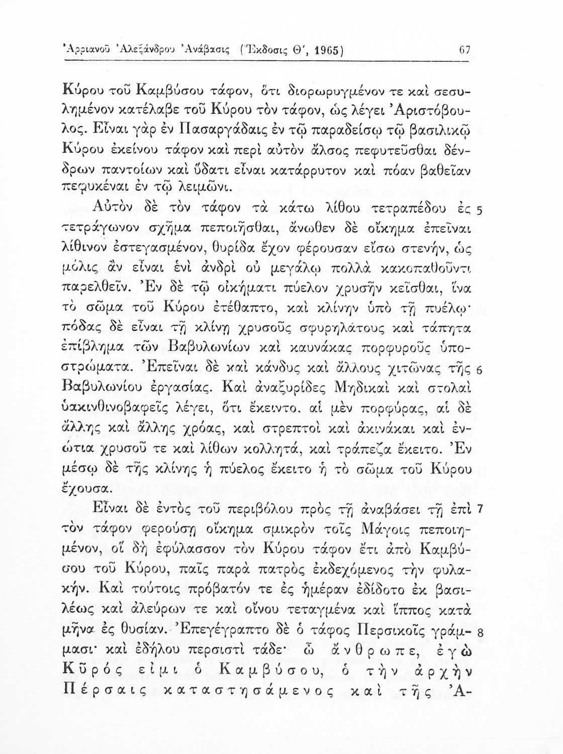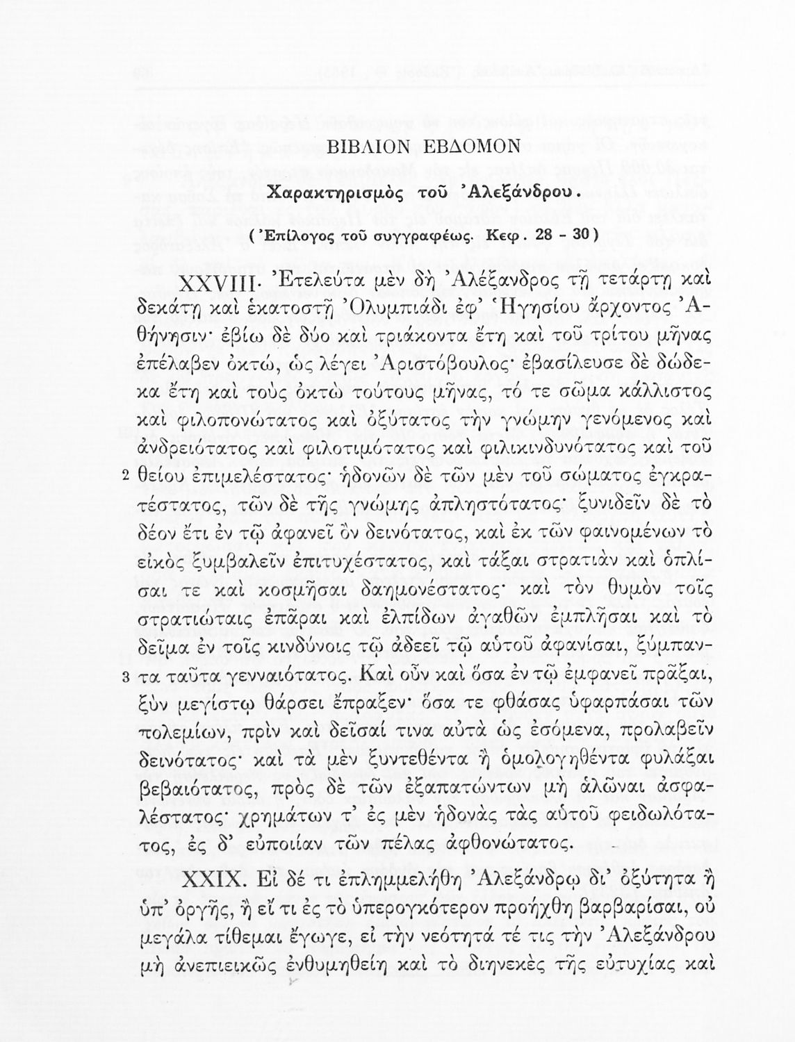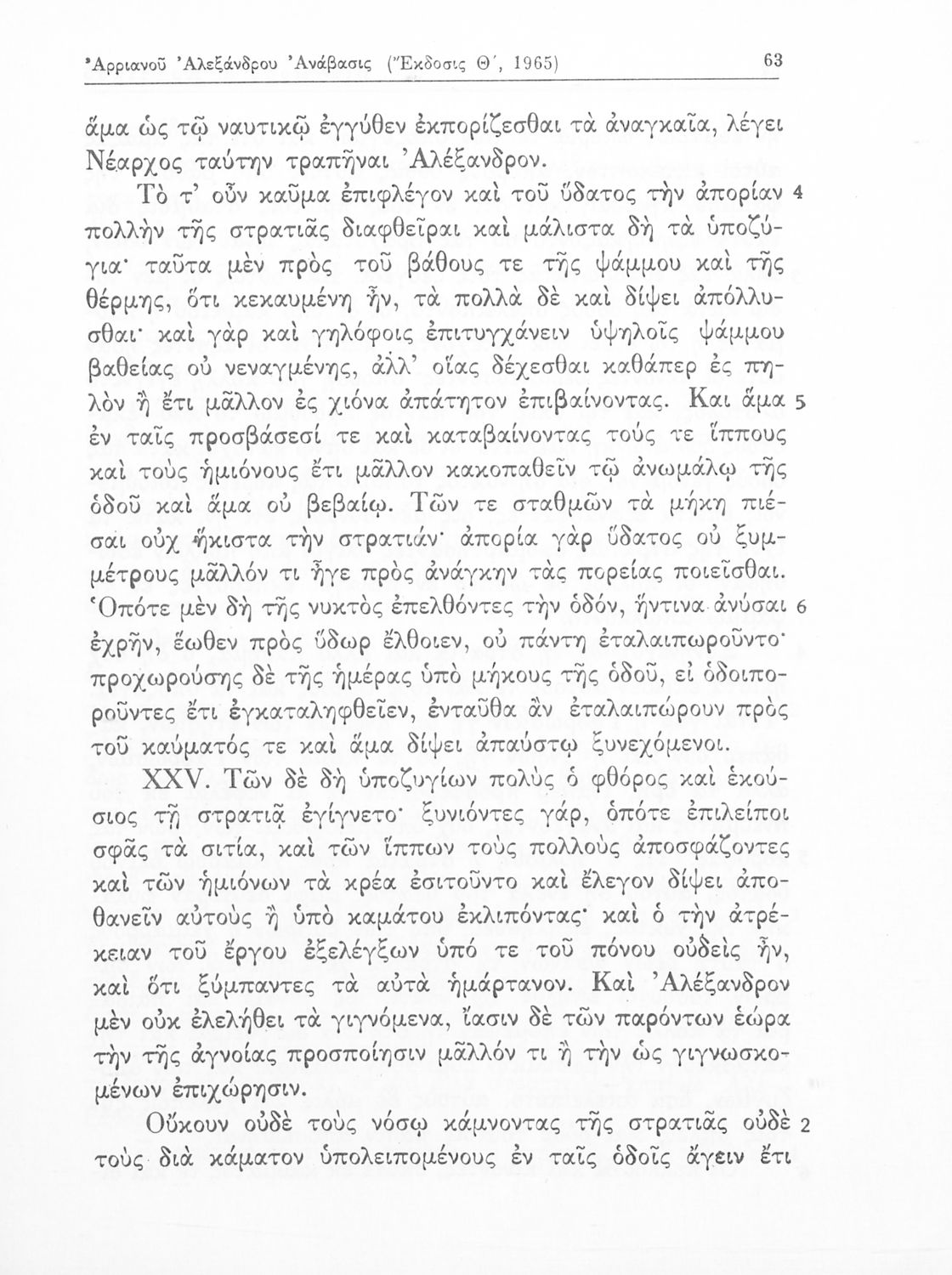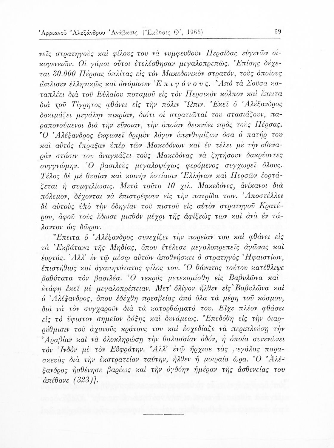 Σχολικό εγχειρίδιο Αρχαίων Ελληνικών που περιλαμβάνει αποσπάσματα από το έργο του Αρριανού Αλέξανδρου Ανάβασις και του Ηρόδοτου Ιστορίαι, ερμηνευτικές και λεξιλογικές παρατηρήσεις καθώς και τοπογραφικούς πίνακες και χάρτες..