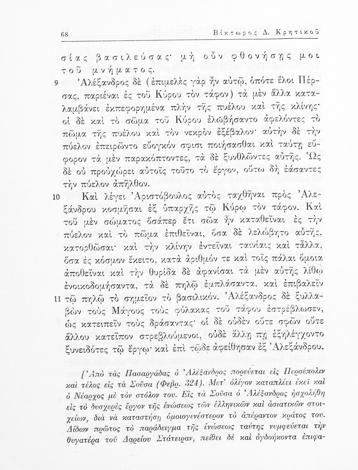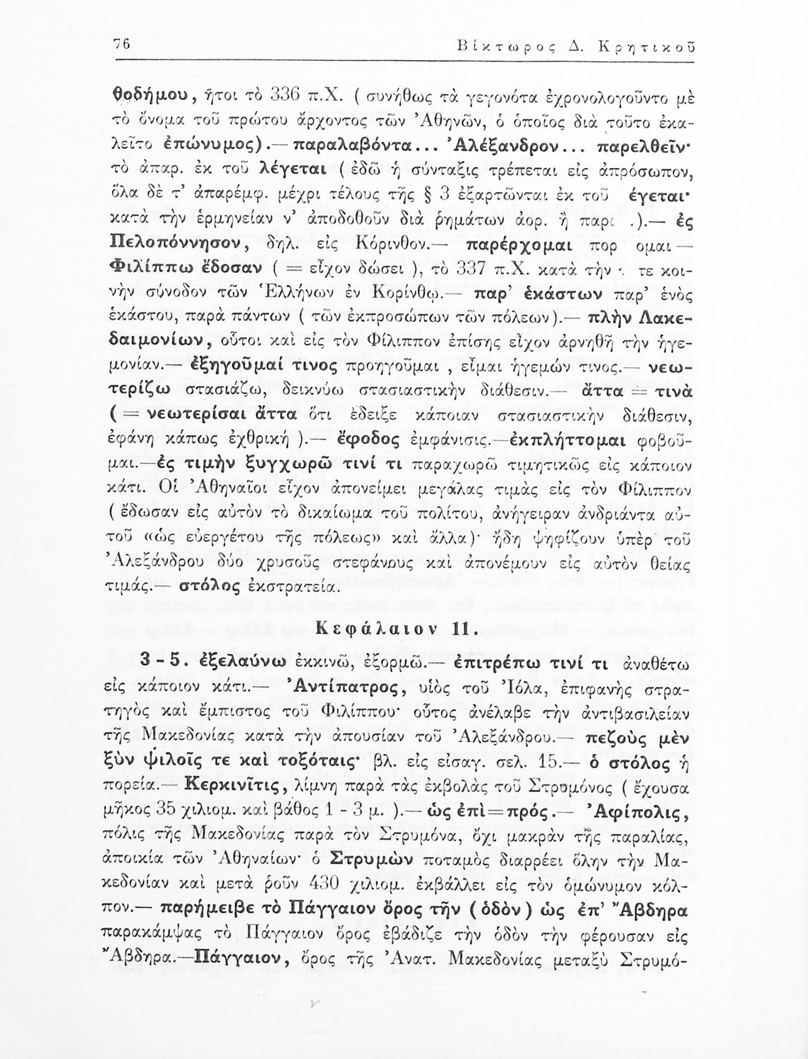 Αρριανός (Lucius Flavius Arrianus), Ηρόδοτος, Βίκτωρος Δ. Κρητικός, Κυριάκος Κοσμάς (σχόλια)