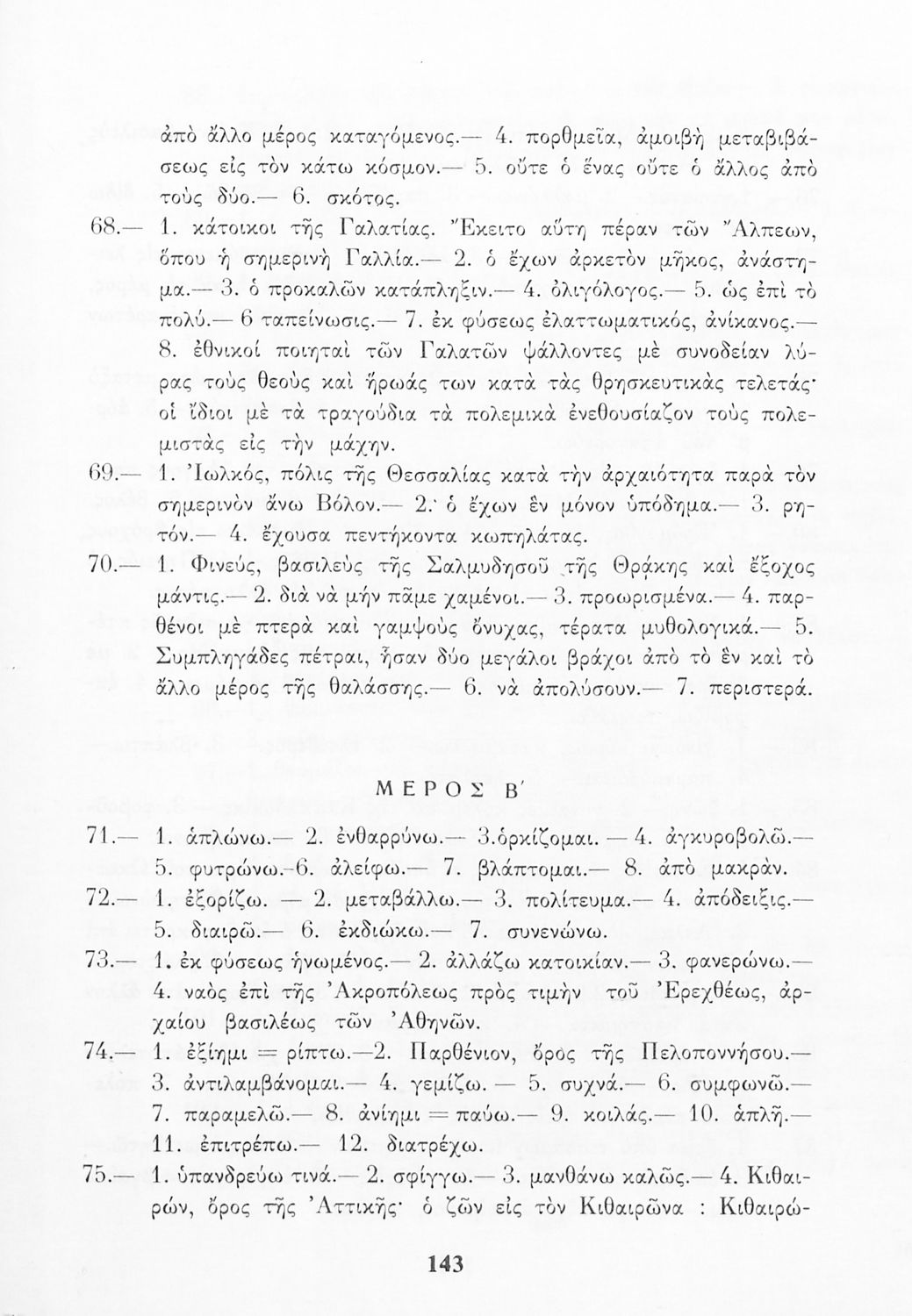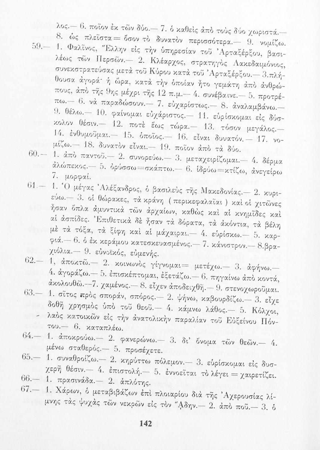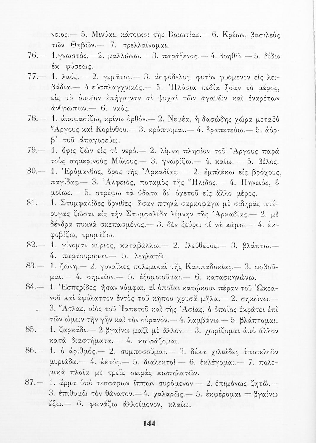 Σχολικό Εγχειρίδιο Αρχαίων Ελληνικών Α' και Β΄ Γυμνασίου που περιλαμβάνει κείμενα προσαρμοσμένα στη διδασκαλία των γραμματικών και συντακτικών φαινομένων, και ερμηνευτικές και λεξιλογικές σημειώσεις.