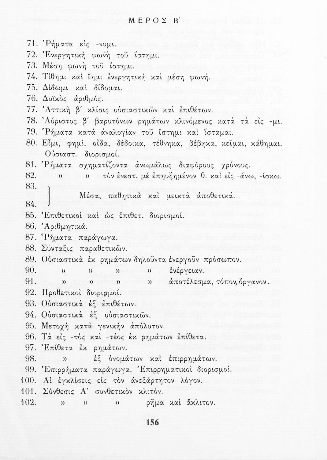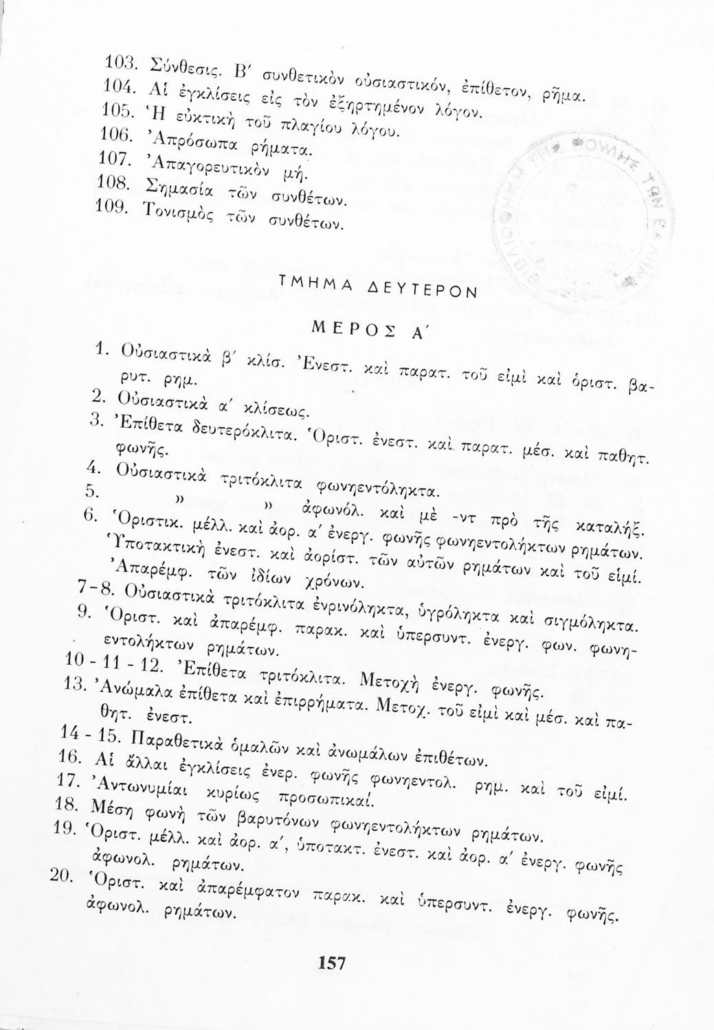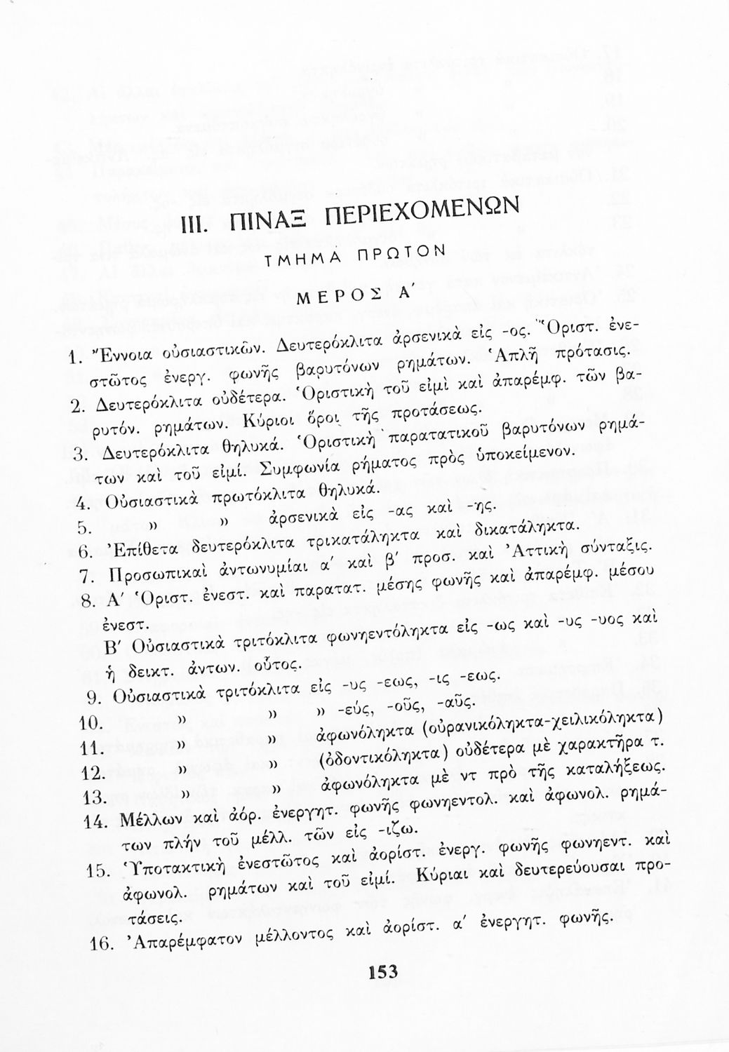 Σχολικό εγχειρίδιο Αρχαίων Ελληνικών Α', Β', Γ' και Δ' Γυμνασίου που περιέχει τους κανόνες γραμματικής και είναι χωρισμένο σε φθογγολογικό, τυπολογικό και ετυμολογικό μέρος. Περιέχει και κατάλογο ανωμάλων ...