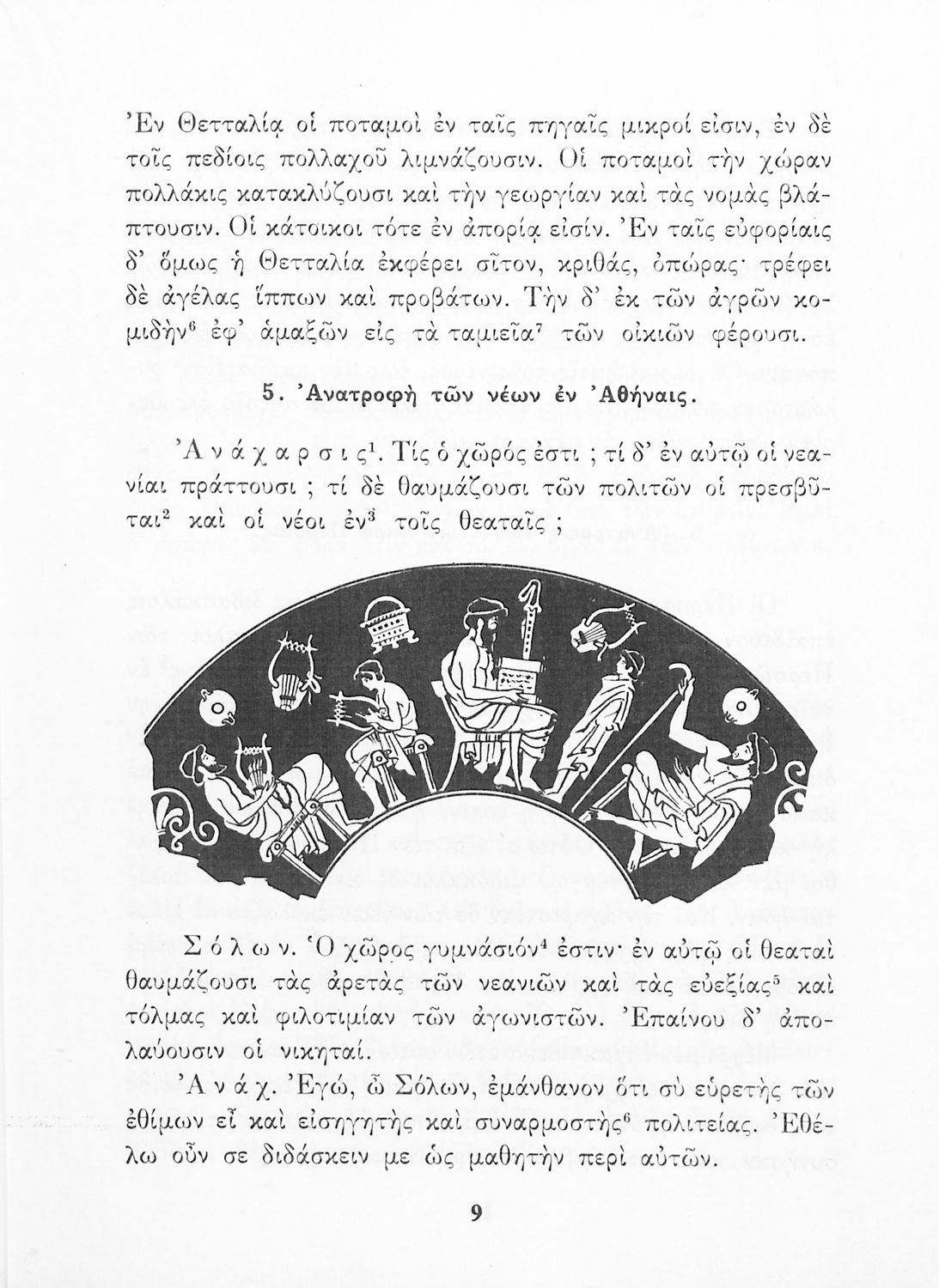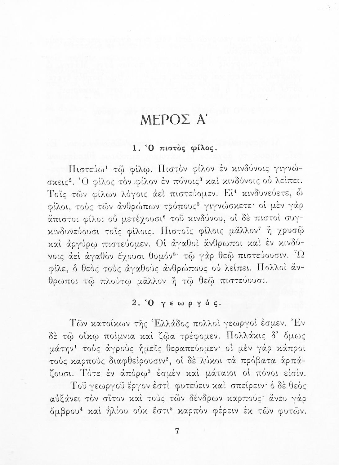 Σχολικό Εγχειρίδιο Αρχαίων Ελληνικών Α' και Β΄ Γυμνασίου που περιλαμβάνει κείμενα προσαρμοσμένα στη διδασκαλία των γραμματικών και συντακτικών φαινομένων, και ερμηνευτικές και λεξιλογικές σημειώσεις.
