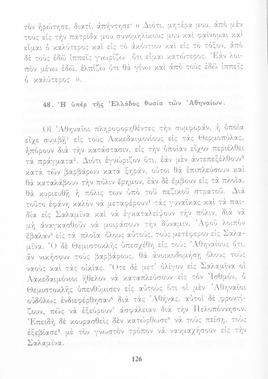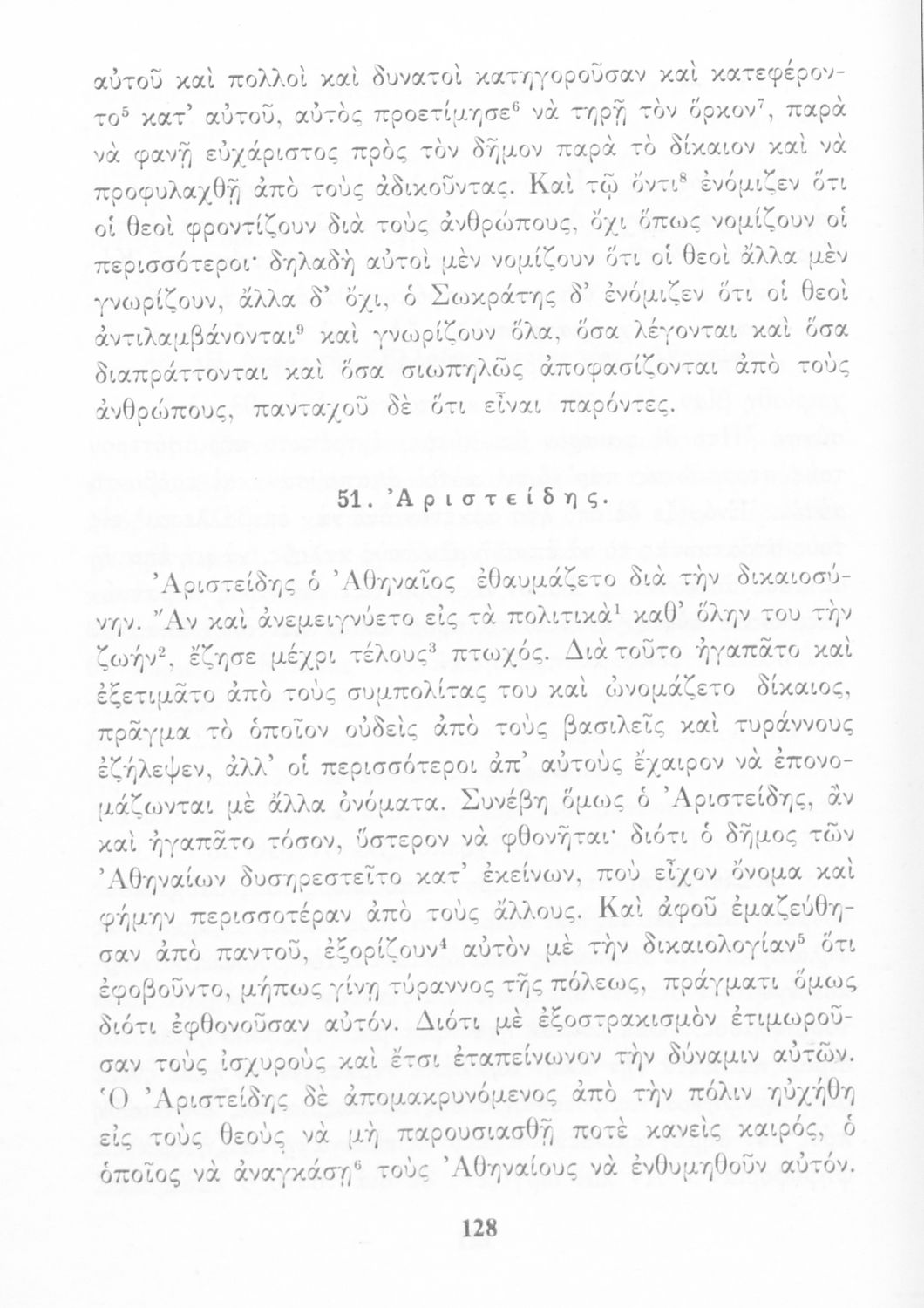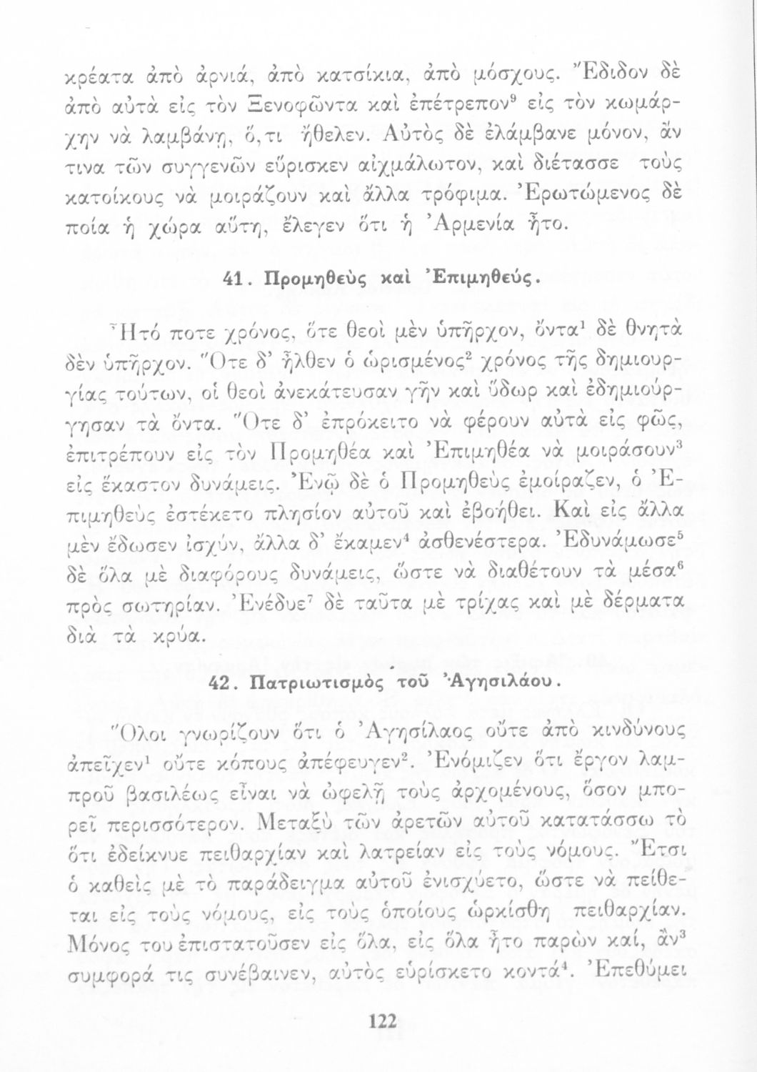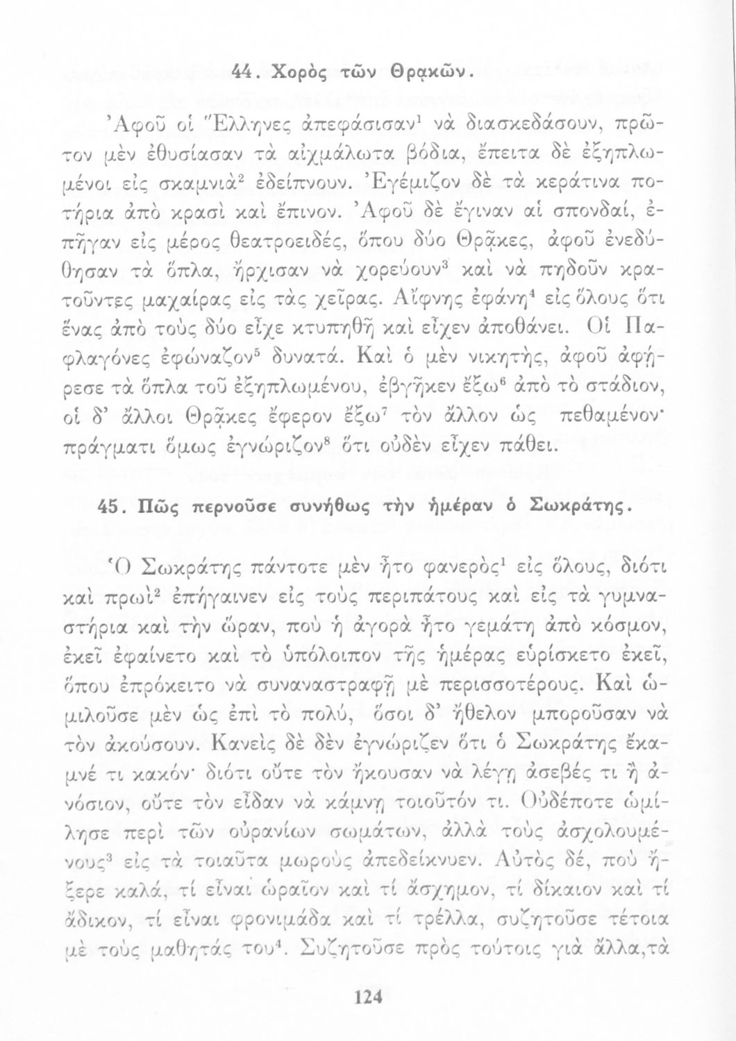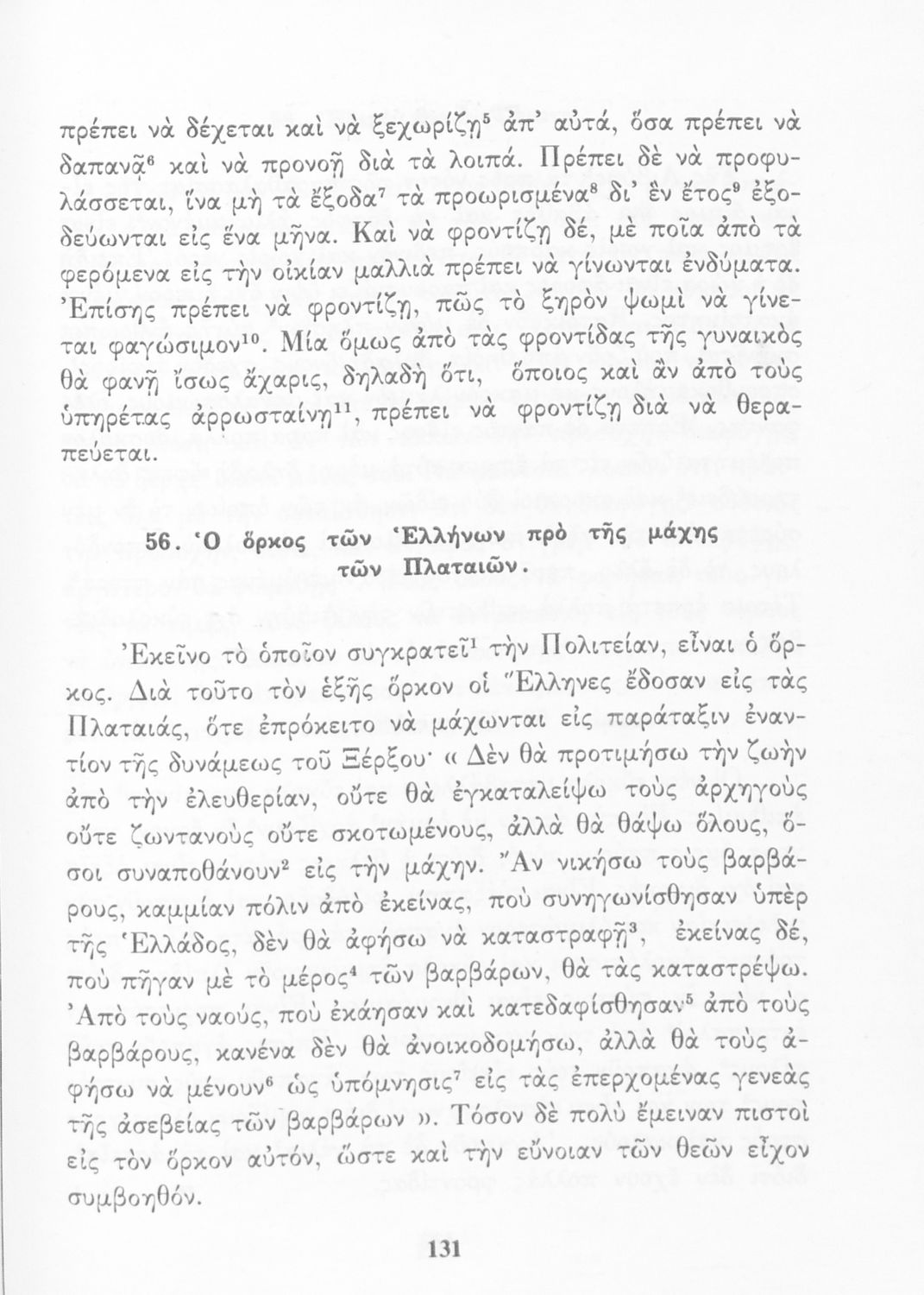 Σχολικό Εγχειρίδιο Αρχαίων Ελληνικών Α' και Β΄ Γυμνασίου που περιλαμβάνει κείμενα προσαρμοσμένα στη διδασκαλία των γραμματικών και συντακτικών φαινομένων, και ερμηνευτικές και λεξιλογικές σημειώσεις. Φέρει το σύμβολο της δικτατορίας.