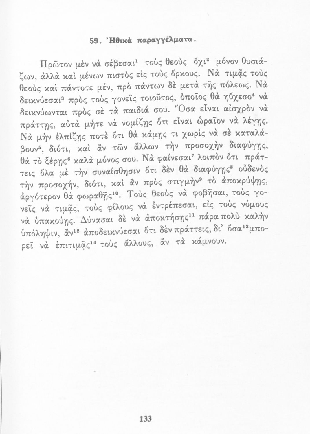 Βαθμίδα εκπαίδευσης: Δευτεροβάθμια Τάξη: Α' Γυμνασίου / Β' Γυμνασίου Μάθημα: Αρχαία Ελληνικά Γλώσσα: Καθαρεύουσα Παρουσίαση περιεχομένου: Σχολικό Εγχειρίδιο Αρχαίων Ελληνικών Α' και Β΄ Γυμνασίου που περιλαμβάνει κείμενα προσαρμοσμένα στη διδασκαλία των γραμματικών και συντακτικών φαινομένων, και ερμηνευτικές και λεξιλογικές σημειώσεις. Φέρει το σύμβολο της δικτατορίας. |