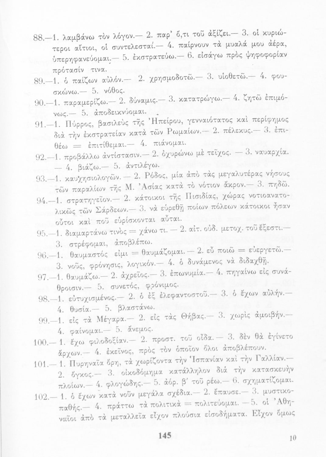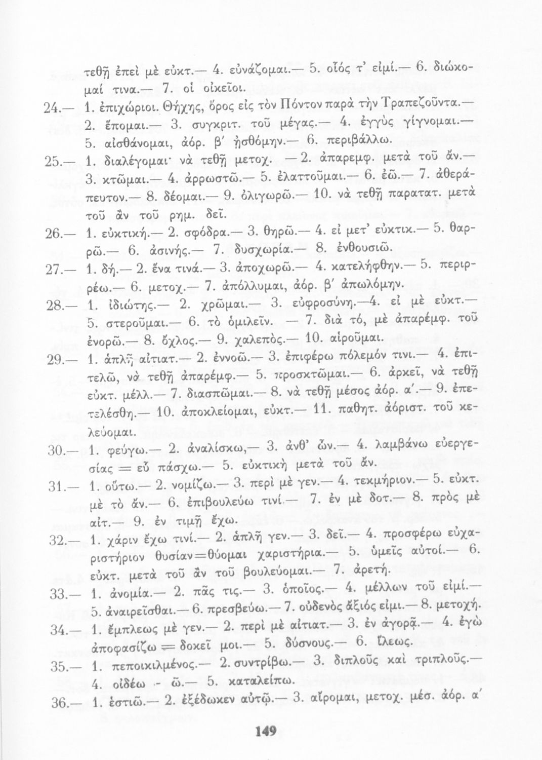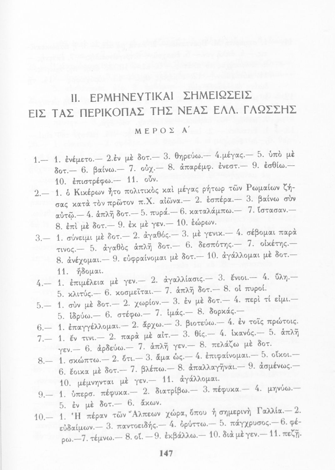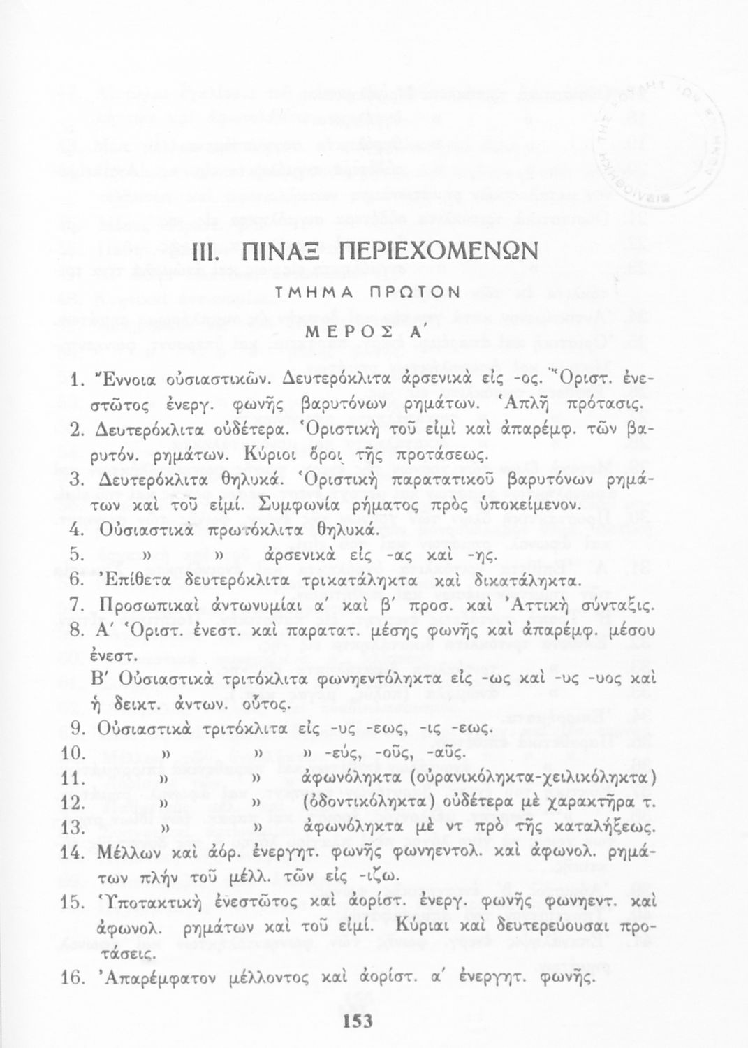 Γραμματική Αρχαίων Ελληνικών της Α΄, Β΄, Γ΄ και Δ΄ Γυμνασίου το οποίο εστιάζει στα μέρη του λόγου και στην σύνταξή τους και είναι χωρισμένο σε φθογγολογικό και τυπολογικό μέρος.