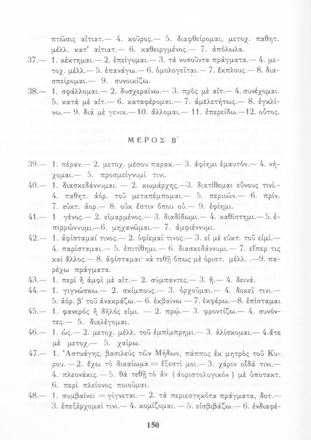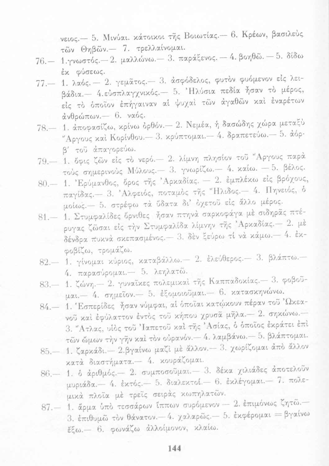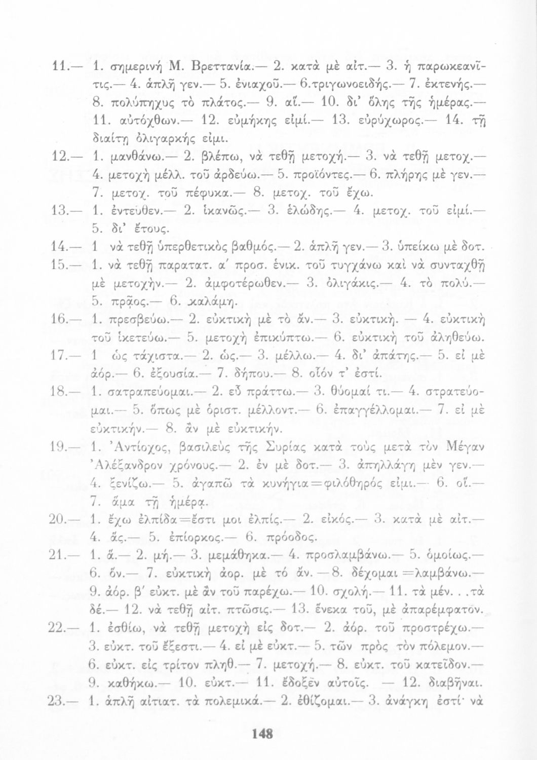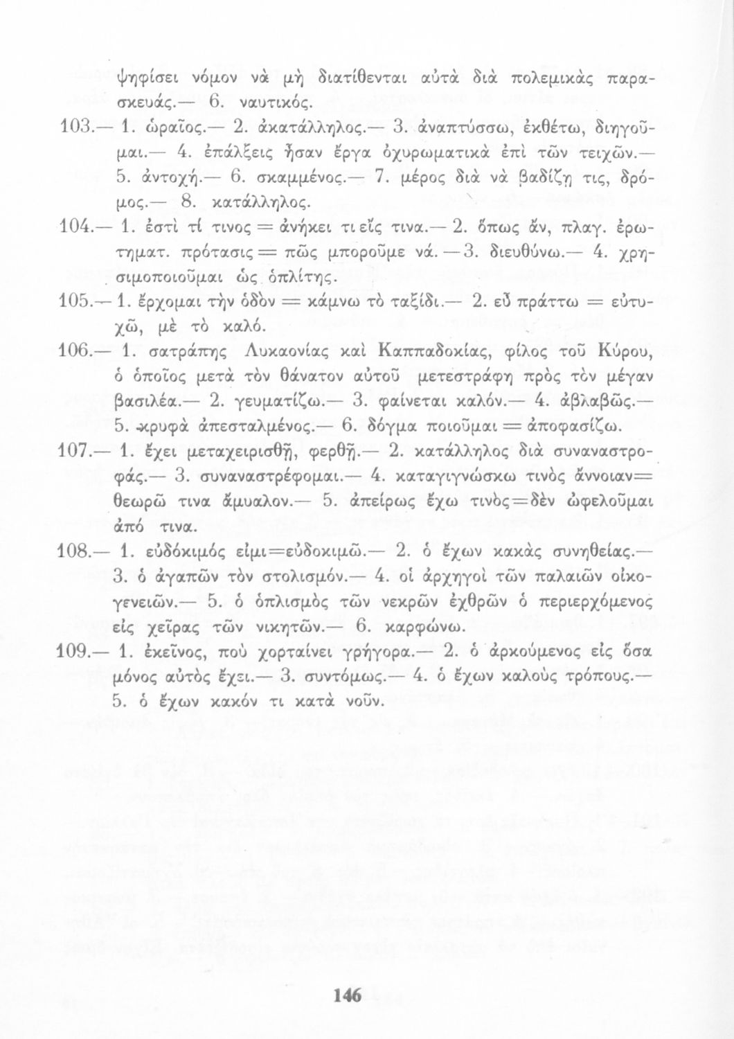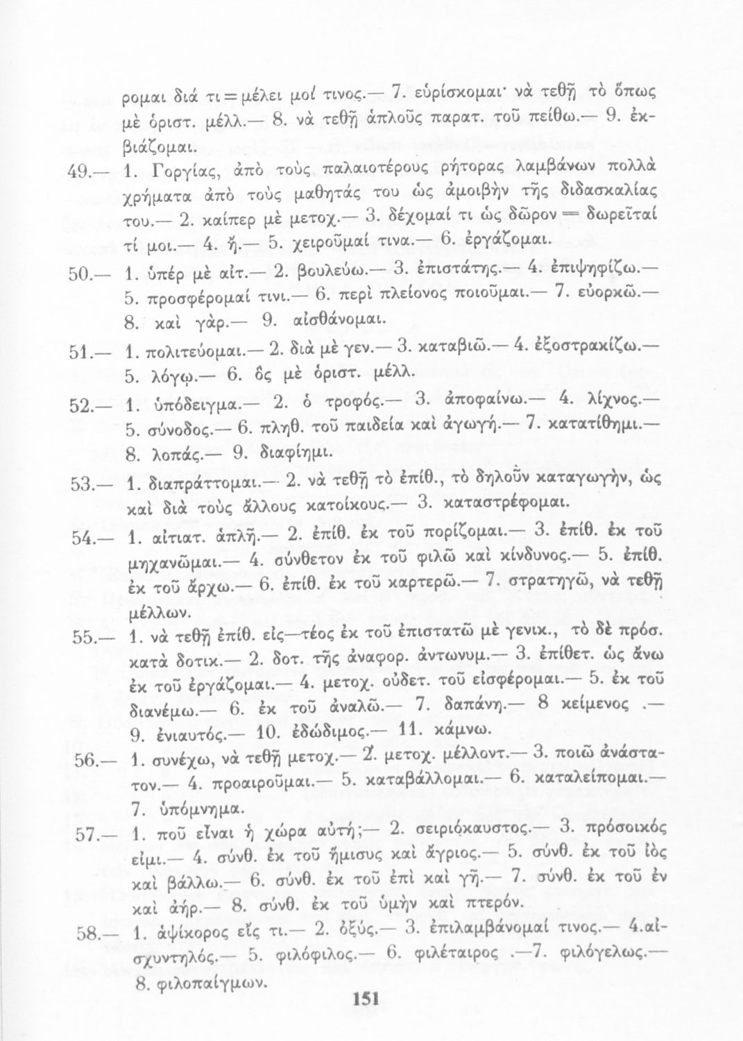 Γραμματική Αρχαίων Ελληνικών της Α΄, Β΄, Γ΄ και Δ΄ Γυμνασίου το οποίο εστιάζει στα μέρη του λόγου και στην σύνταξή τους και είναι χωρισμένο σε φθογγολογικό και τυπολογικό μέρος.