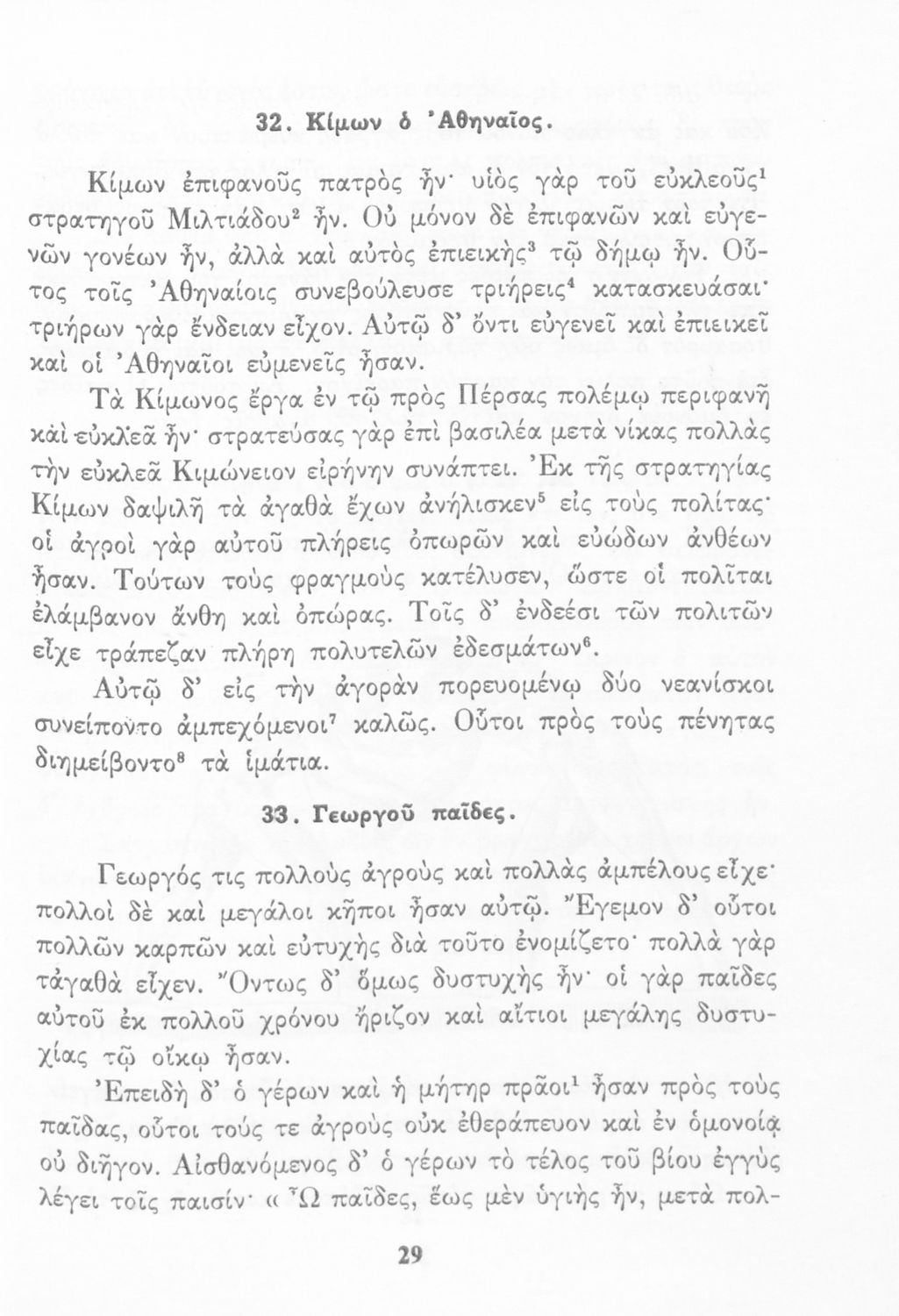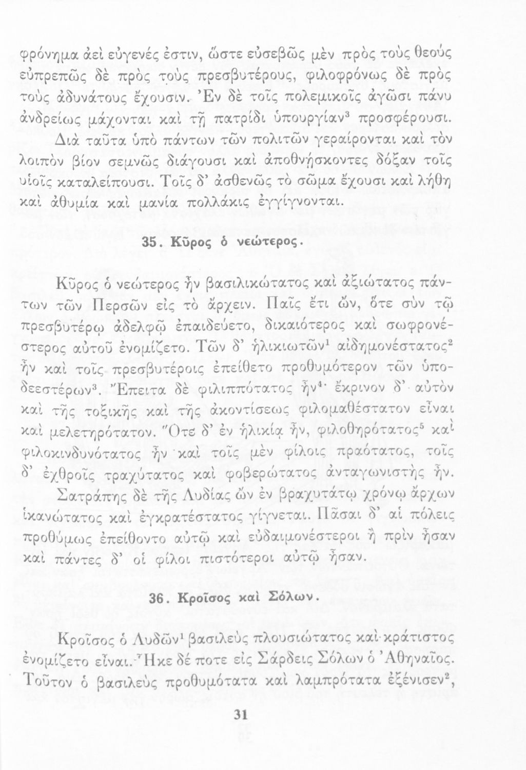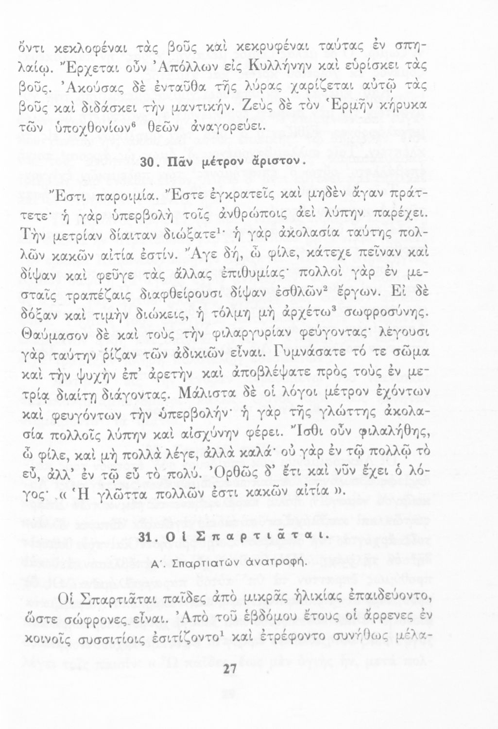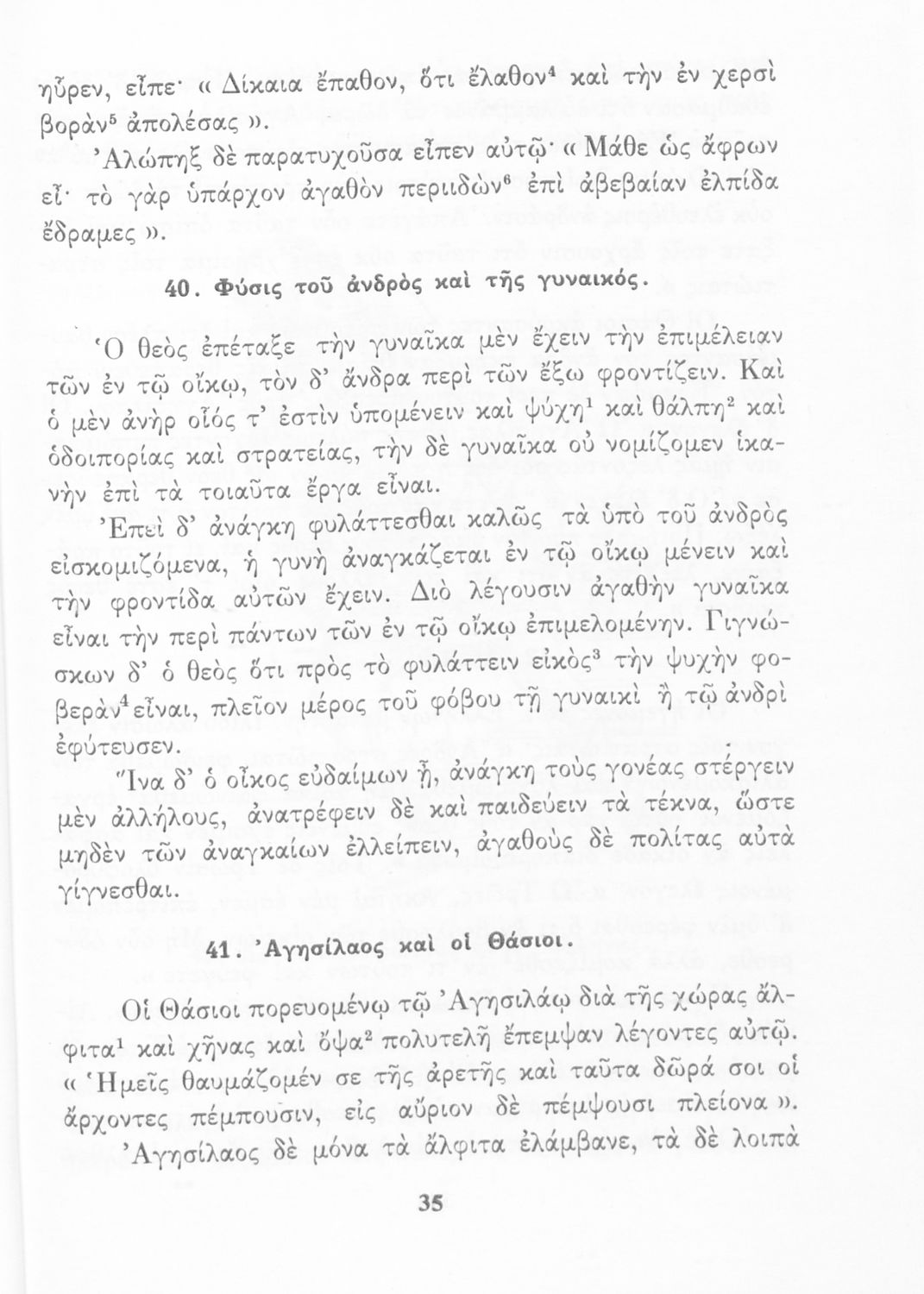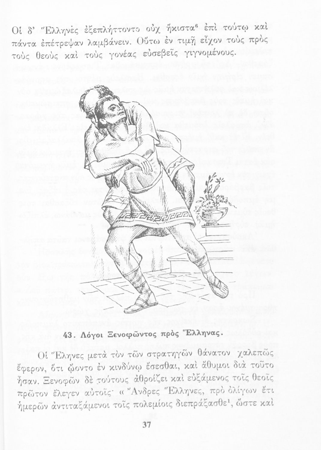 Σχολικό Εγχειρίδιο Αρχαίων Ελληνικών Α' και Β΄ Γυμνασίου που περιλαμβάνει κείμενα προσαρμοσμένα στη διδασκαλία των γραμματικών και συντακτικών φαινομένων, και ερμηνευτικές και λεξιλογικές σημειώσεις.